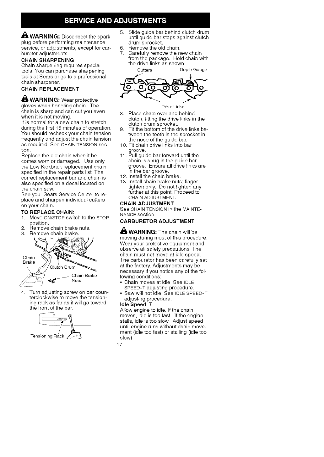 WARRANTY SERVICE IS AVAILABLE BY RETURNING THIS CHAIN SAW TO THE