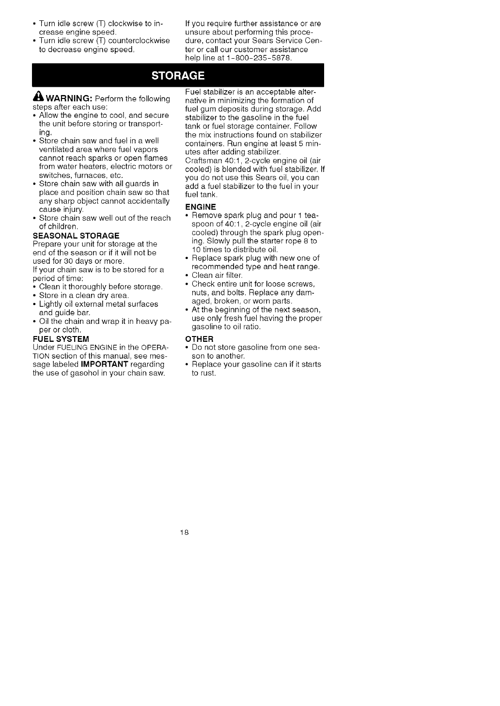 FULL ONE YEAR WARRANTY ON CRAFTSMAN RGAS CHAIN SAW