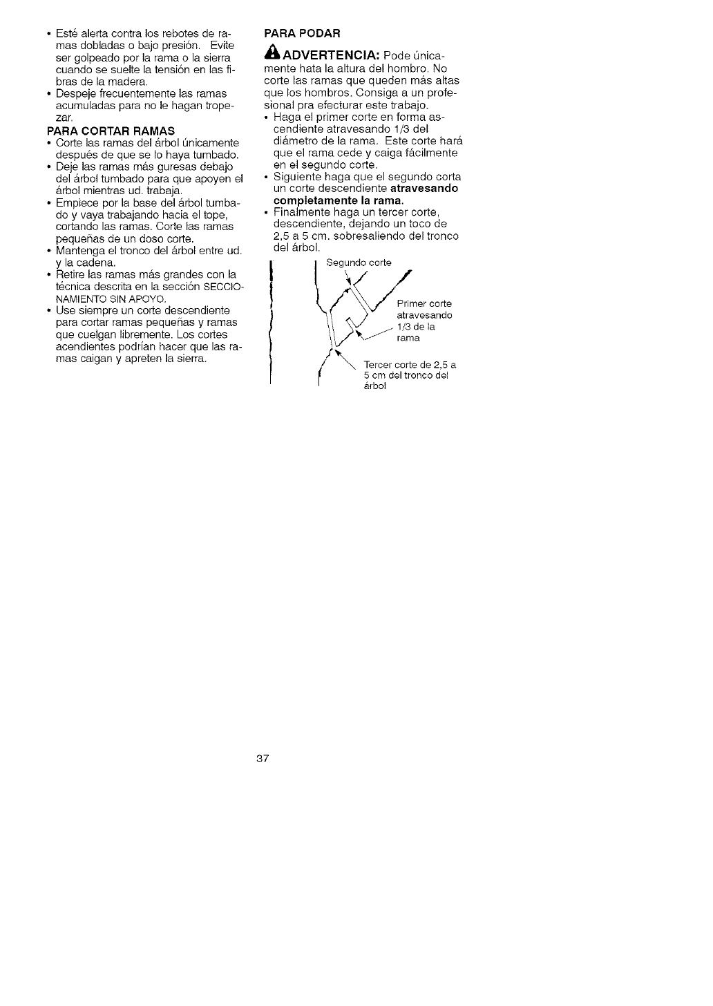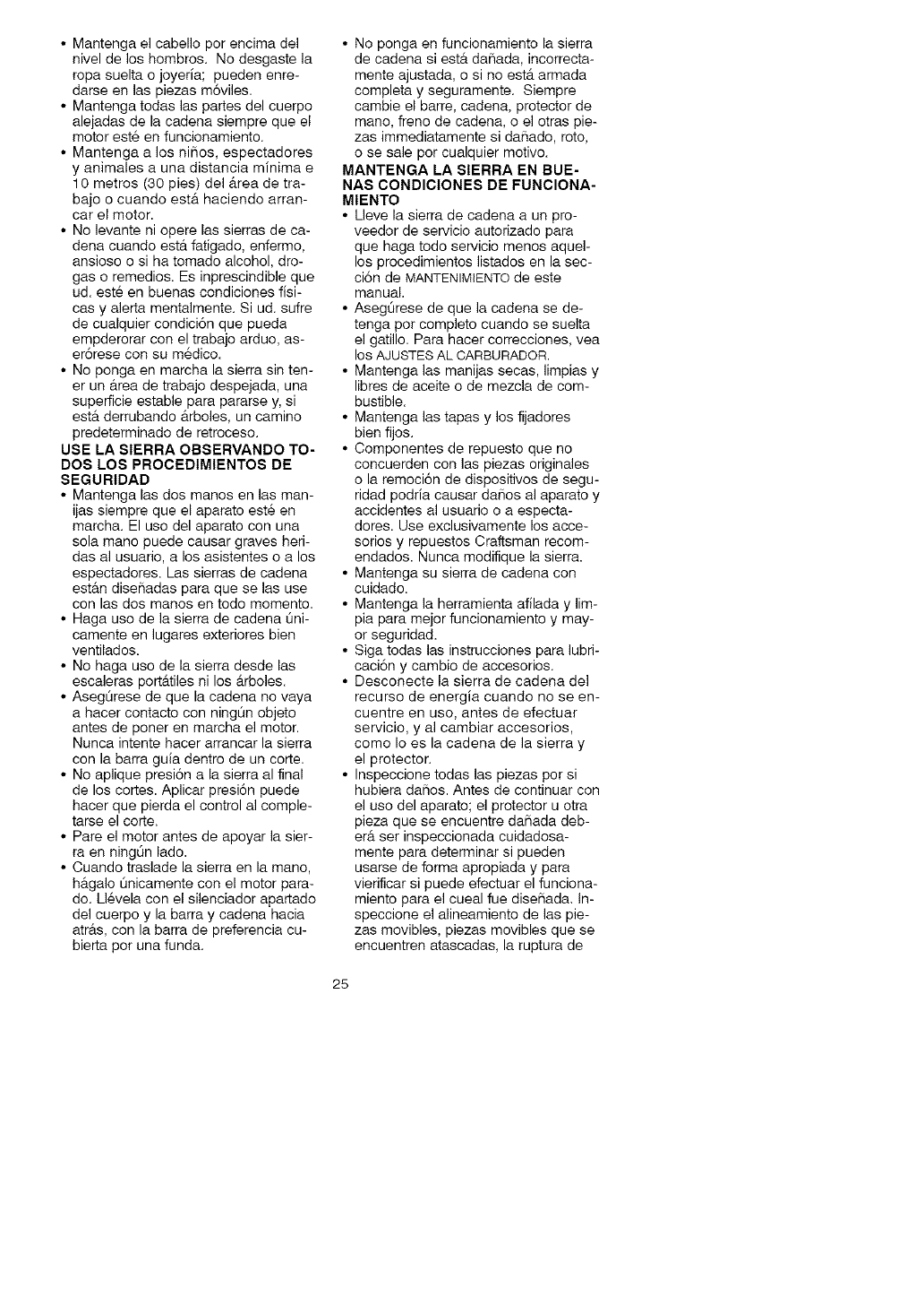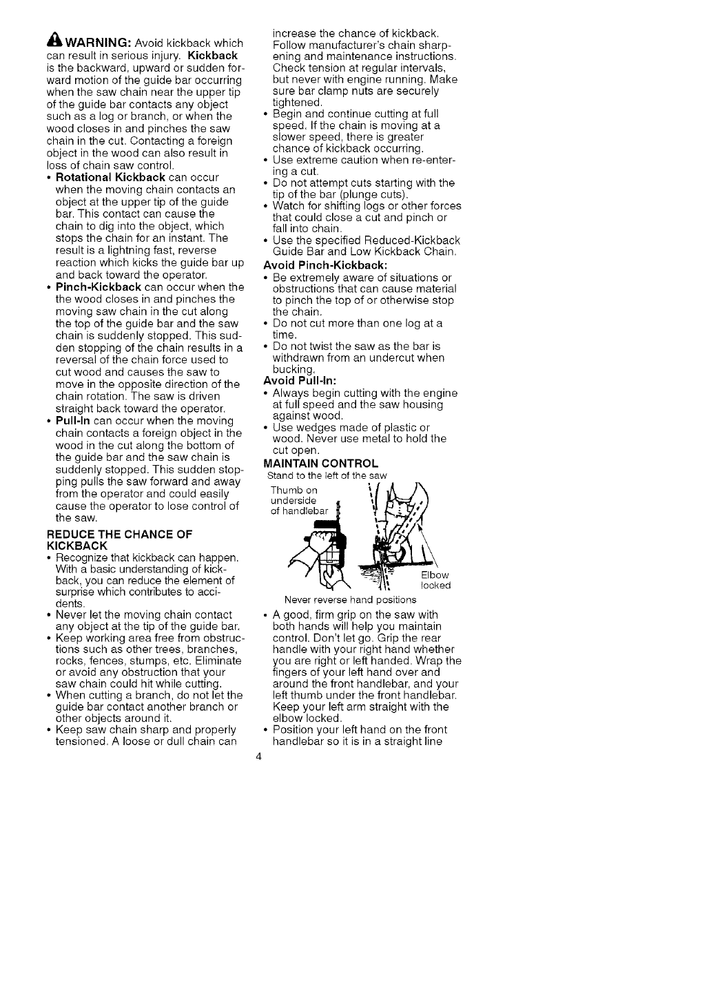 • Do not handle or operate a chain saw