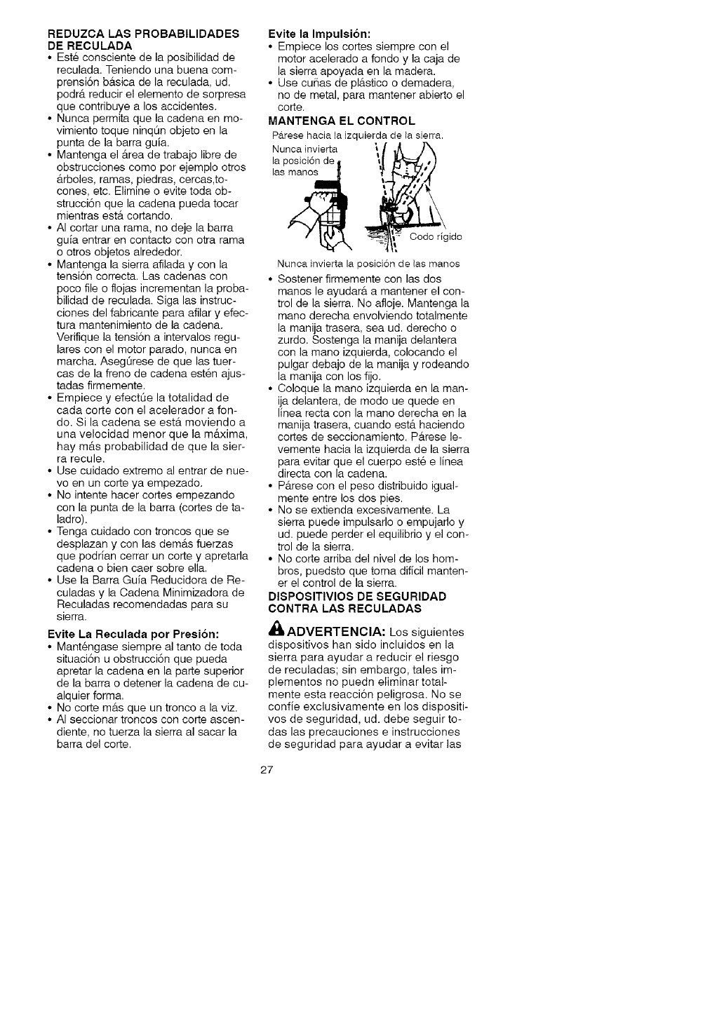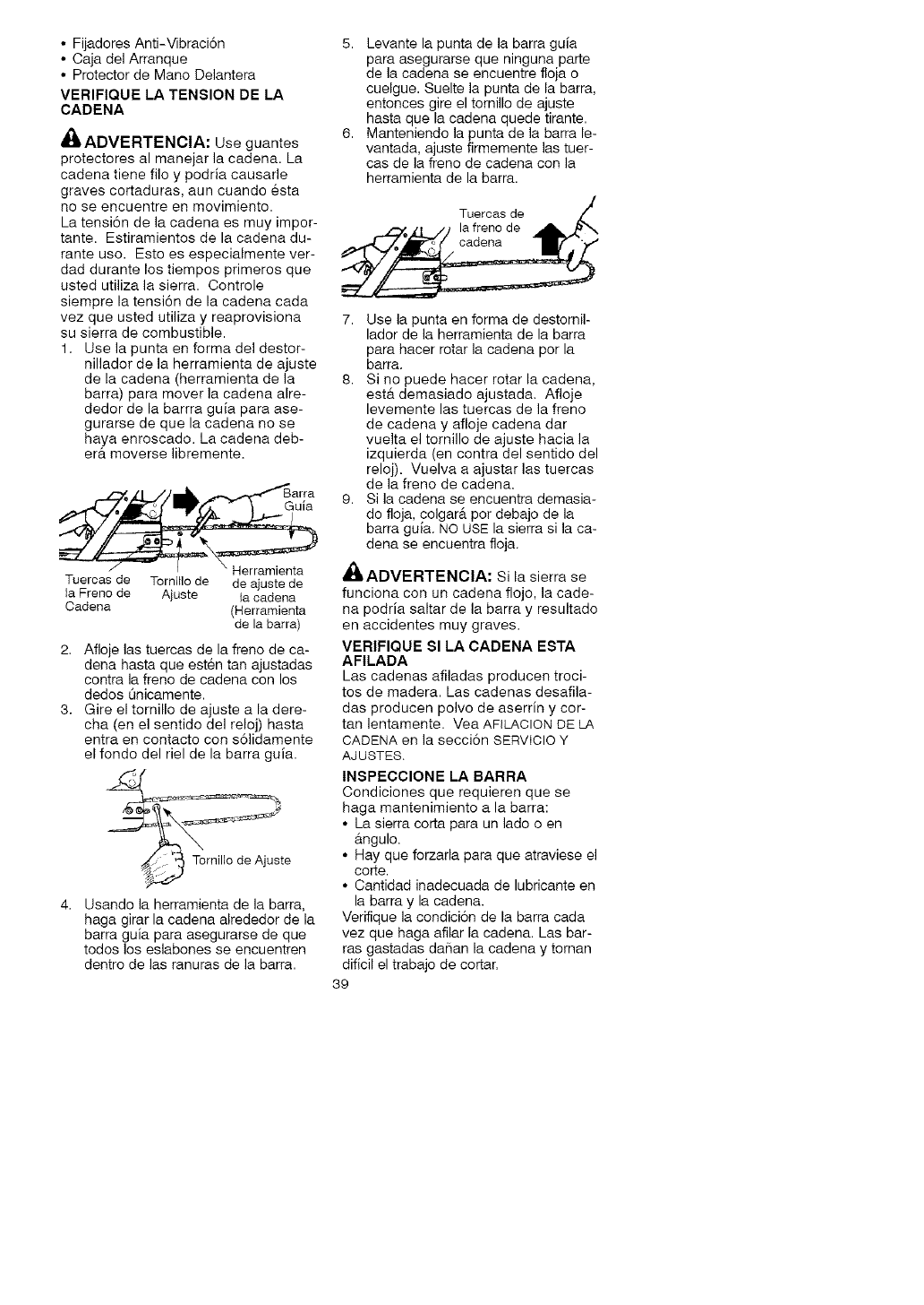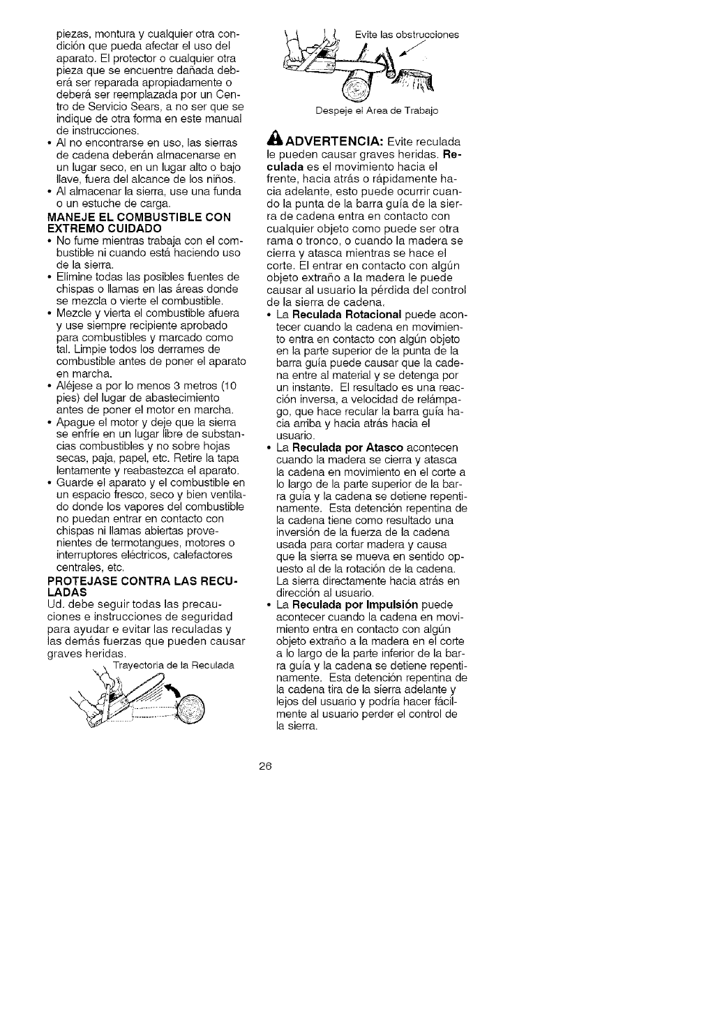 • Do not handle or operate a chain saw