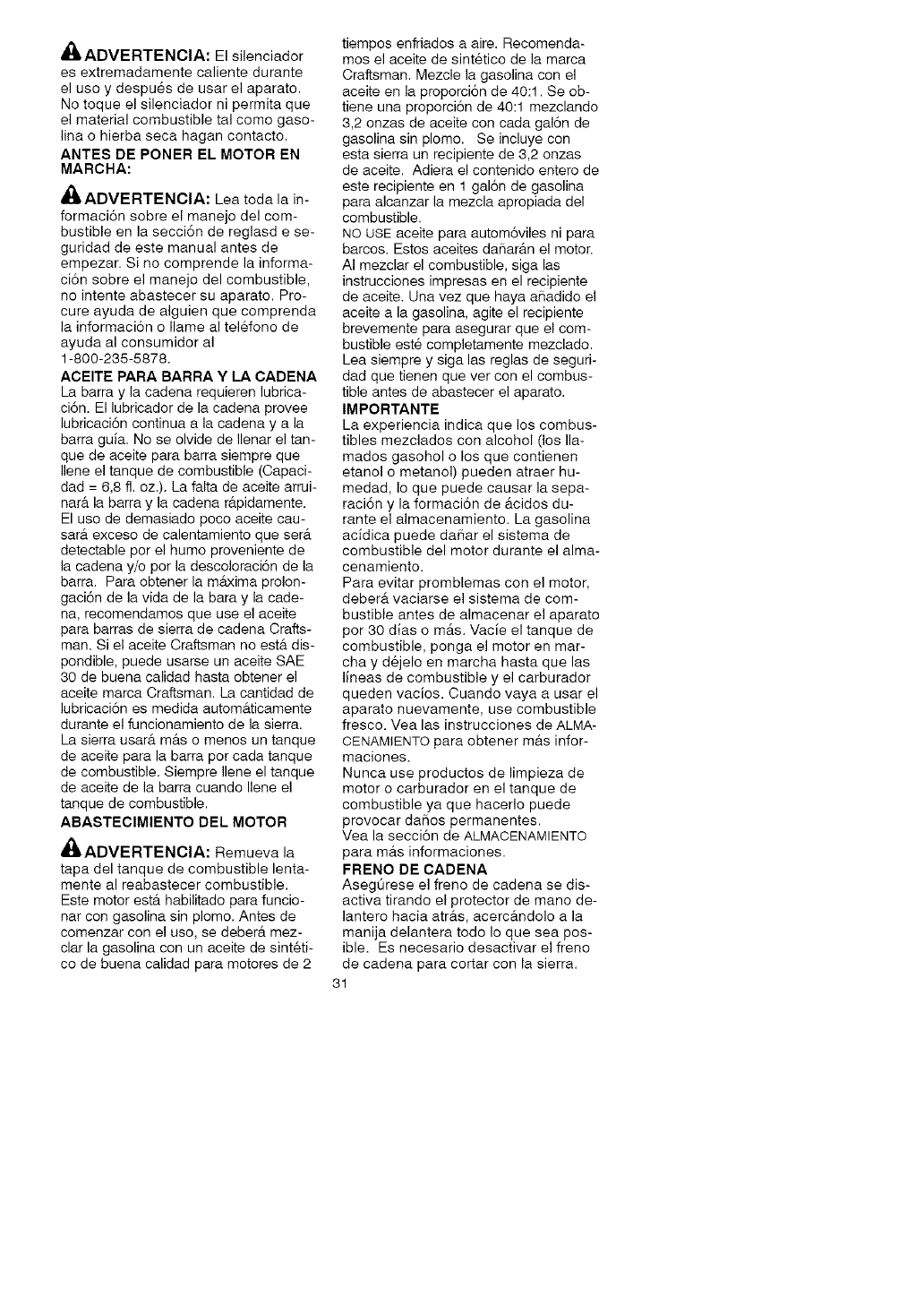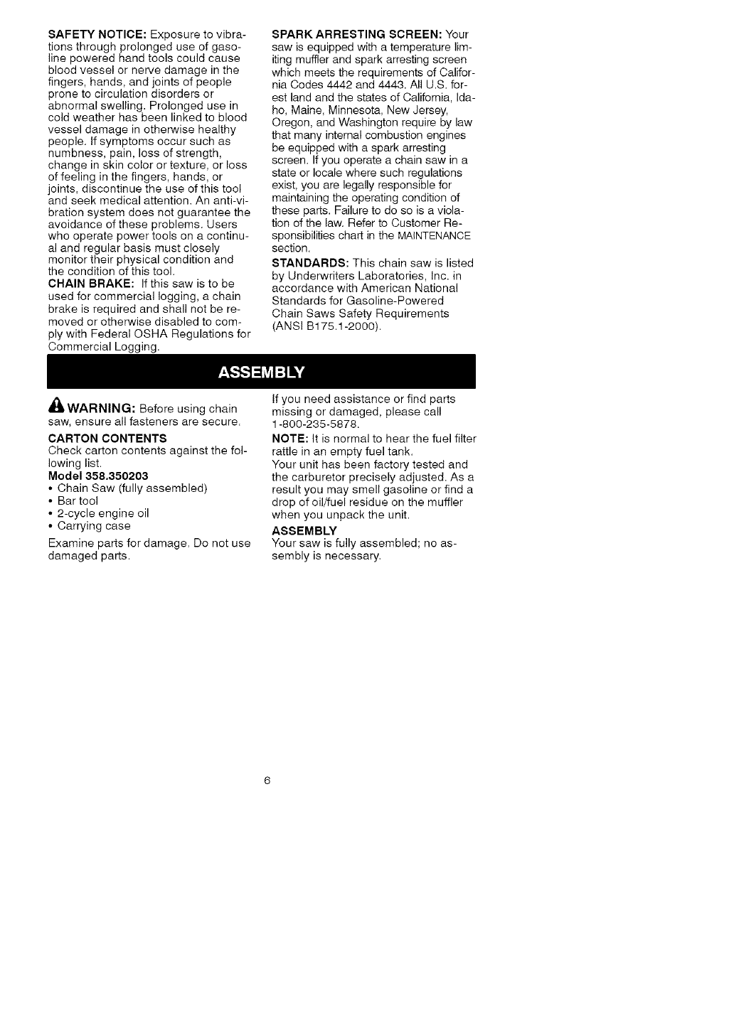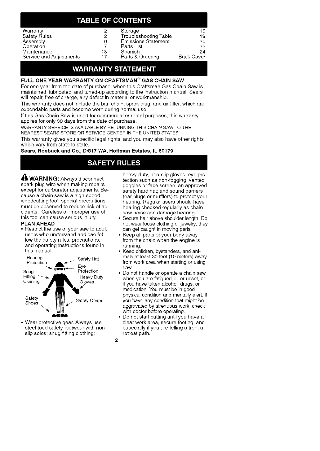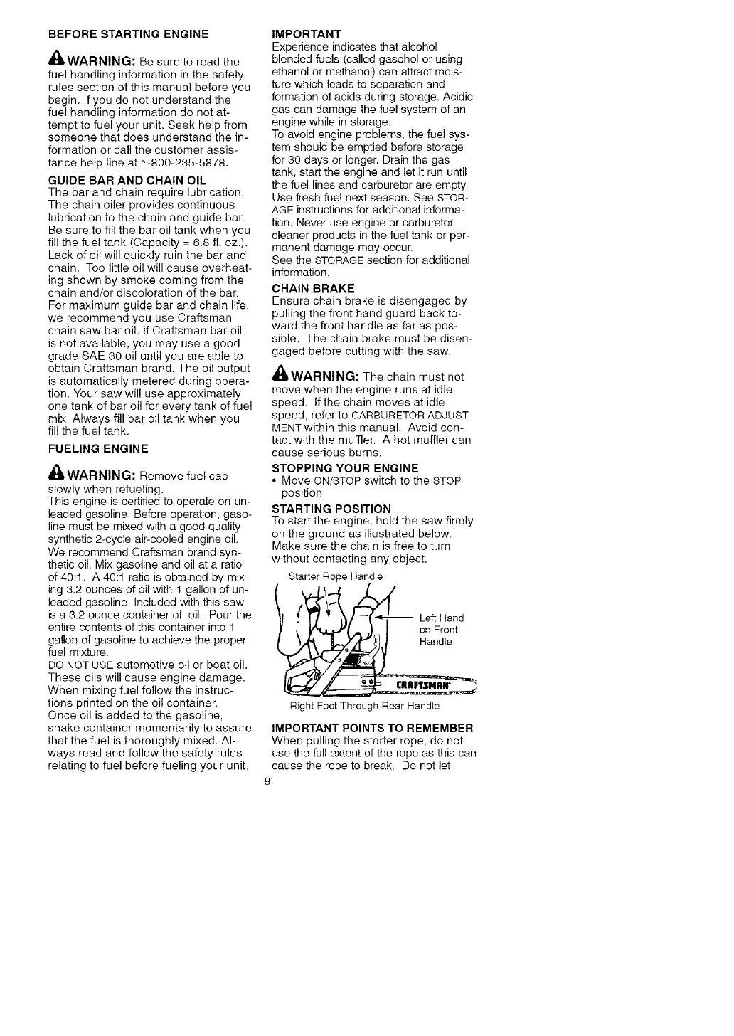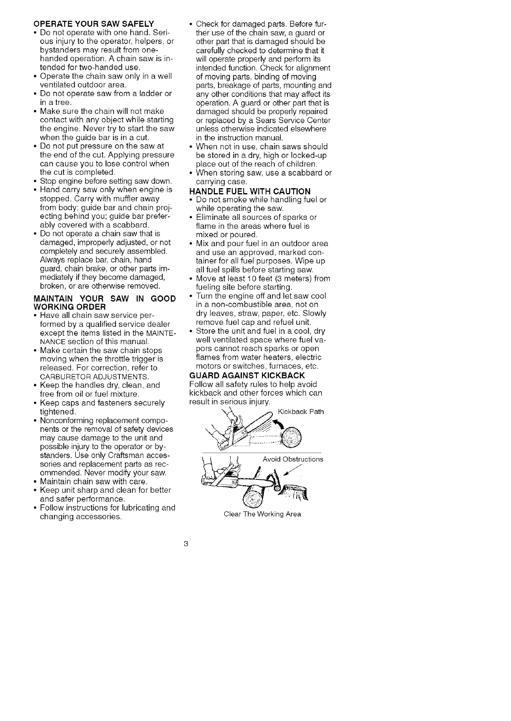 Craftsman 358350203 User Manual CHAINSAW Manuals And Guides L0608605