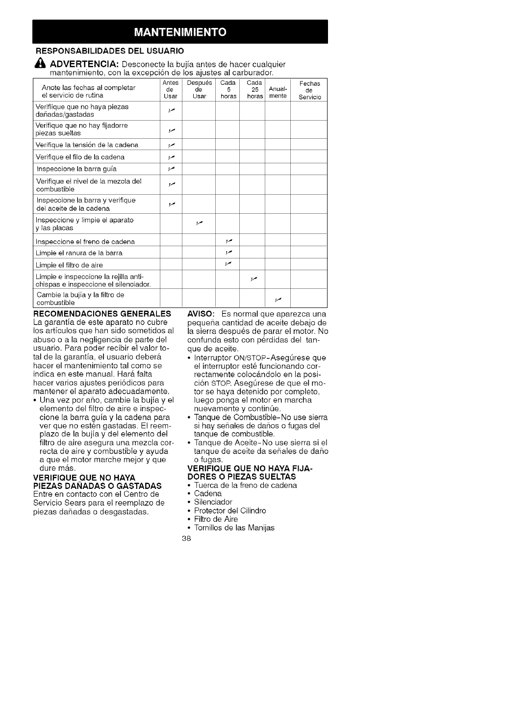 cha de mantenimiento programada),