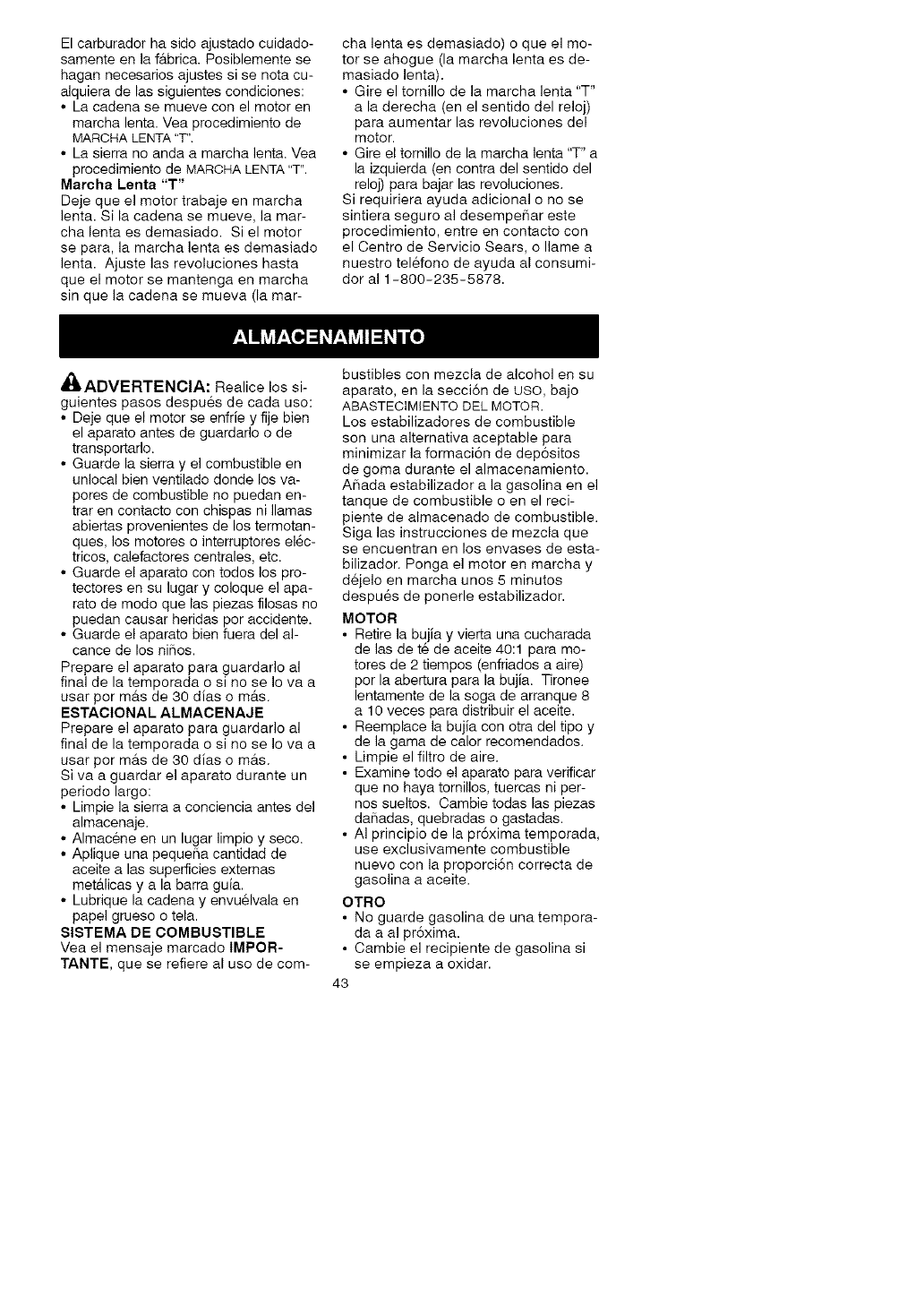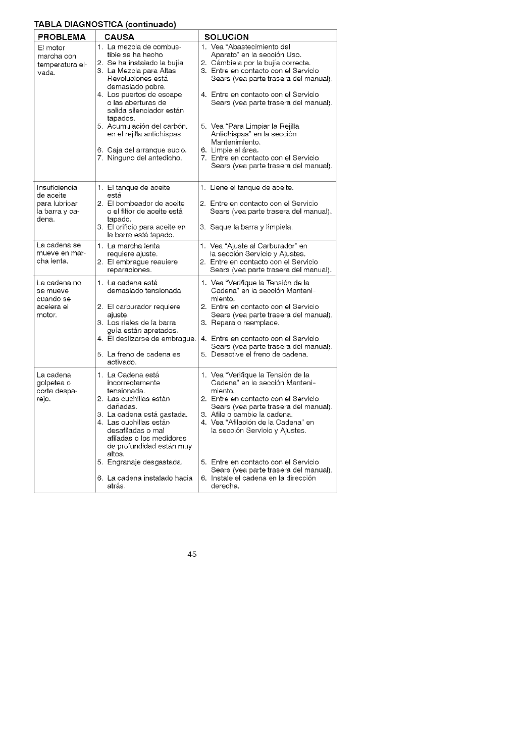 maintained, lubricated, and tuned-up according to the instruction manual, Sears