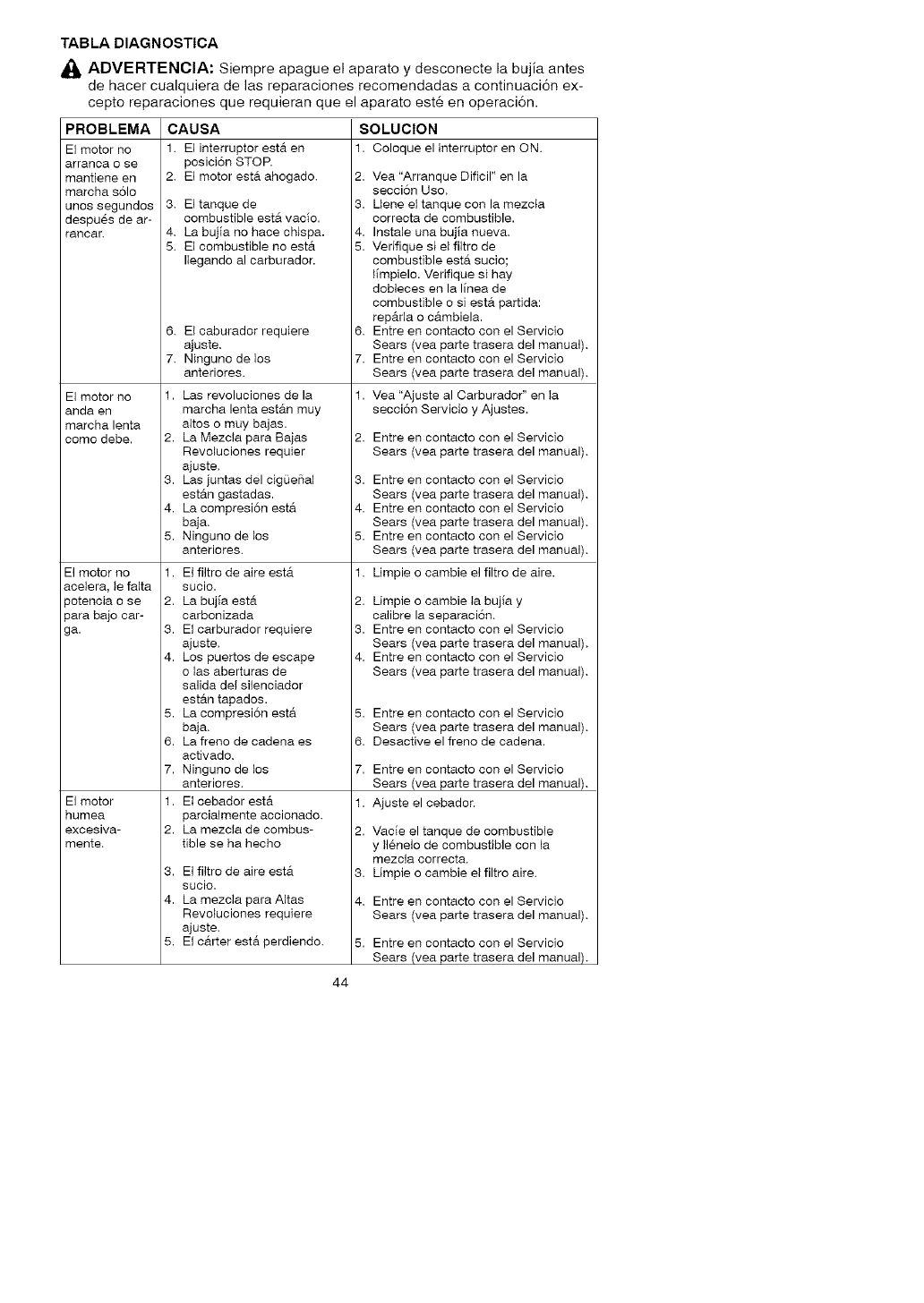 except for carburetor adjustments. Be-