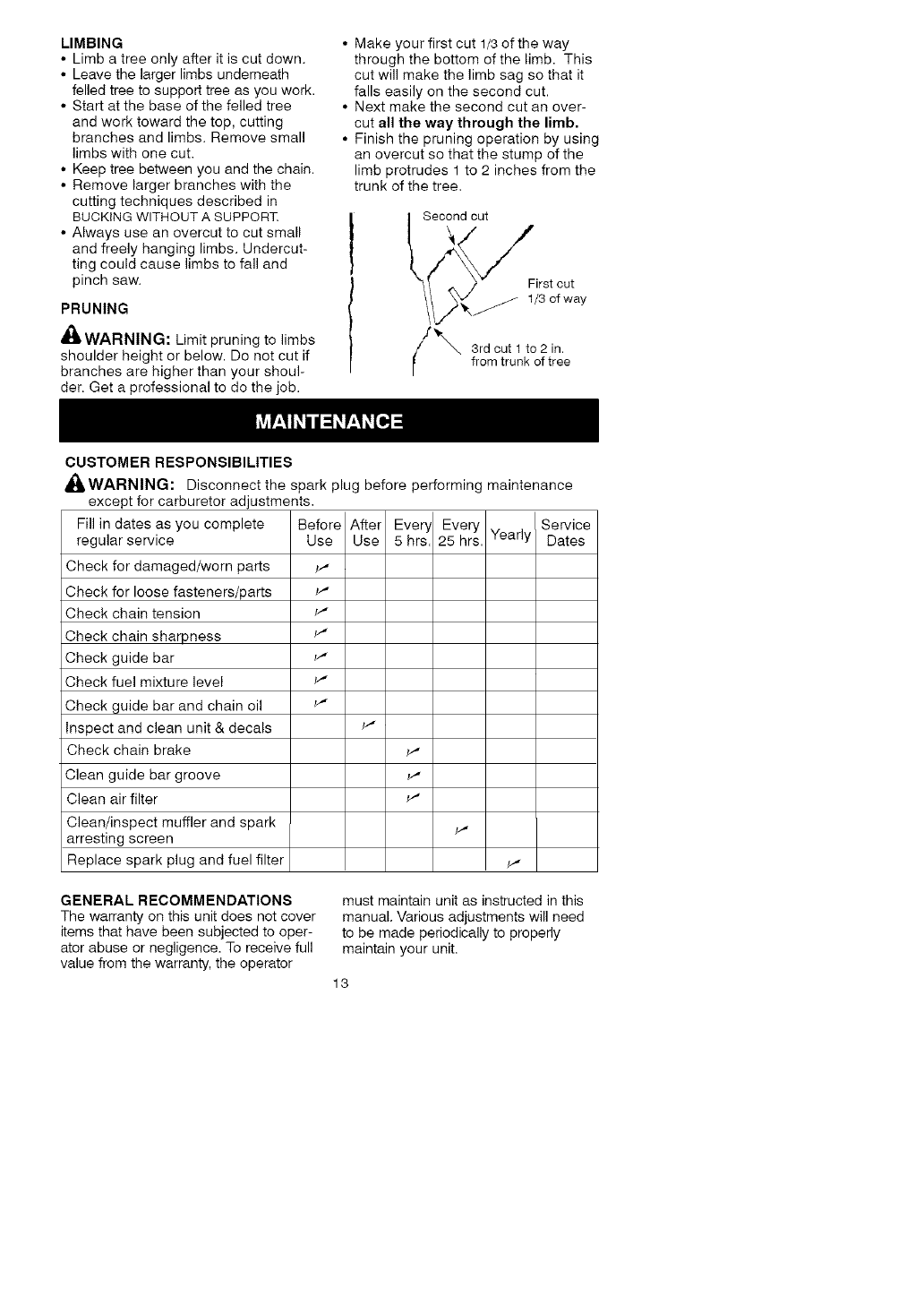 This warranty does not include the bar, chain, spark plug, and air filter, which are