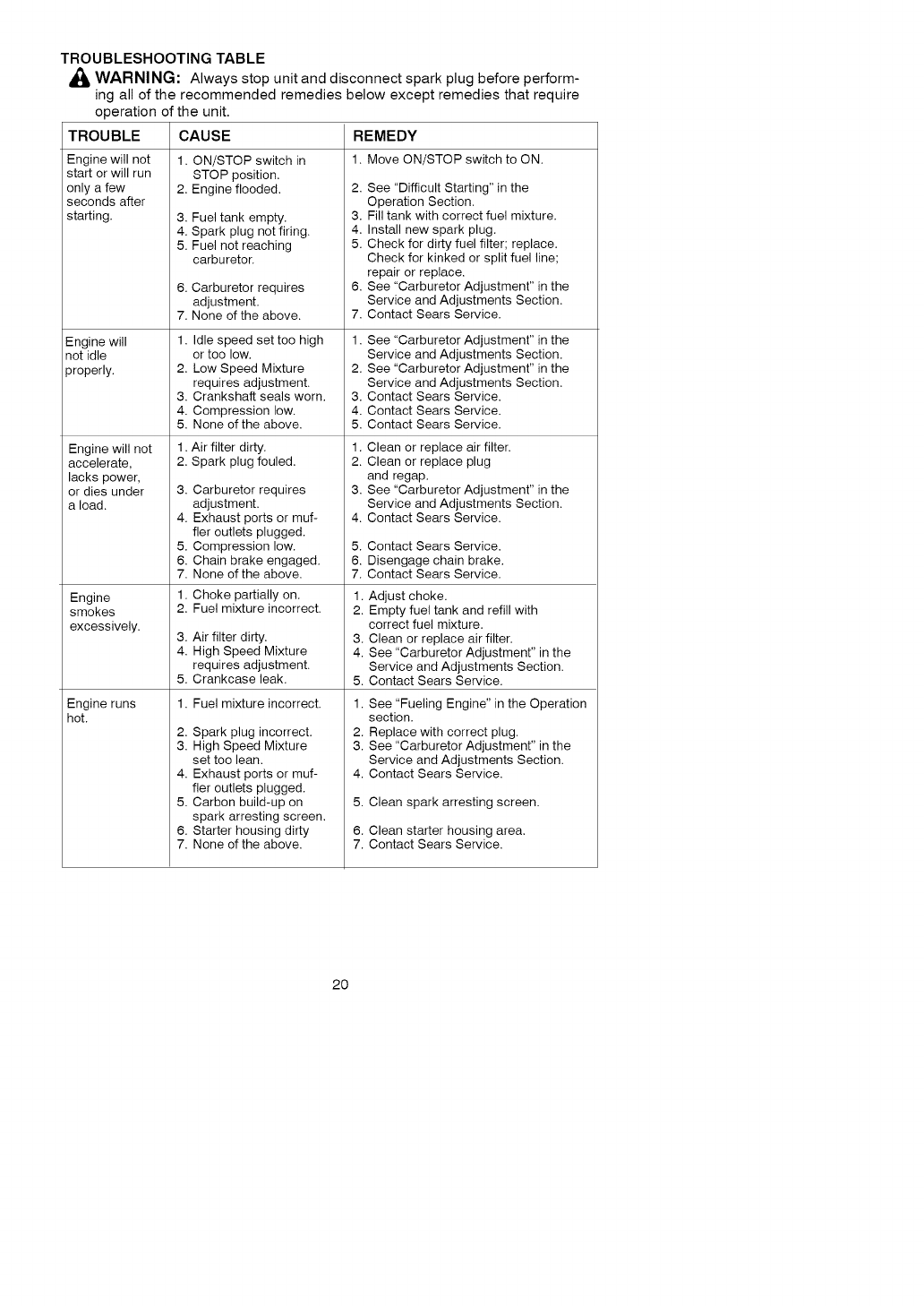 maintained, lubricated and tuned up according to the instruction manual, Sears