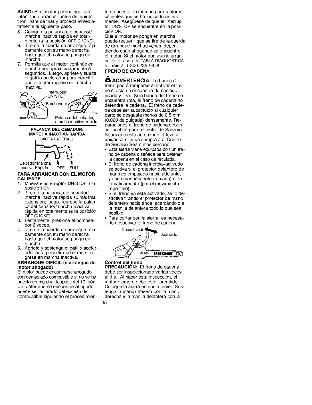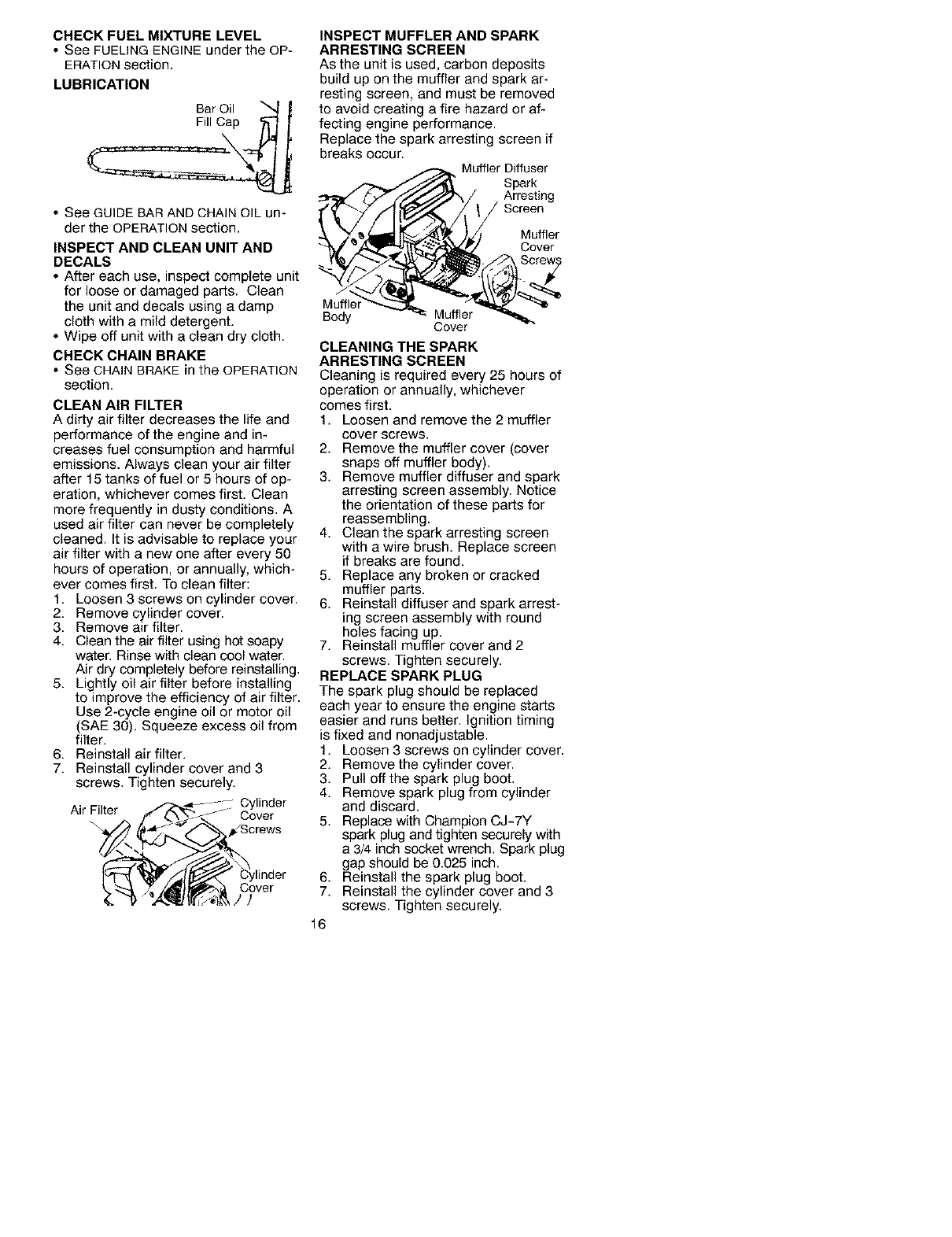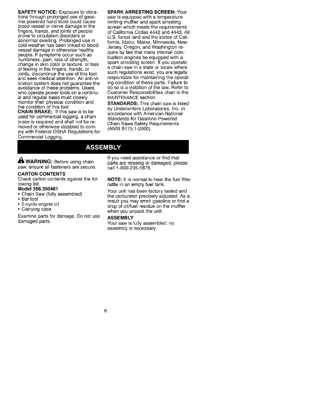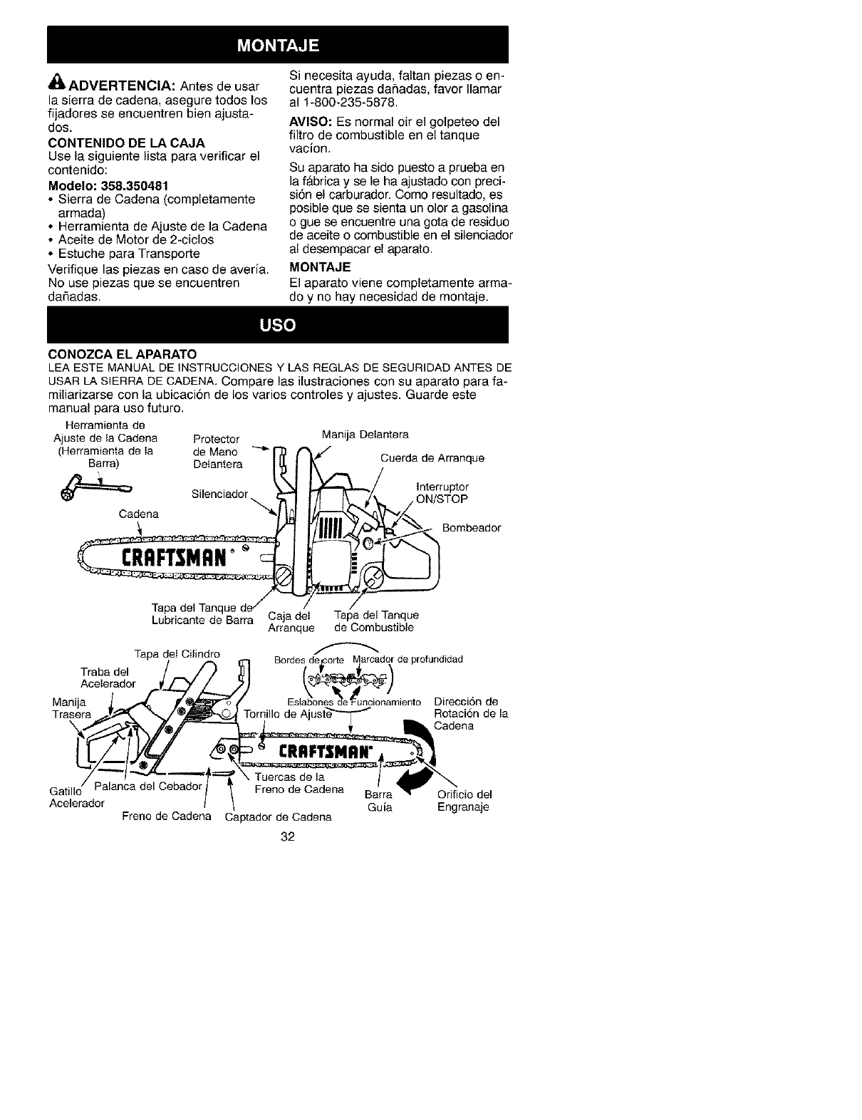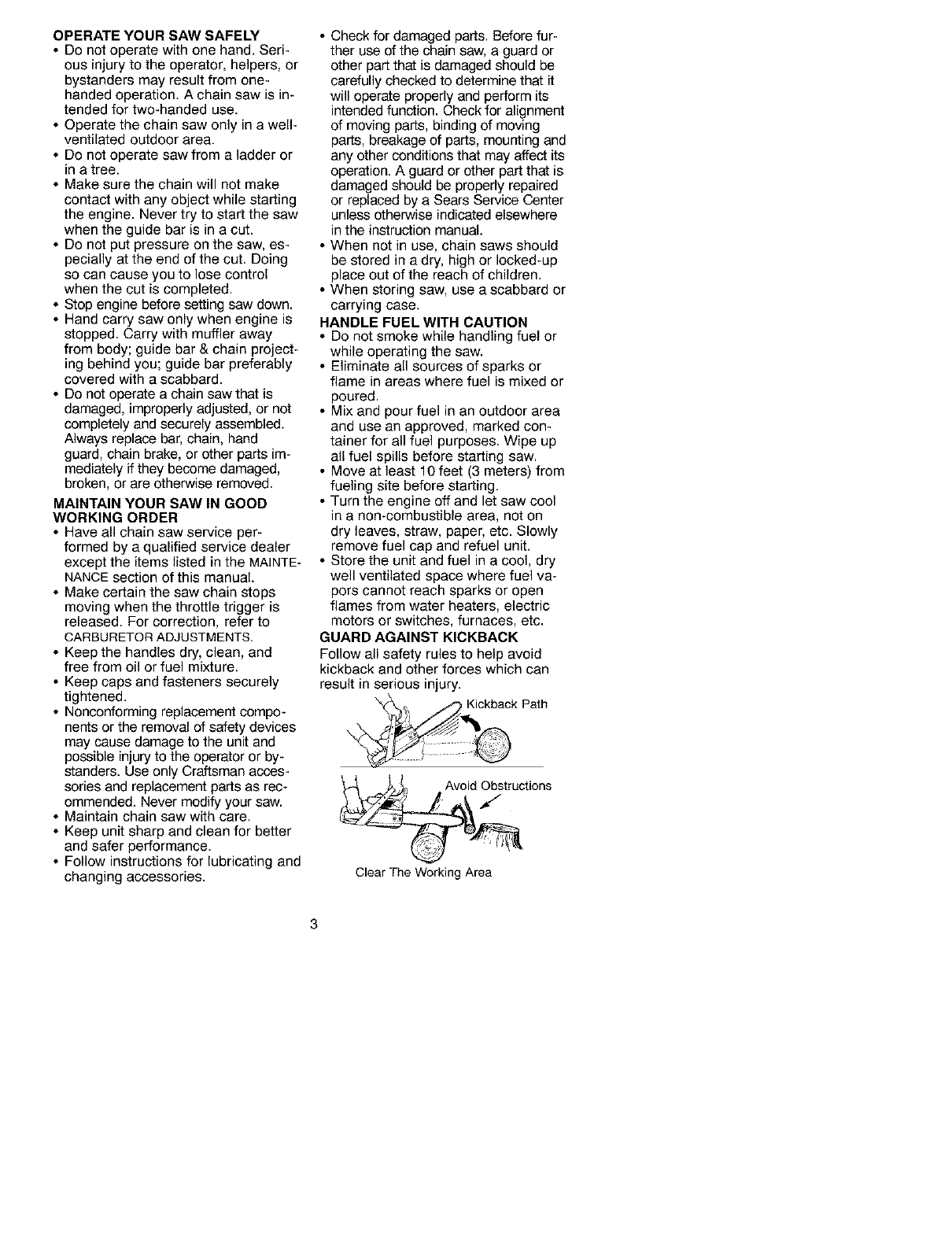 Craftsman 358350481 User Manual CHAINSAW Manuals And Guides L0212108