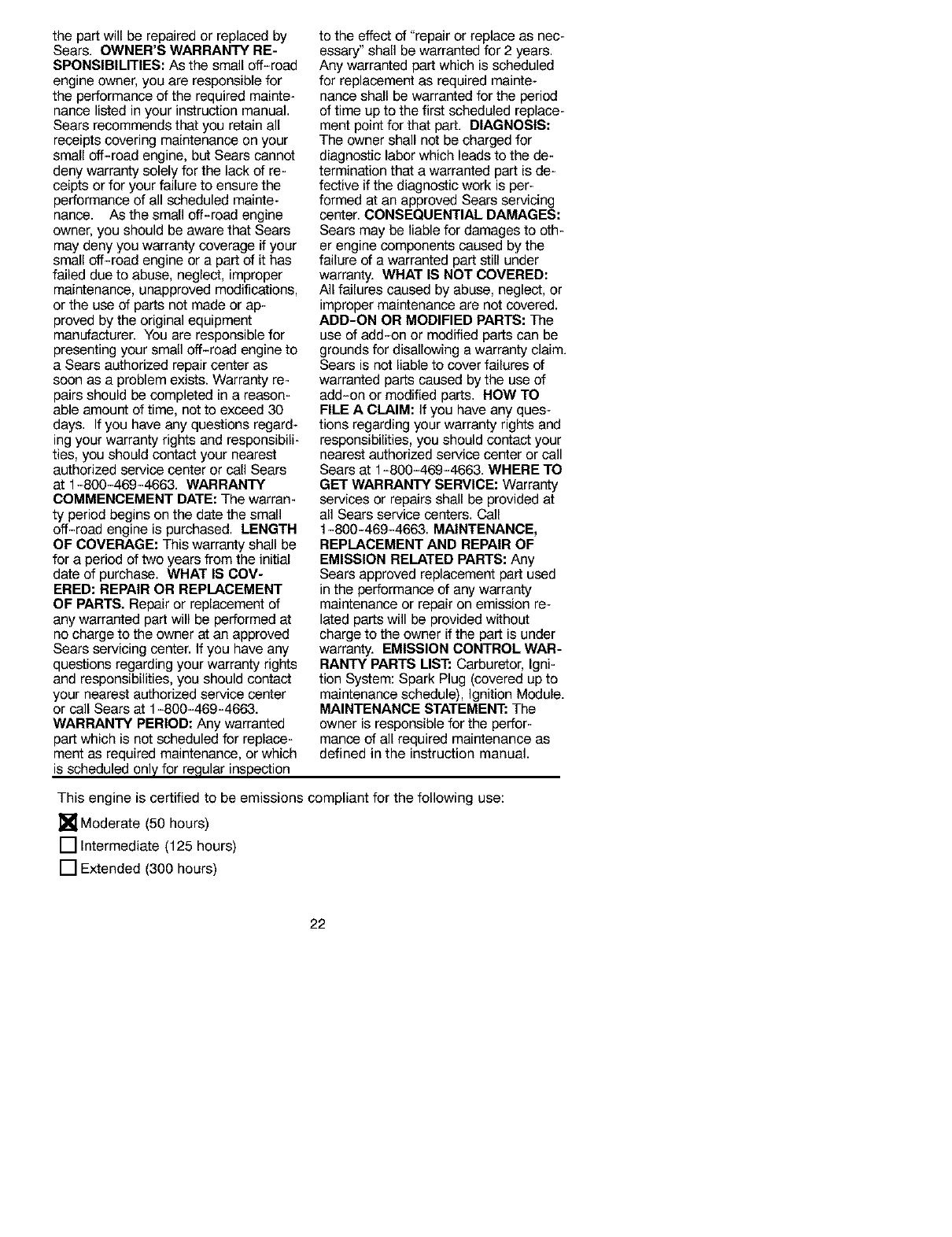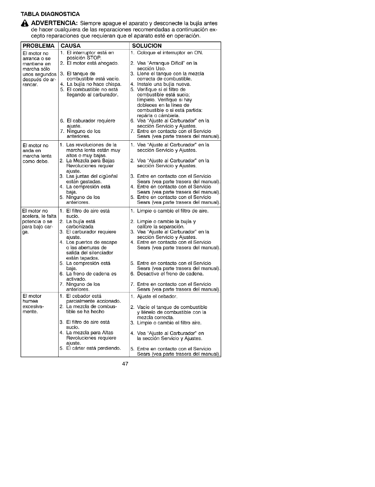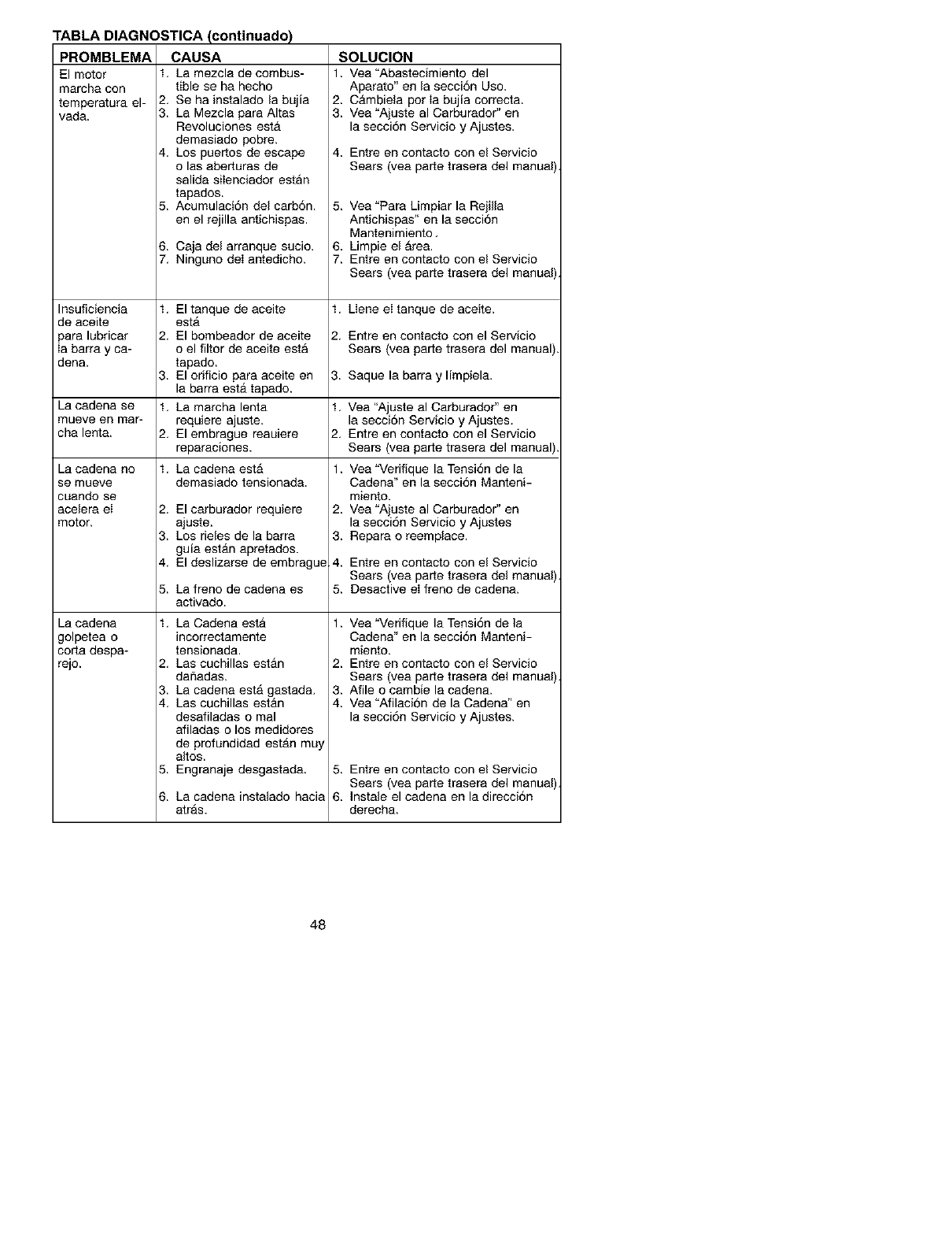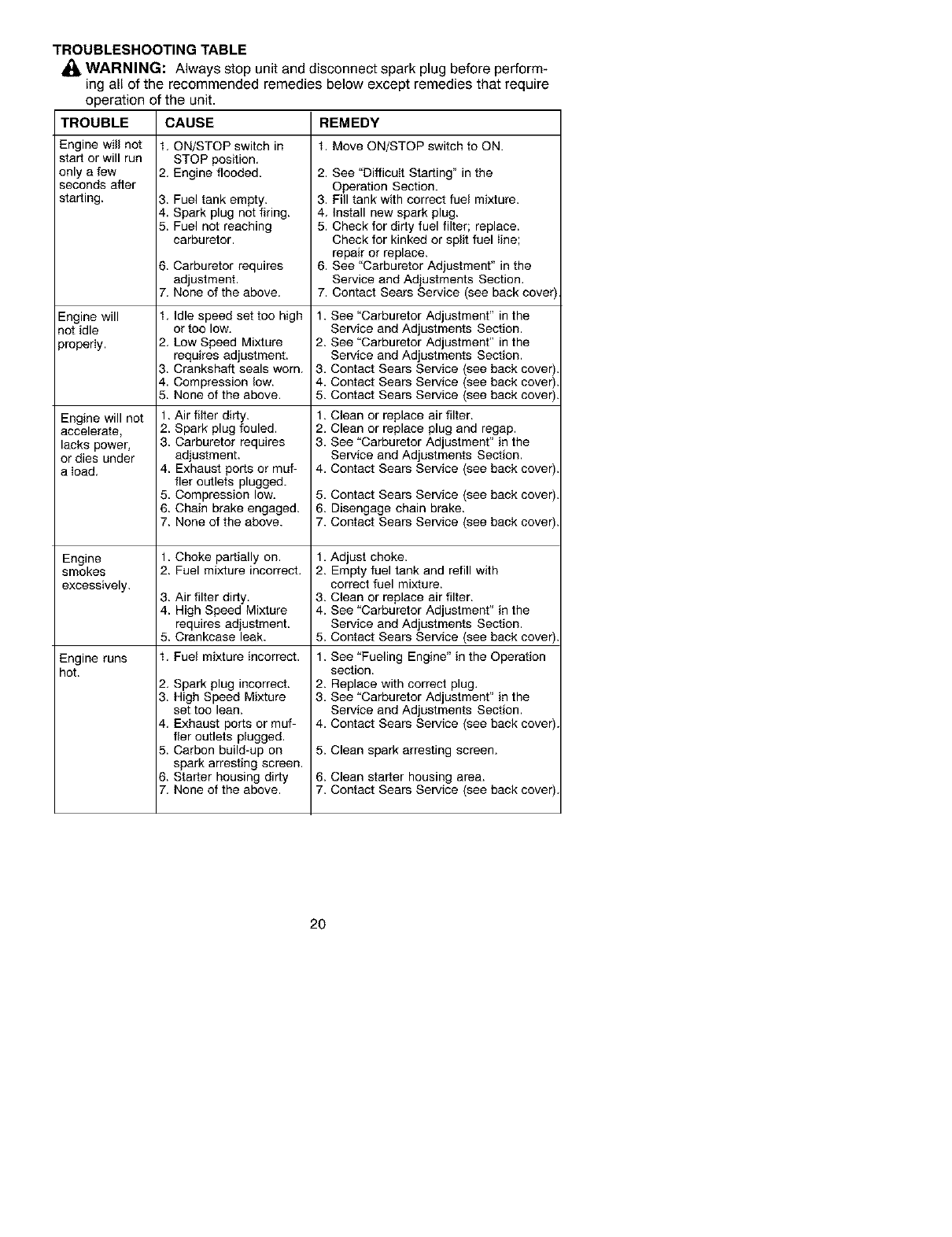 maintained, lubricated and tuned up according to the instruction manual, Sears