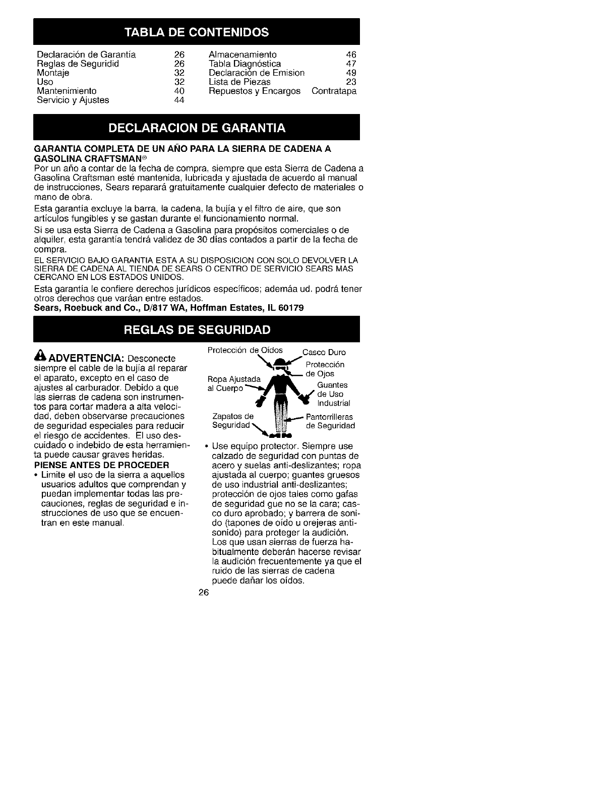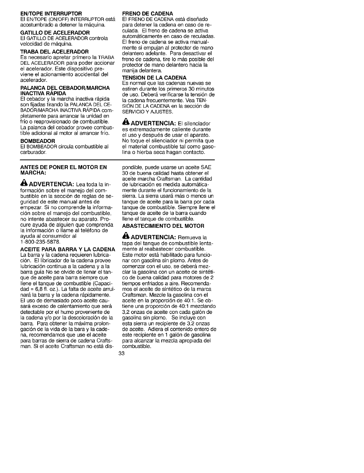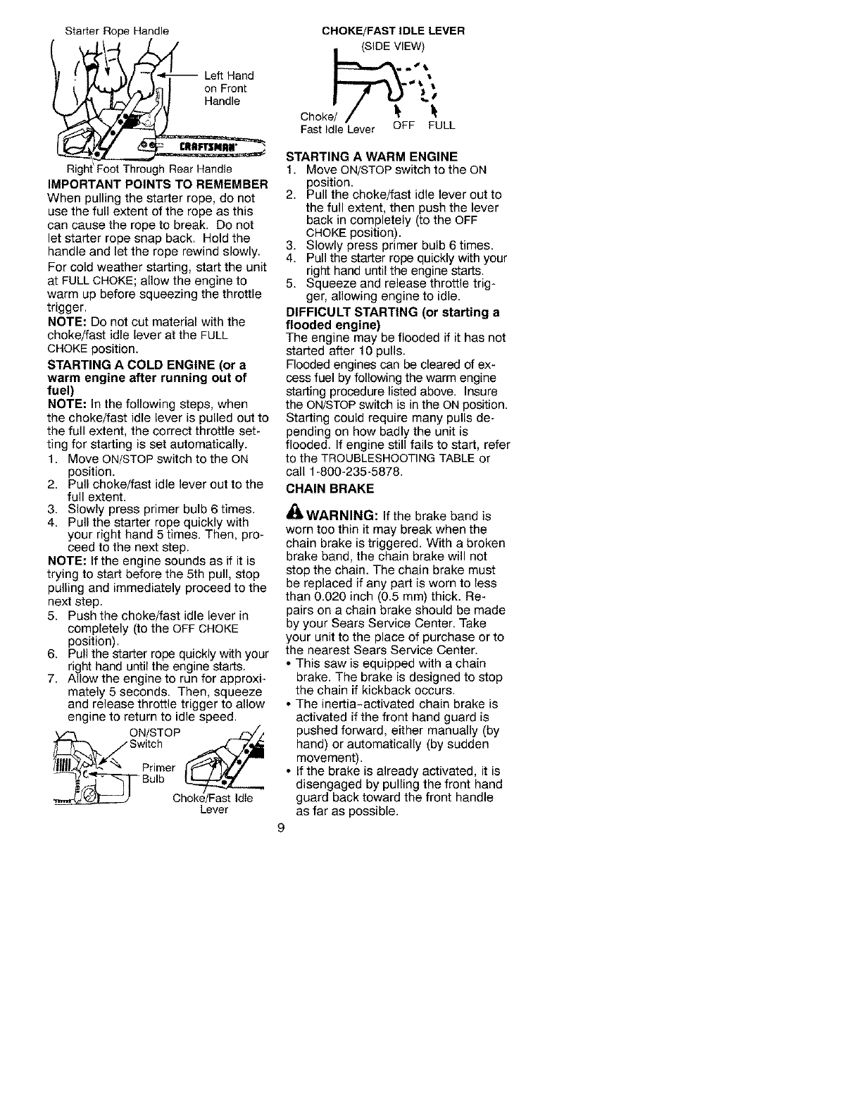FULL ONE YEAR WARRANTY ON CRAFTSMAN ®GAS CHAIN SAW
