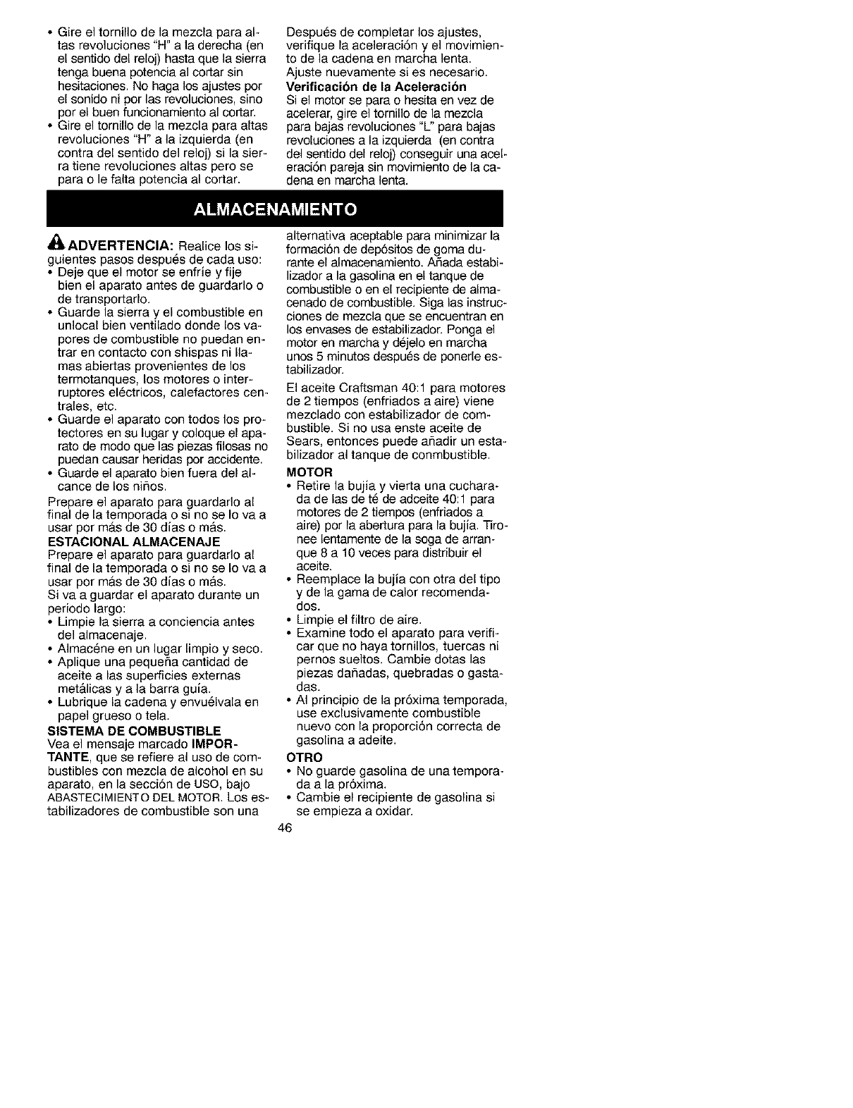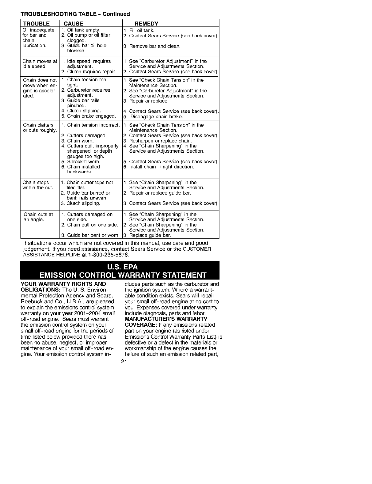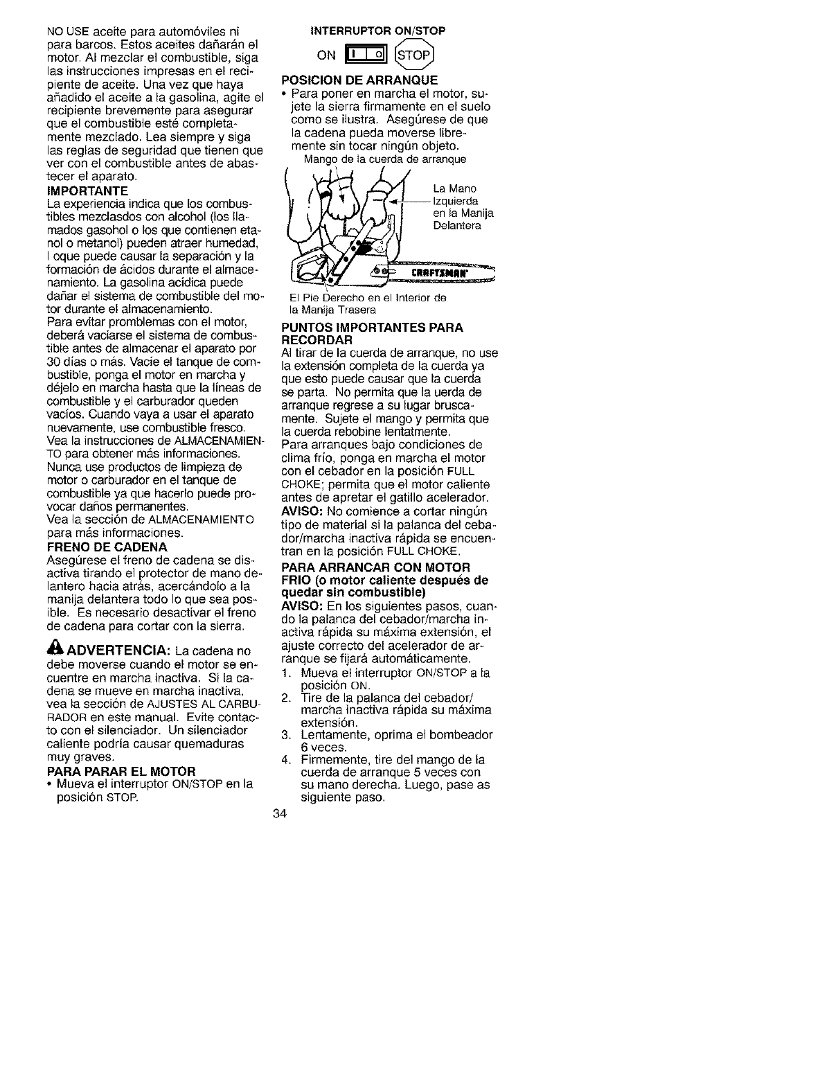 FULL ONE YEAR WARRANTY ON CRAFTSMAN ®GAS CHAIN SAW