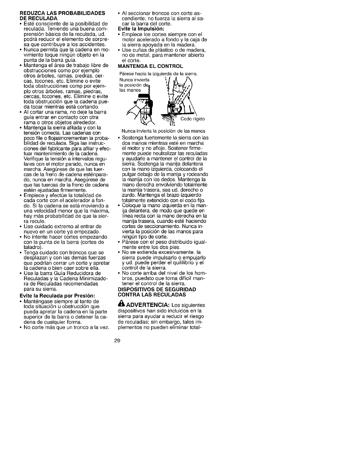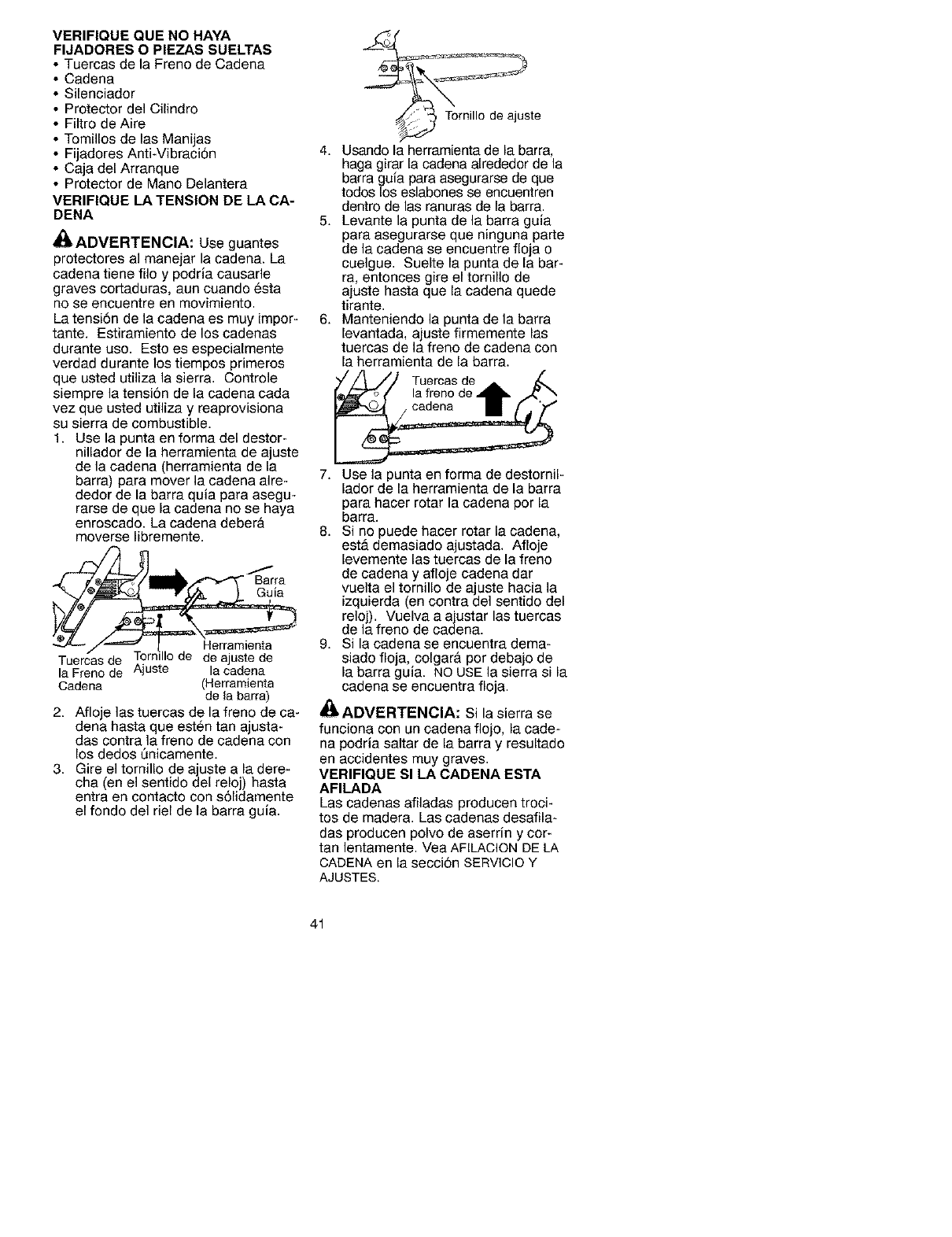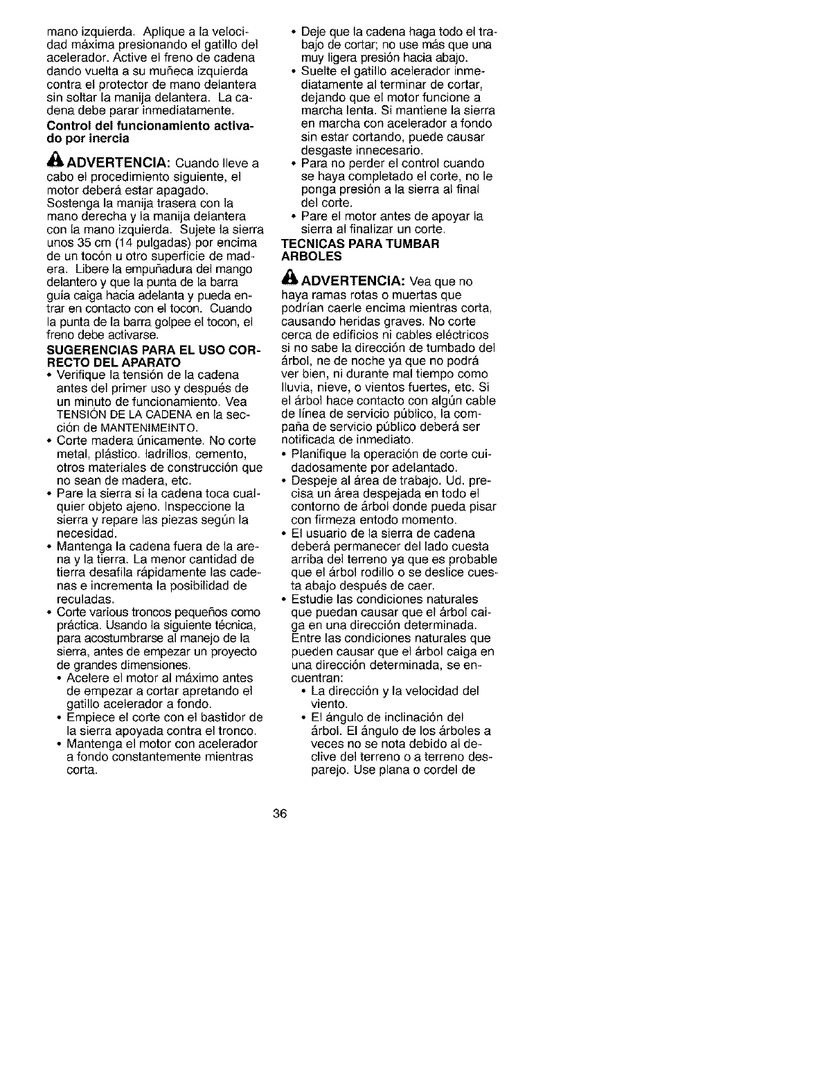 • Do not handle or operate a chain saw