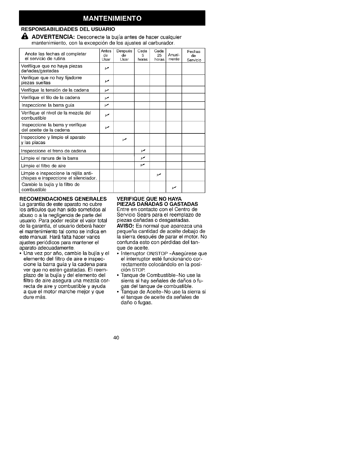DE GARANTIA: Cualquier pieza garan-
