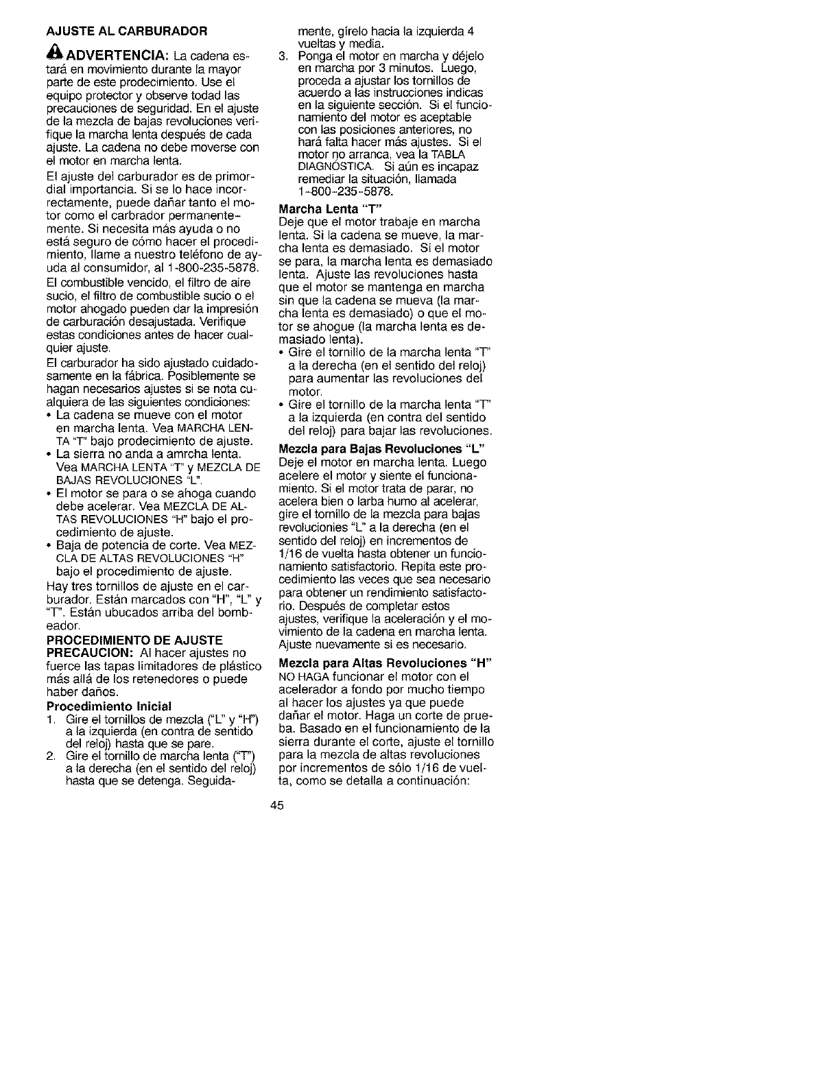 cept for carburetor adjustments. Be-