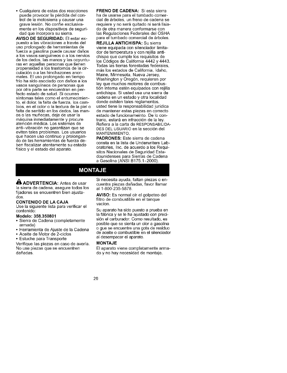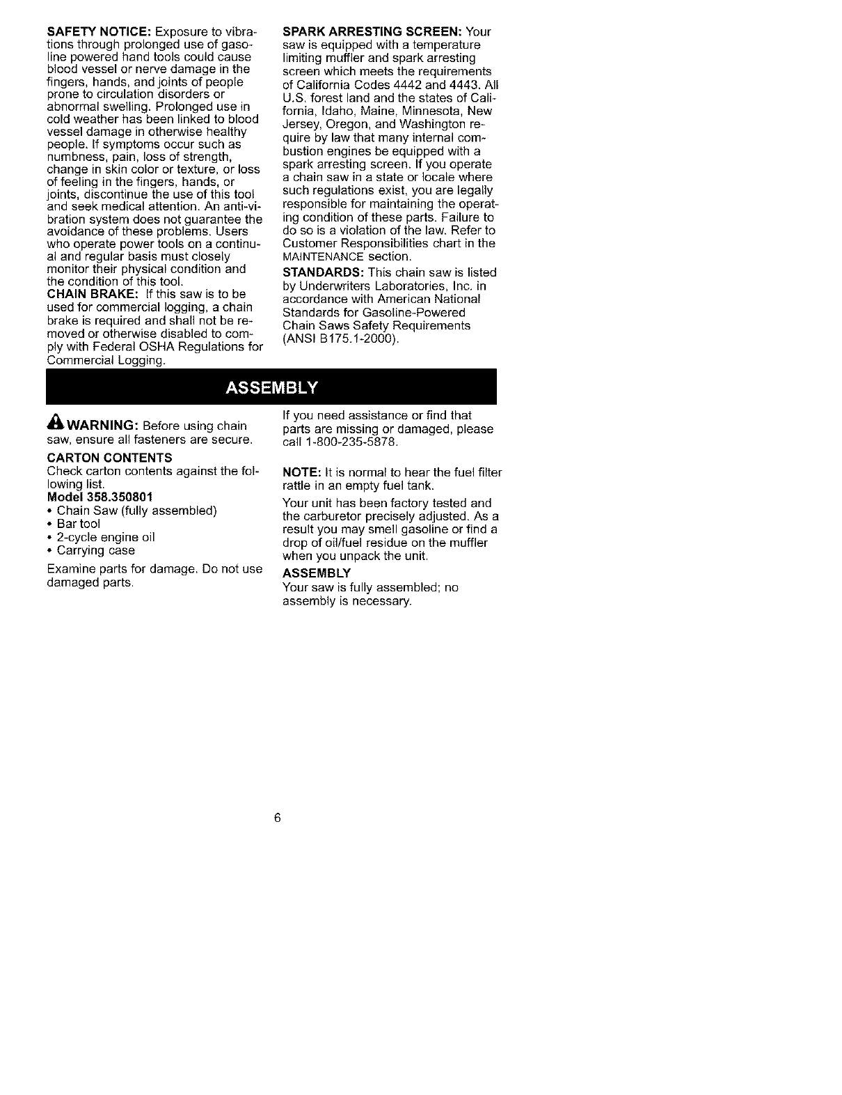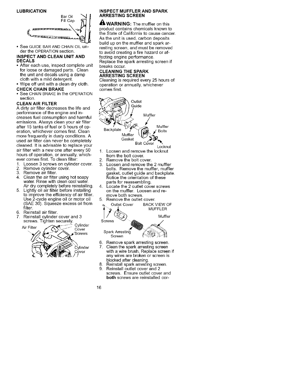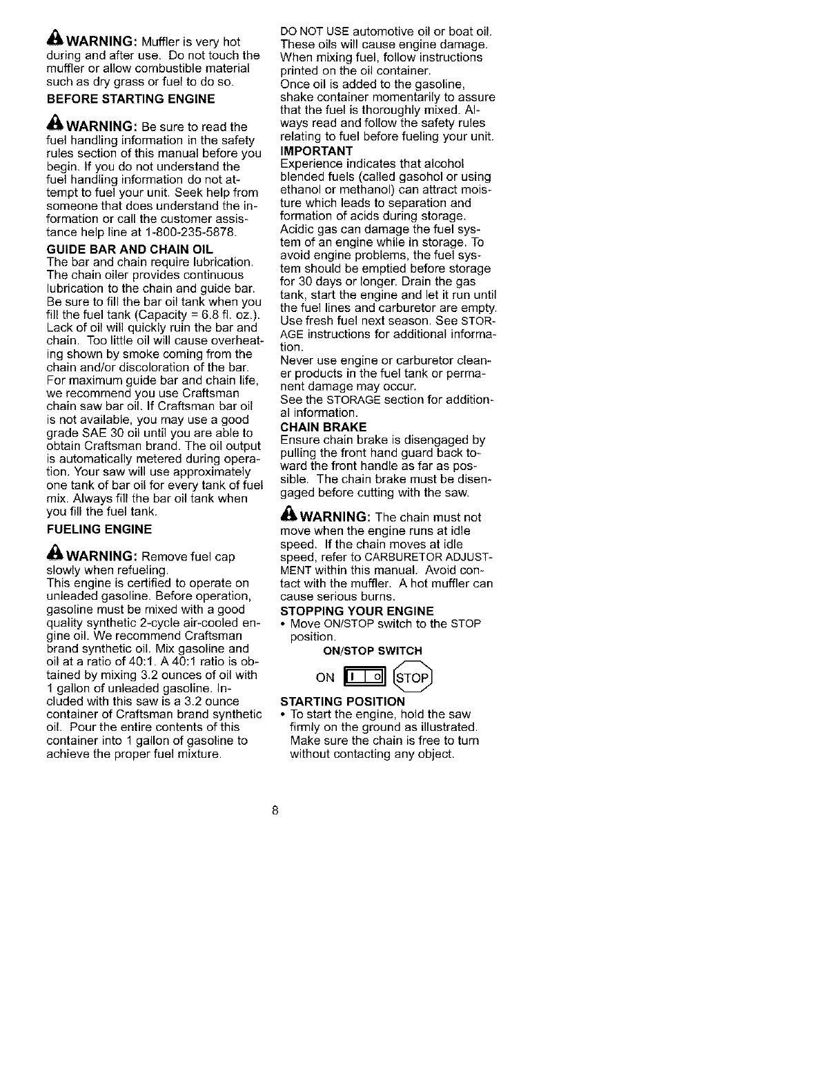 Craftsman 358350801 User Manual CHAINSAW Manuals And Guides L0212053