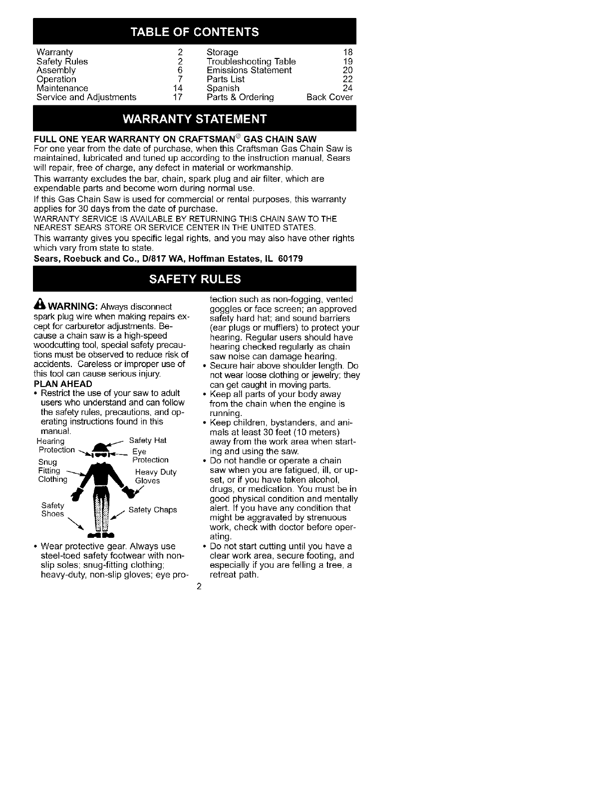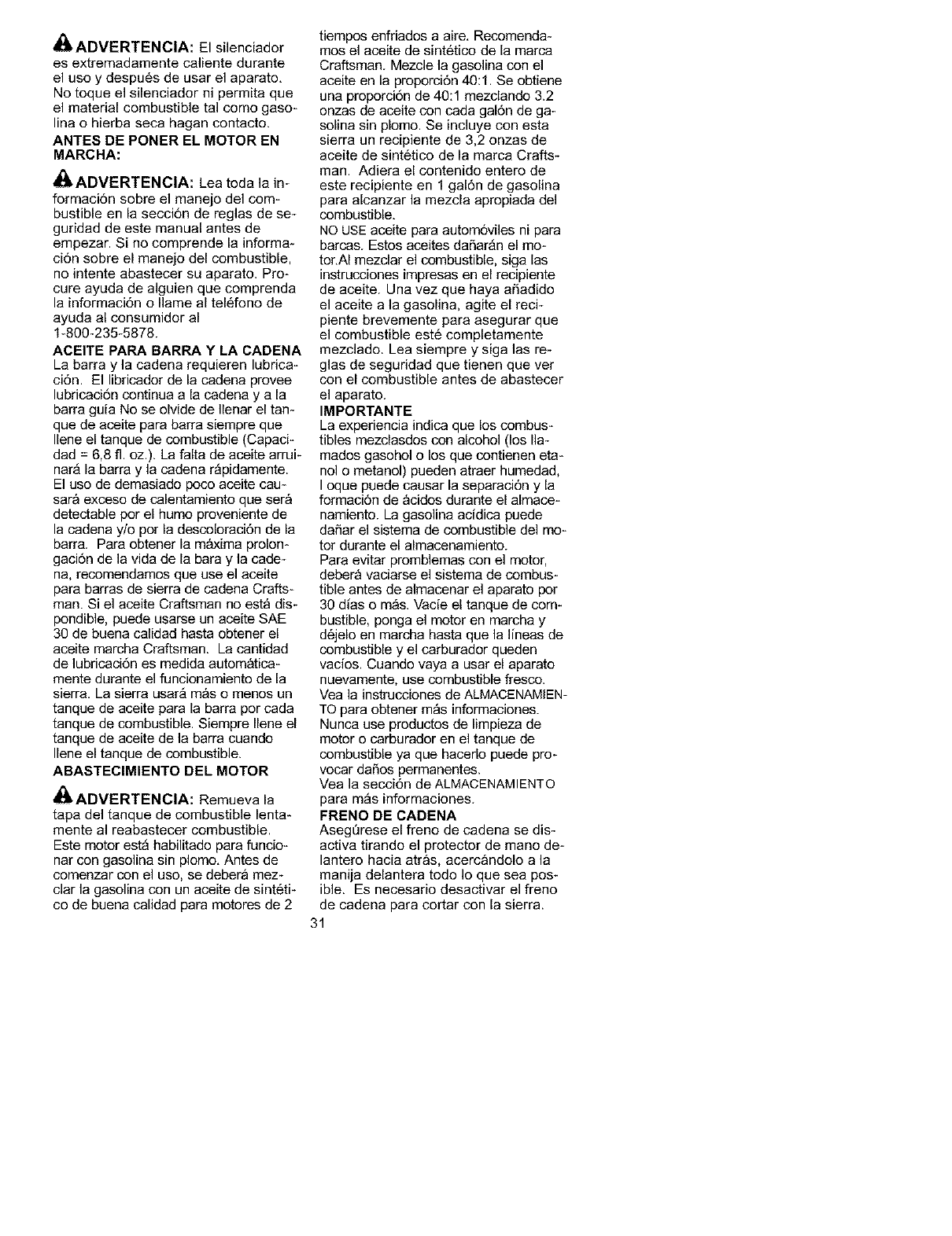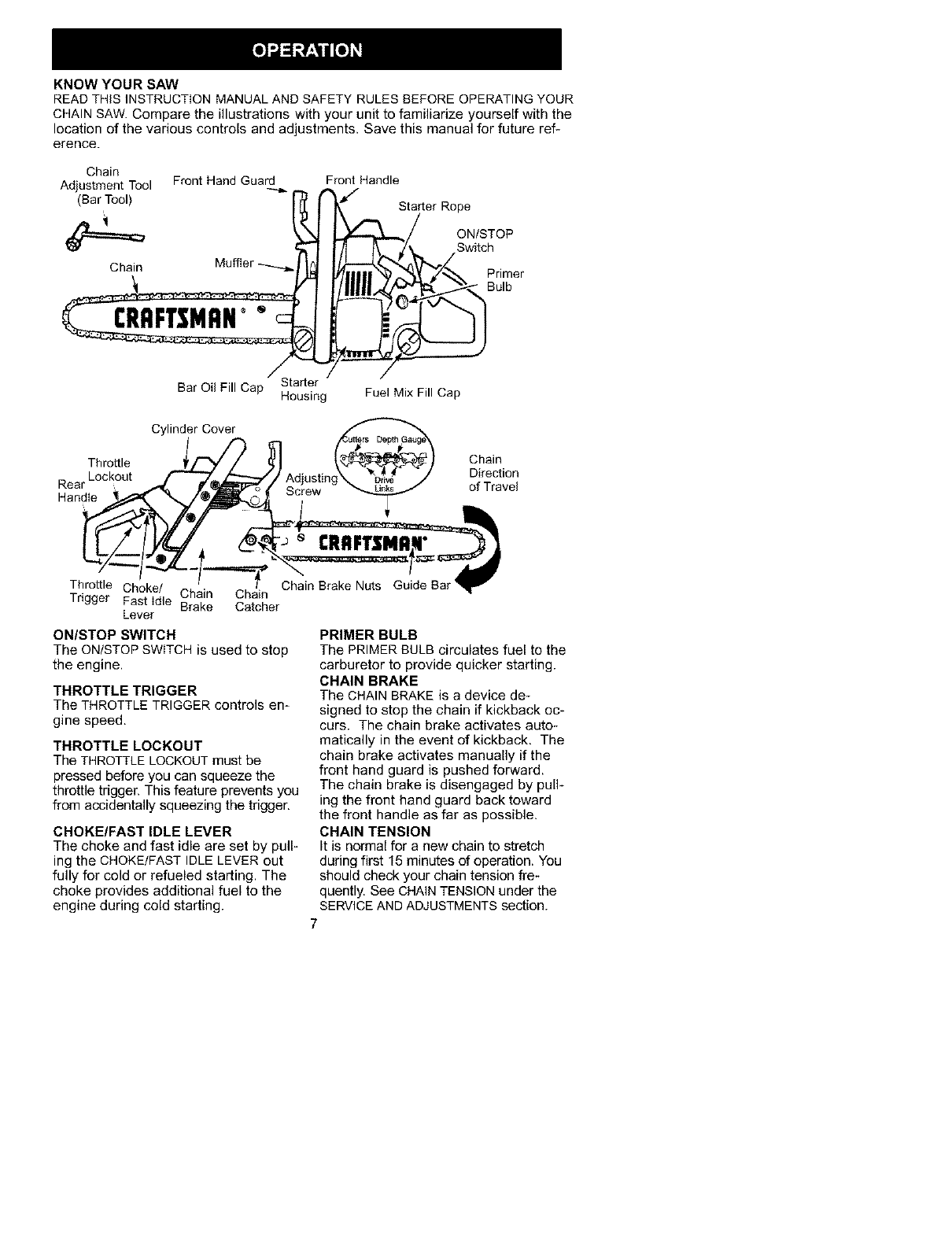 FULL ONE YEAR WARRANTY ON CRAFTSMAN ® GAS CHAIN SAW