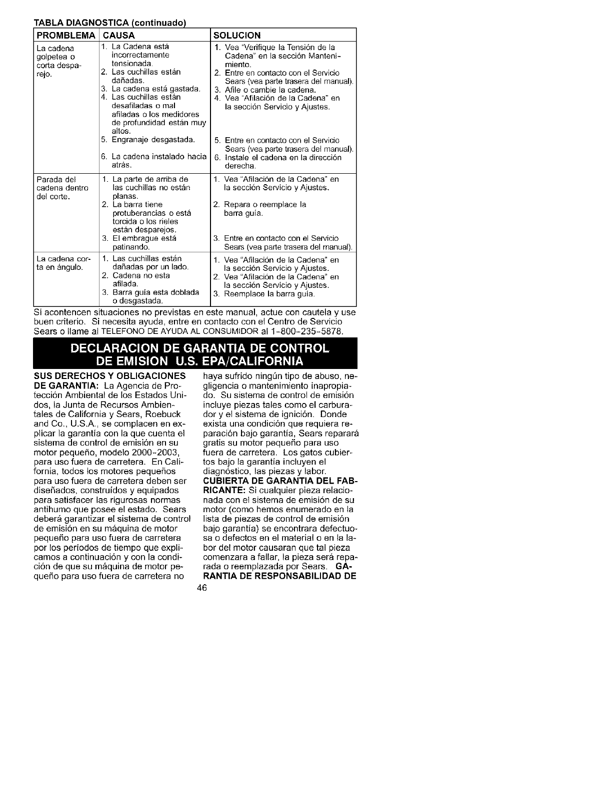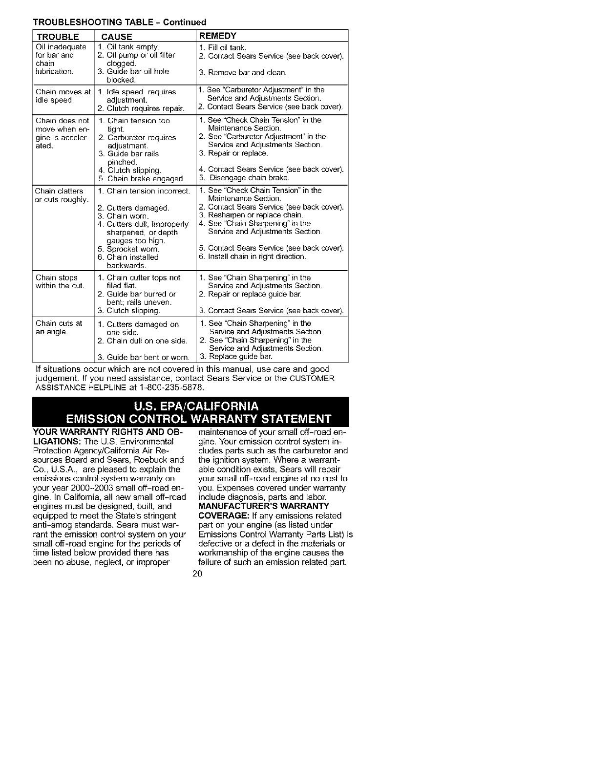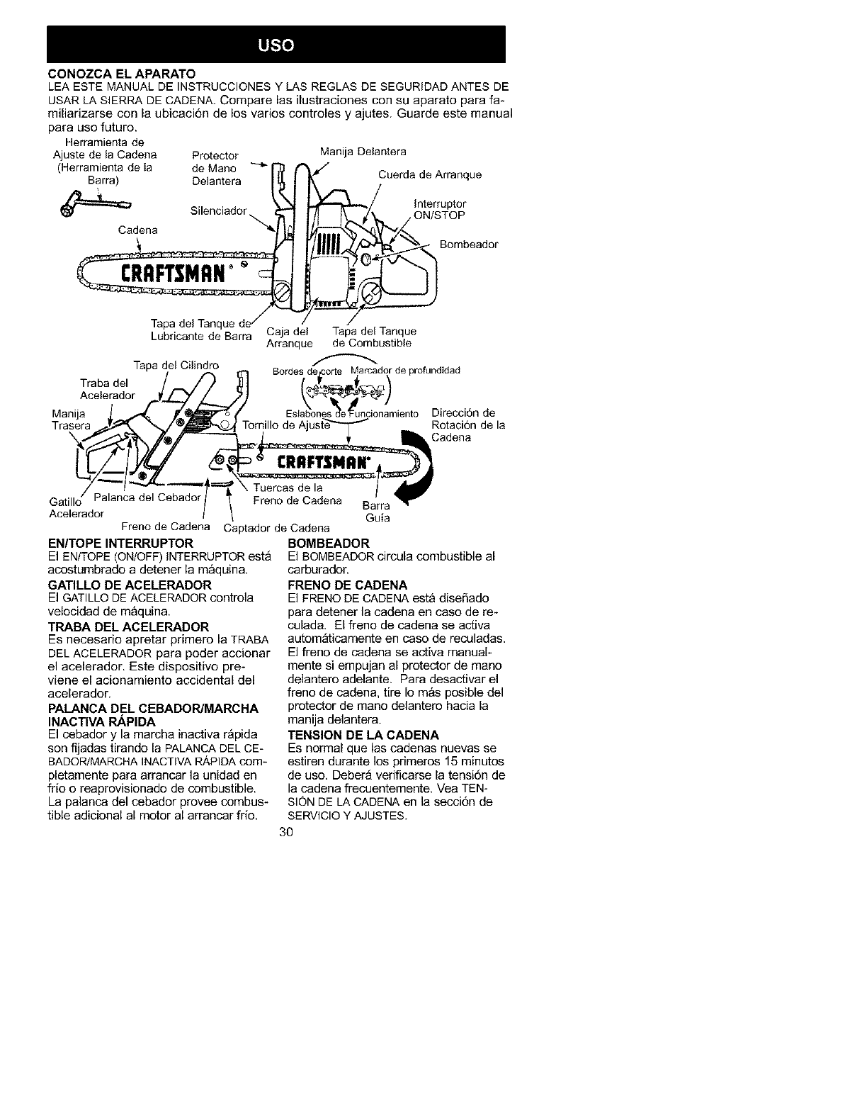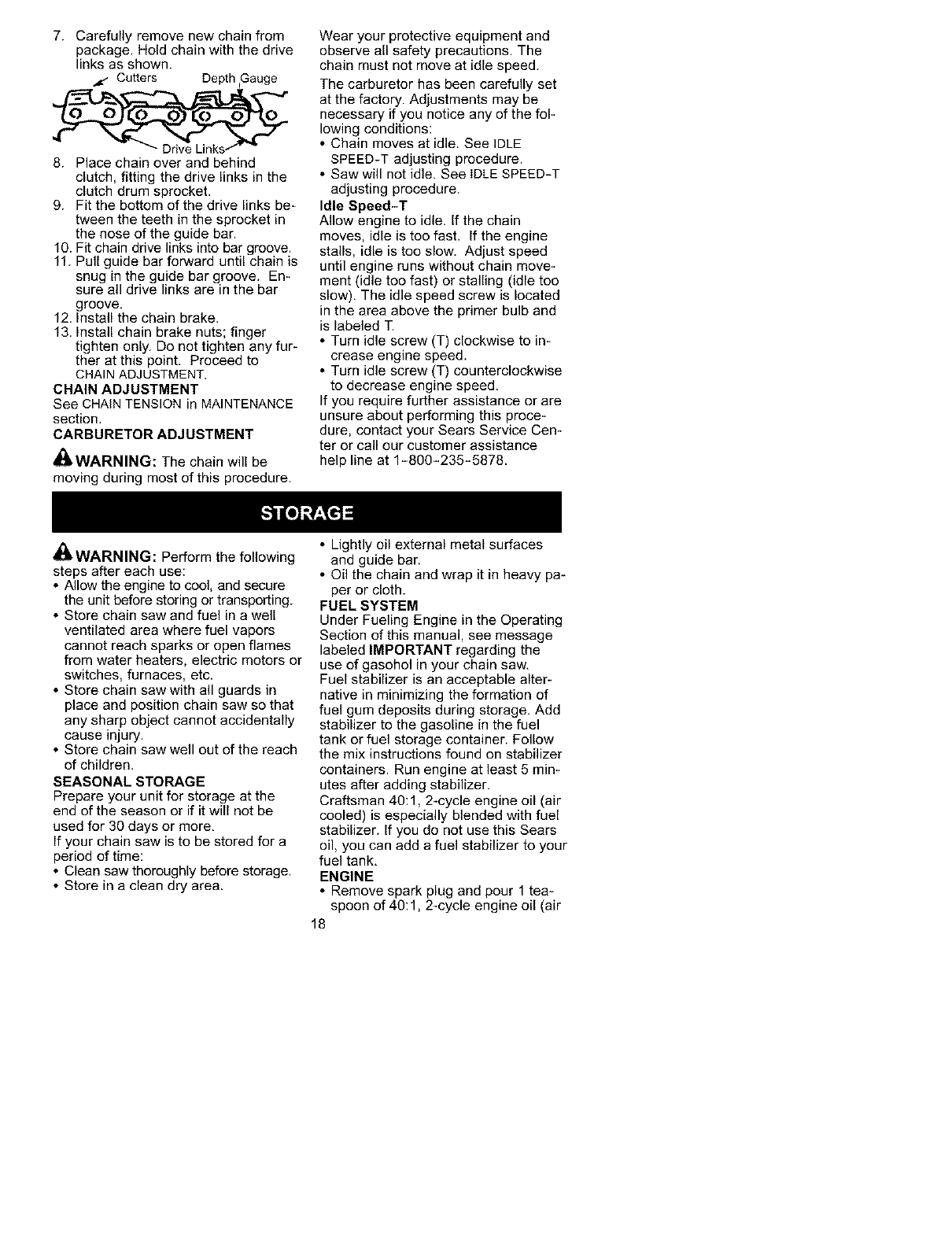 FULL ONE YEAR WARRANTY ON CRAFTSMAN ® GAS CHAIN SAW
