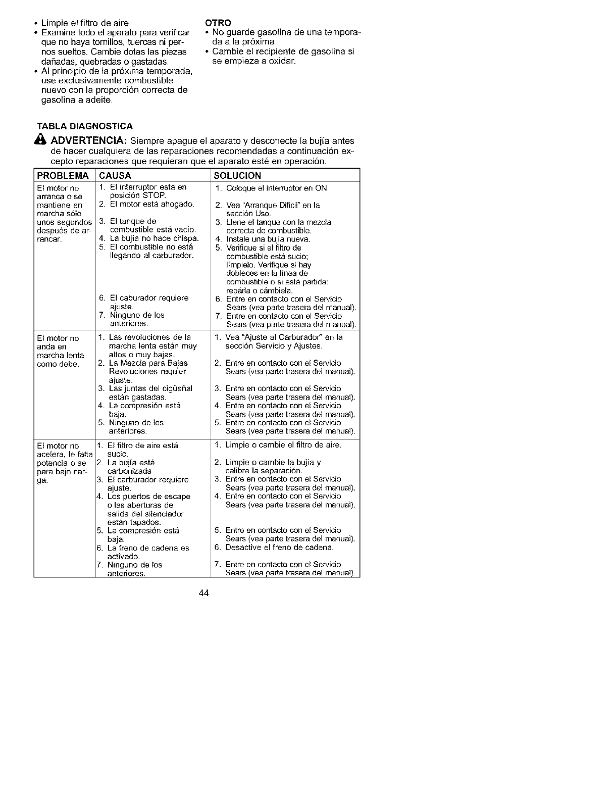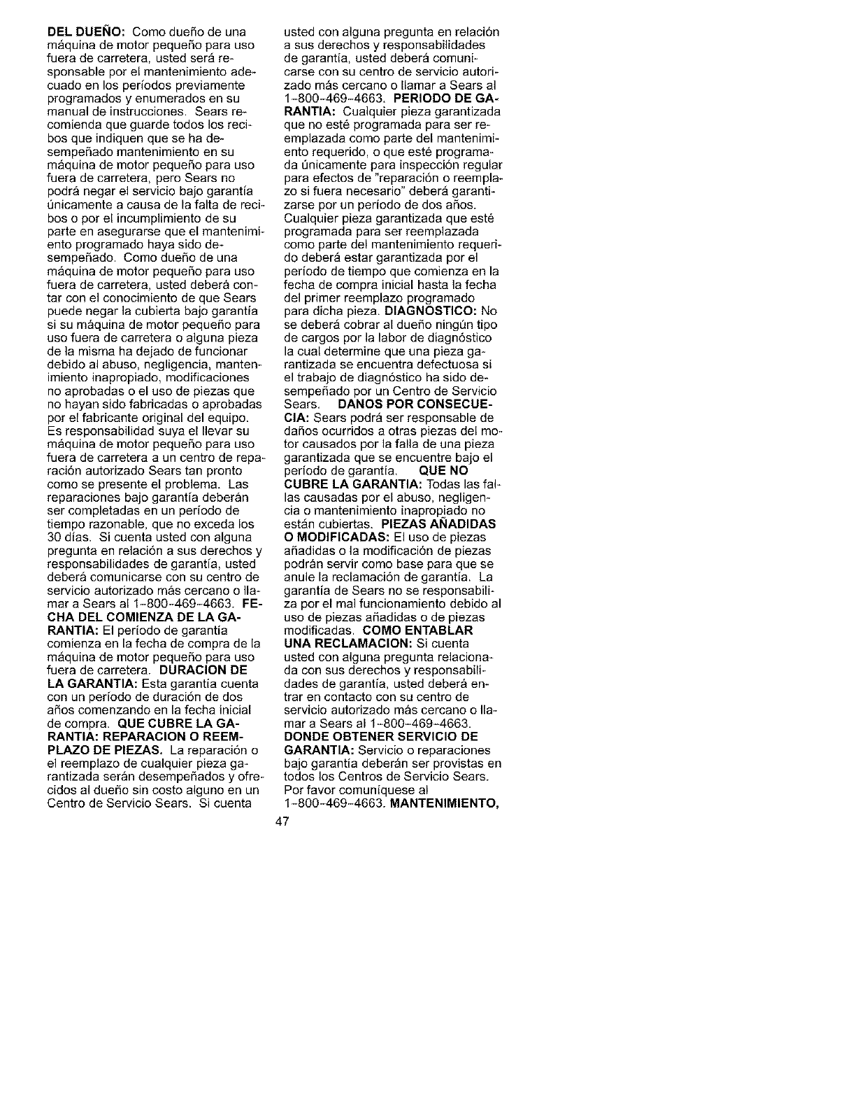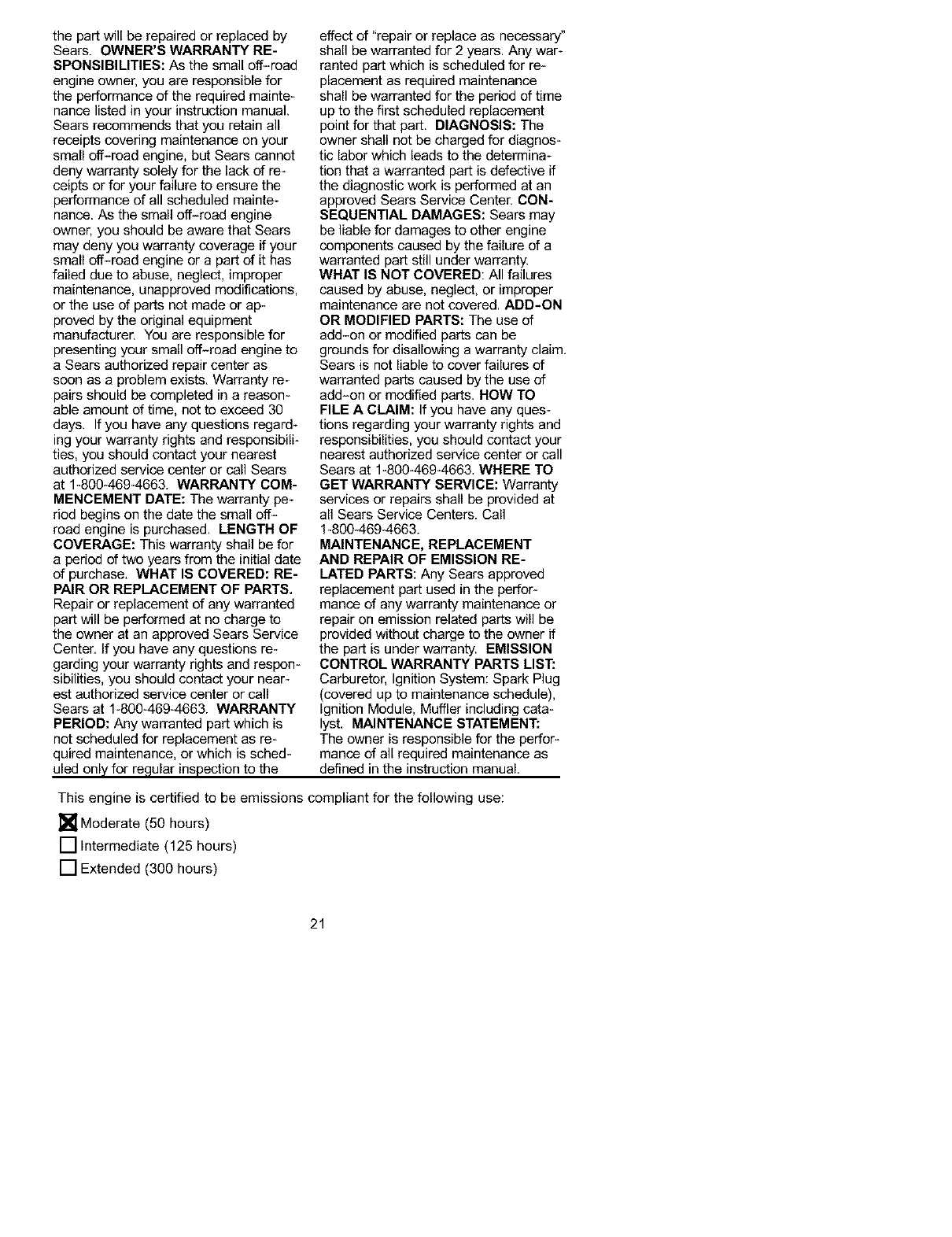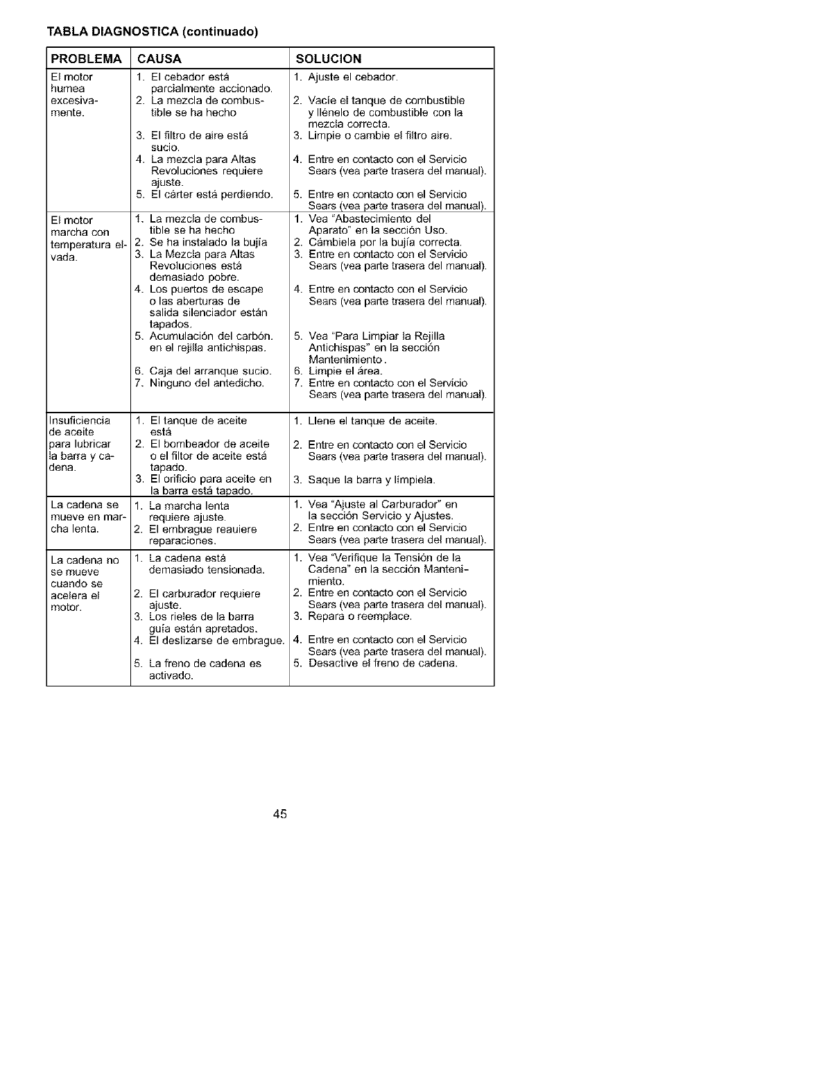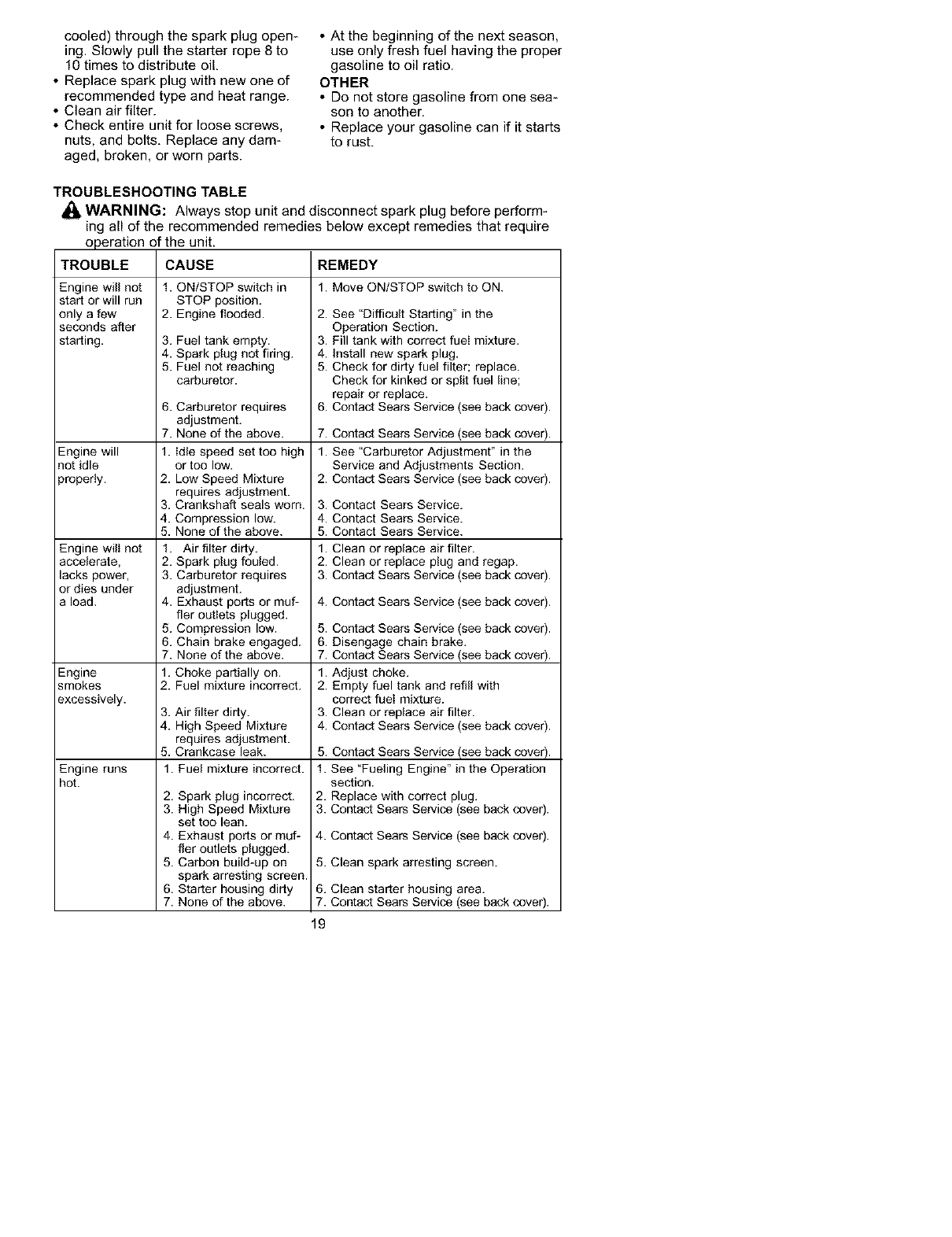 maintained, lubricated and tuned up according to the instruction manual, Sears