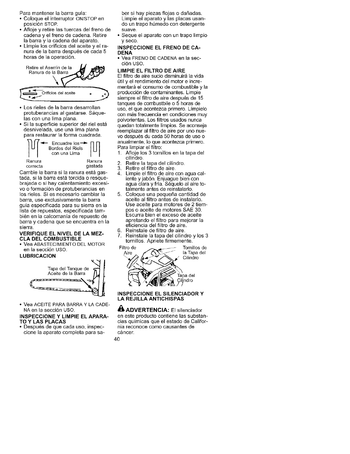 This warranty excludes the bar, chain, spark plug and air filter, which are