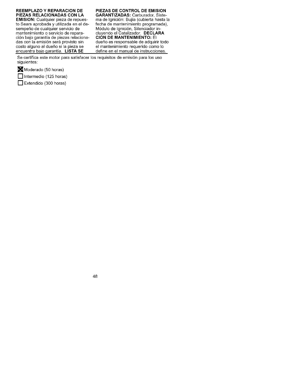 Se certifica este motor para satisfacer los requisitos de emisiSn para los uso