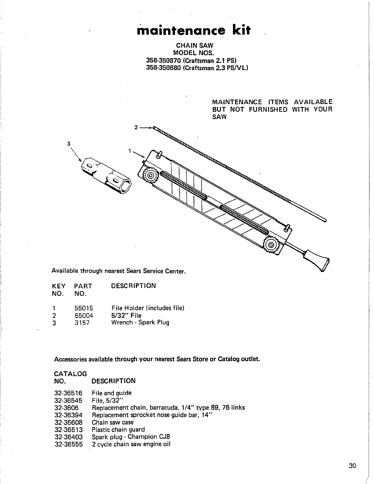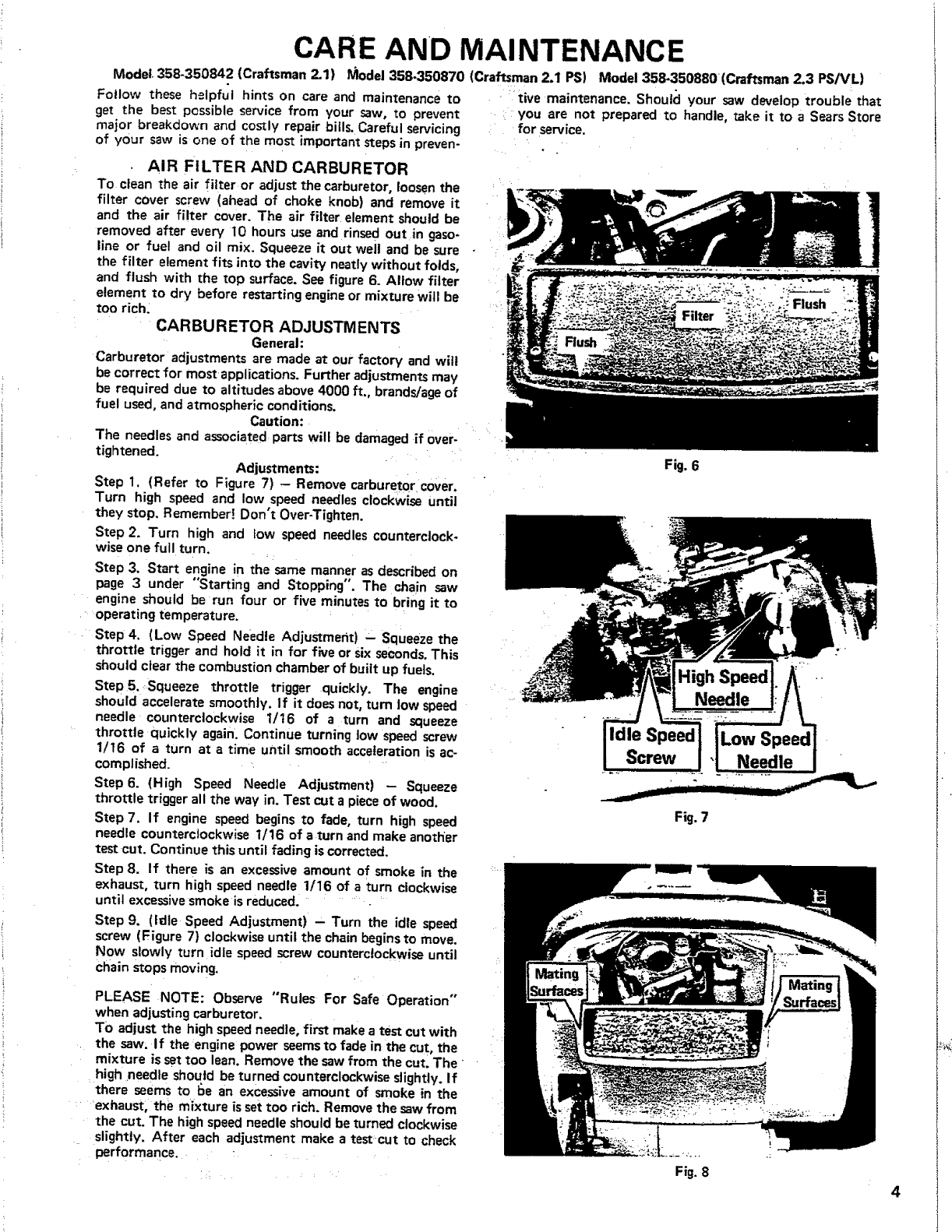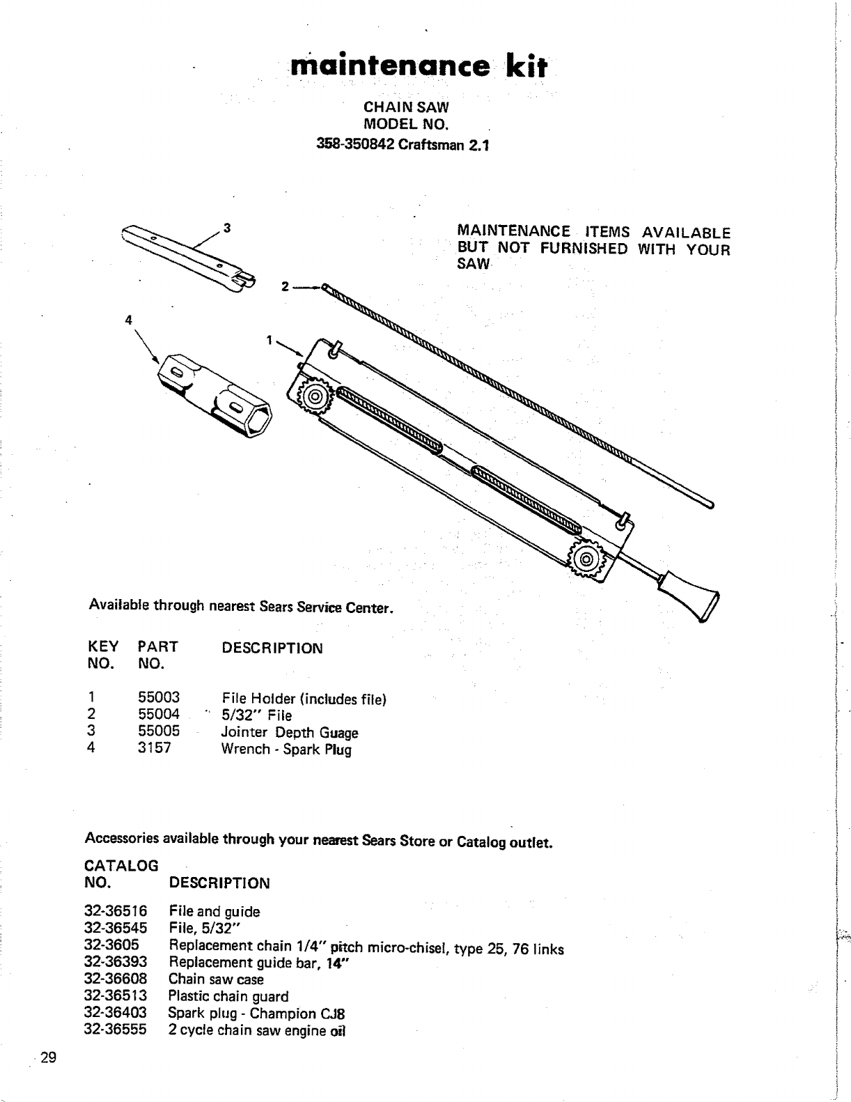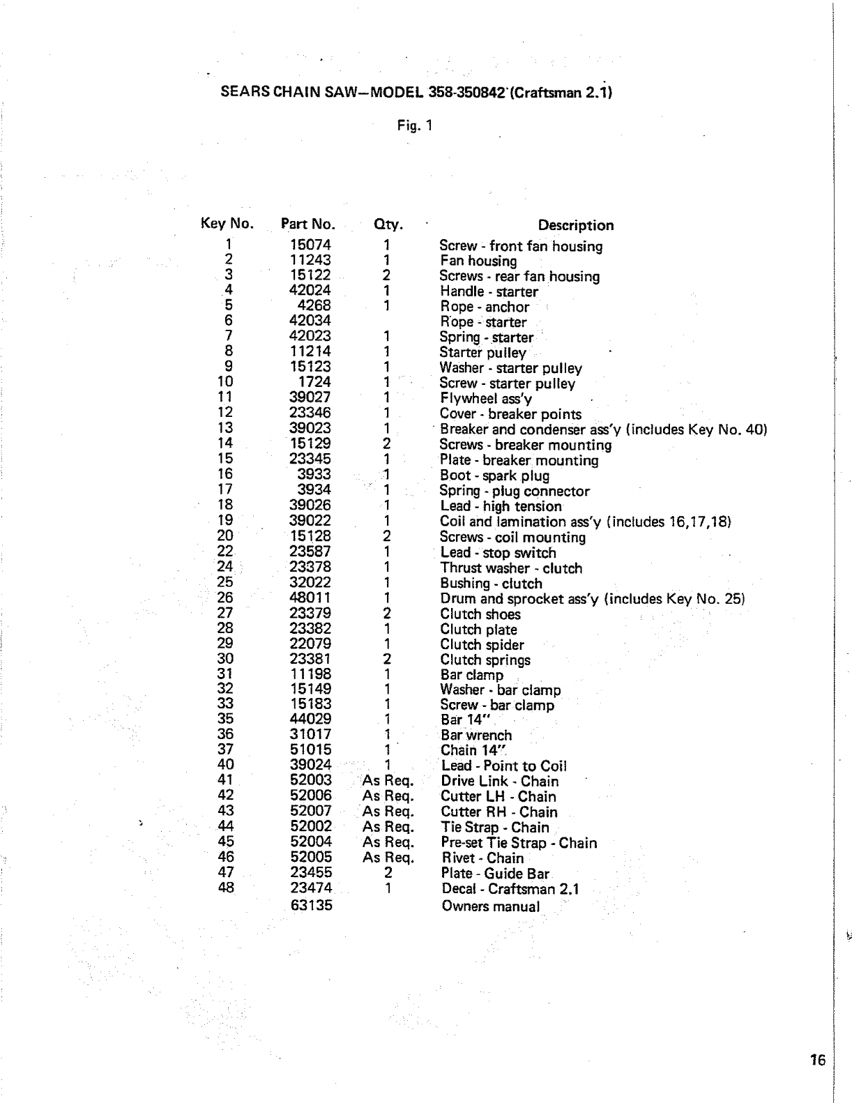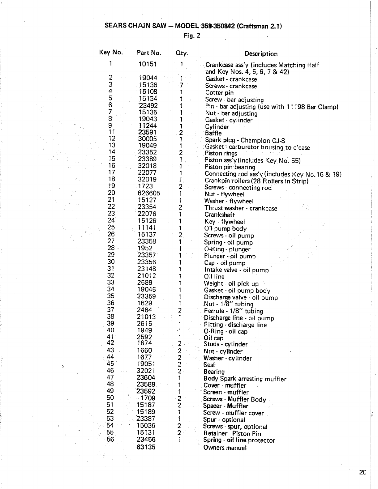 User Manual: Craftsman 358350842 358350842 CRAFTSMAN SEARS CHAIN SAWS - Manuals and Guides View the owners manual for your CRAFTSMAN SEARS CHAIN SAWS #358350842. Home:Lawn & Garden Parts:Craftsman Parts:Craftsman SEARS CHAIN SAWS Manual