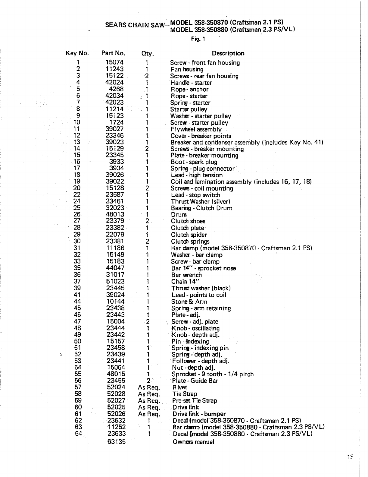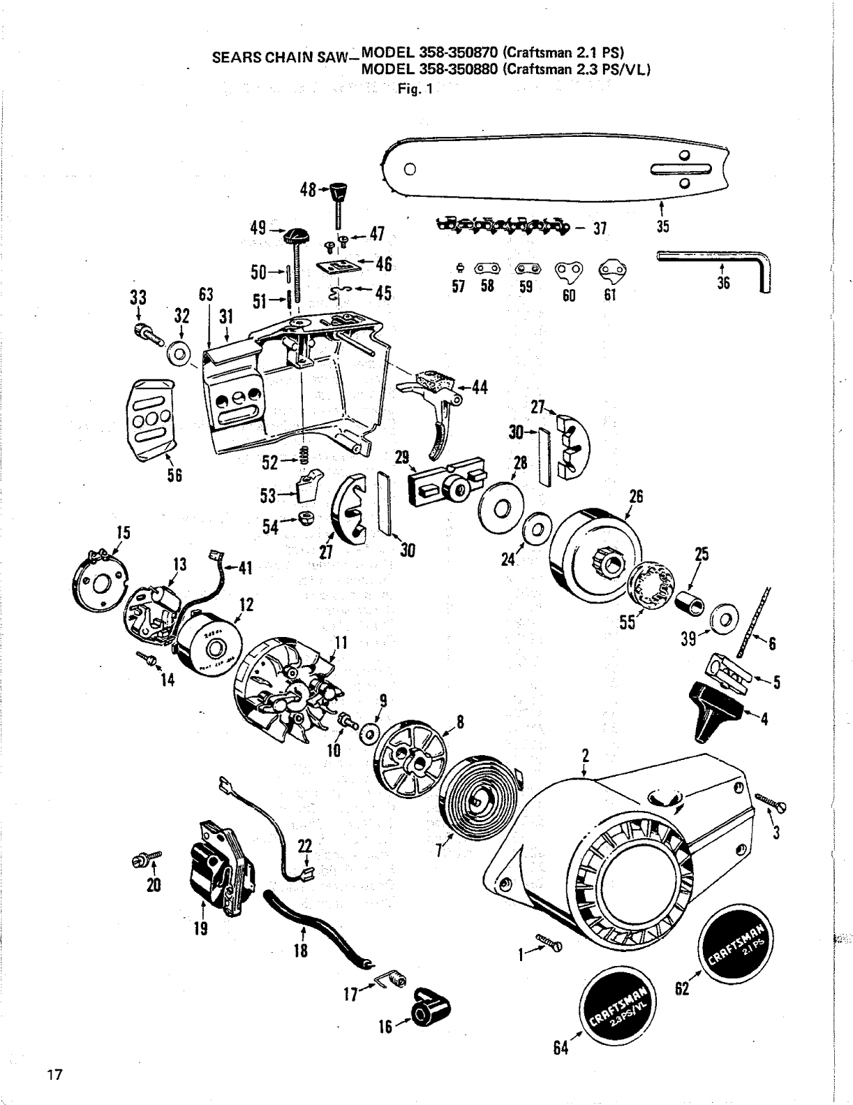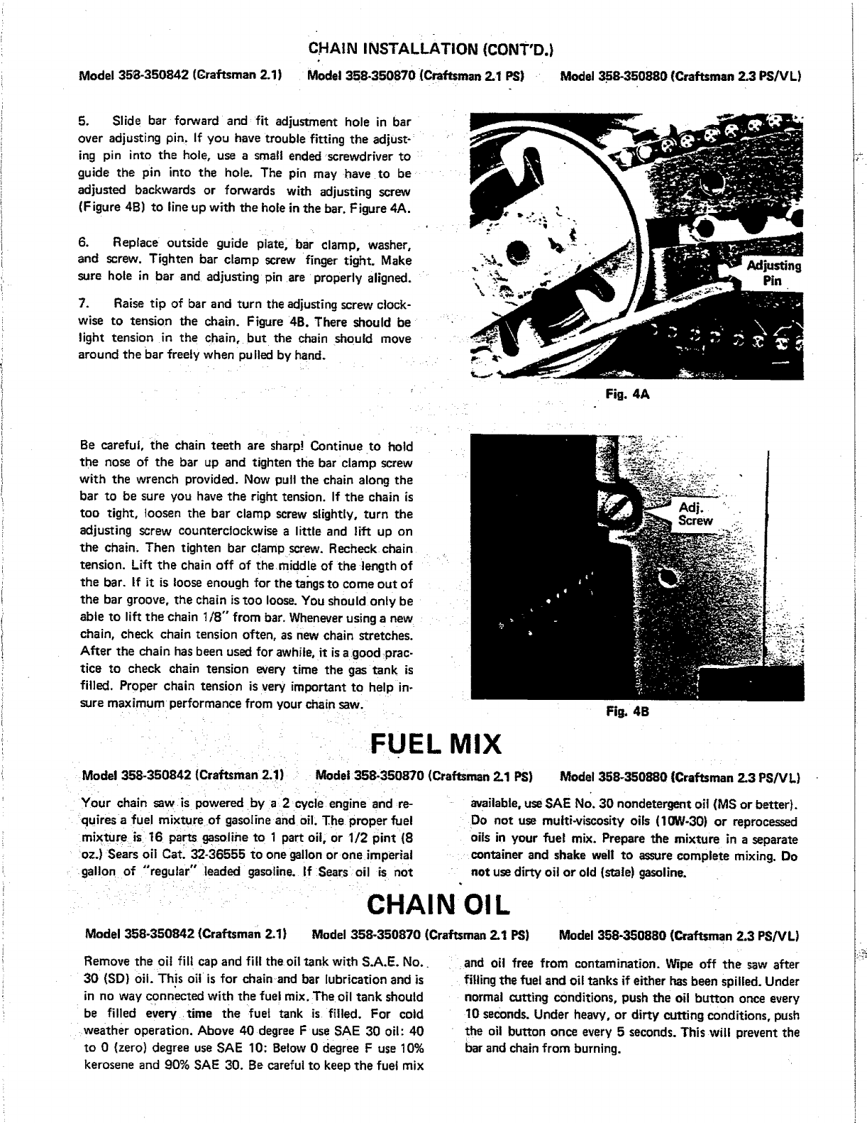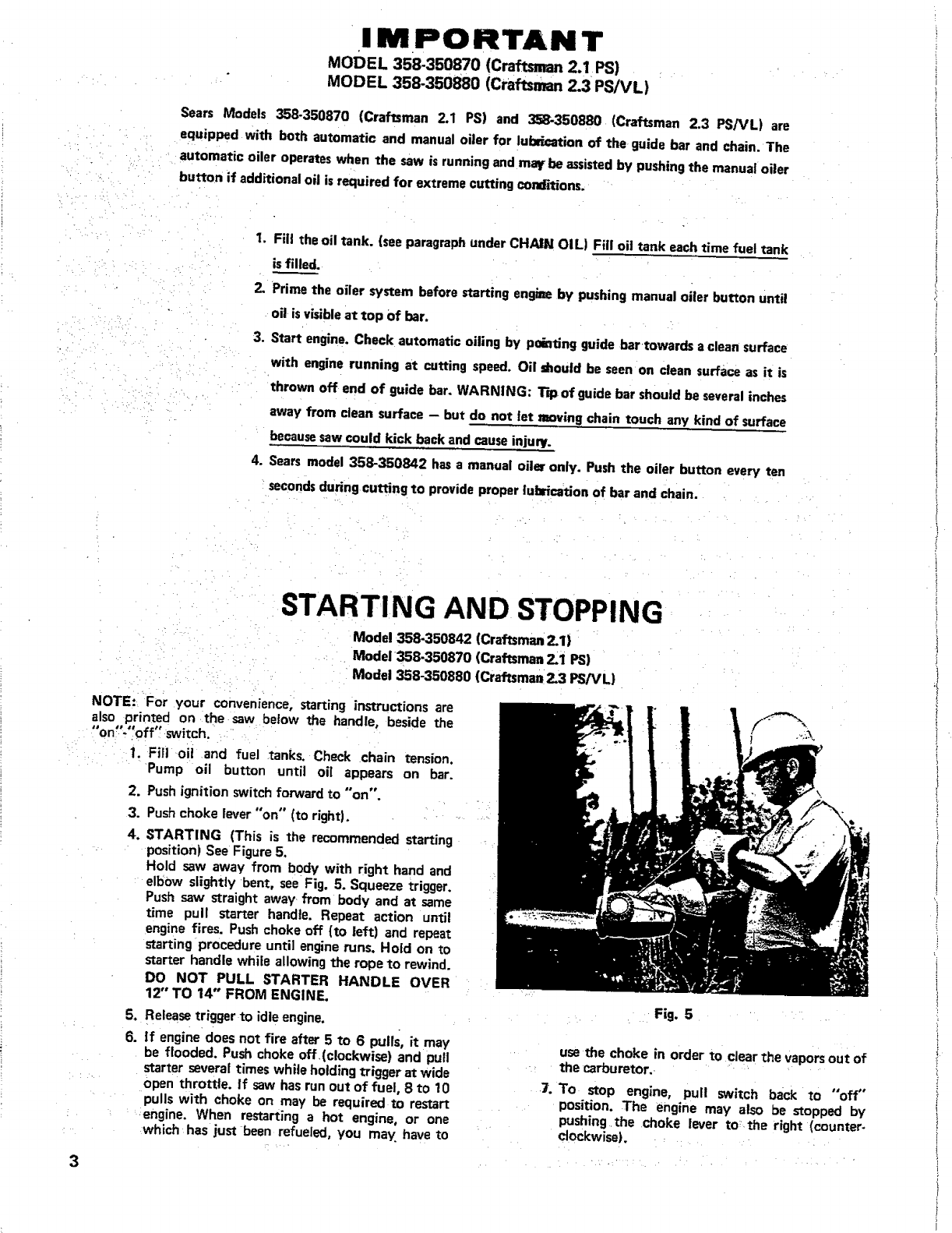 Craftsman 358350842 User Manual SEARS CHAIN SAWS Manuals And Guides L0809375