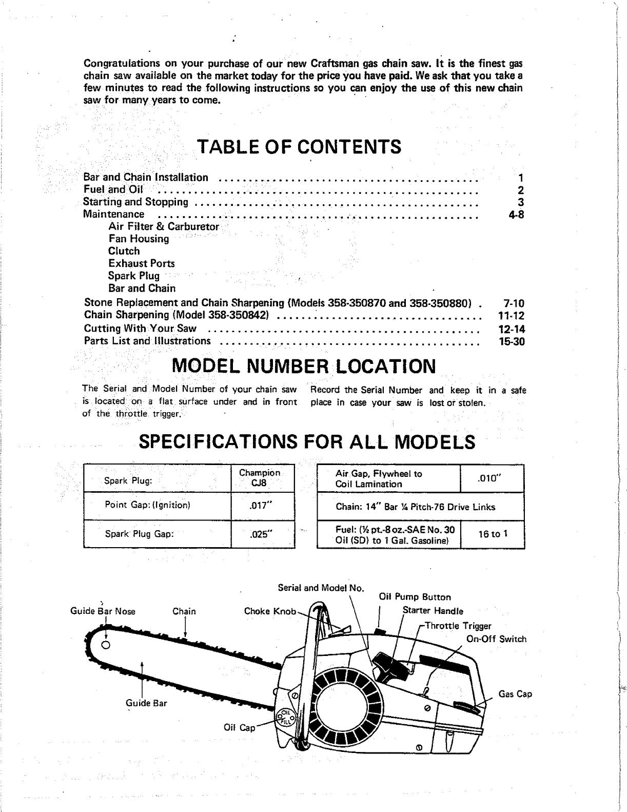Congratulations on your purchase of our new Craftsman gas chain saw. It is the finest gas