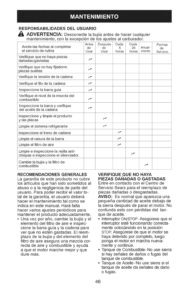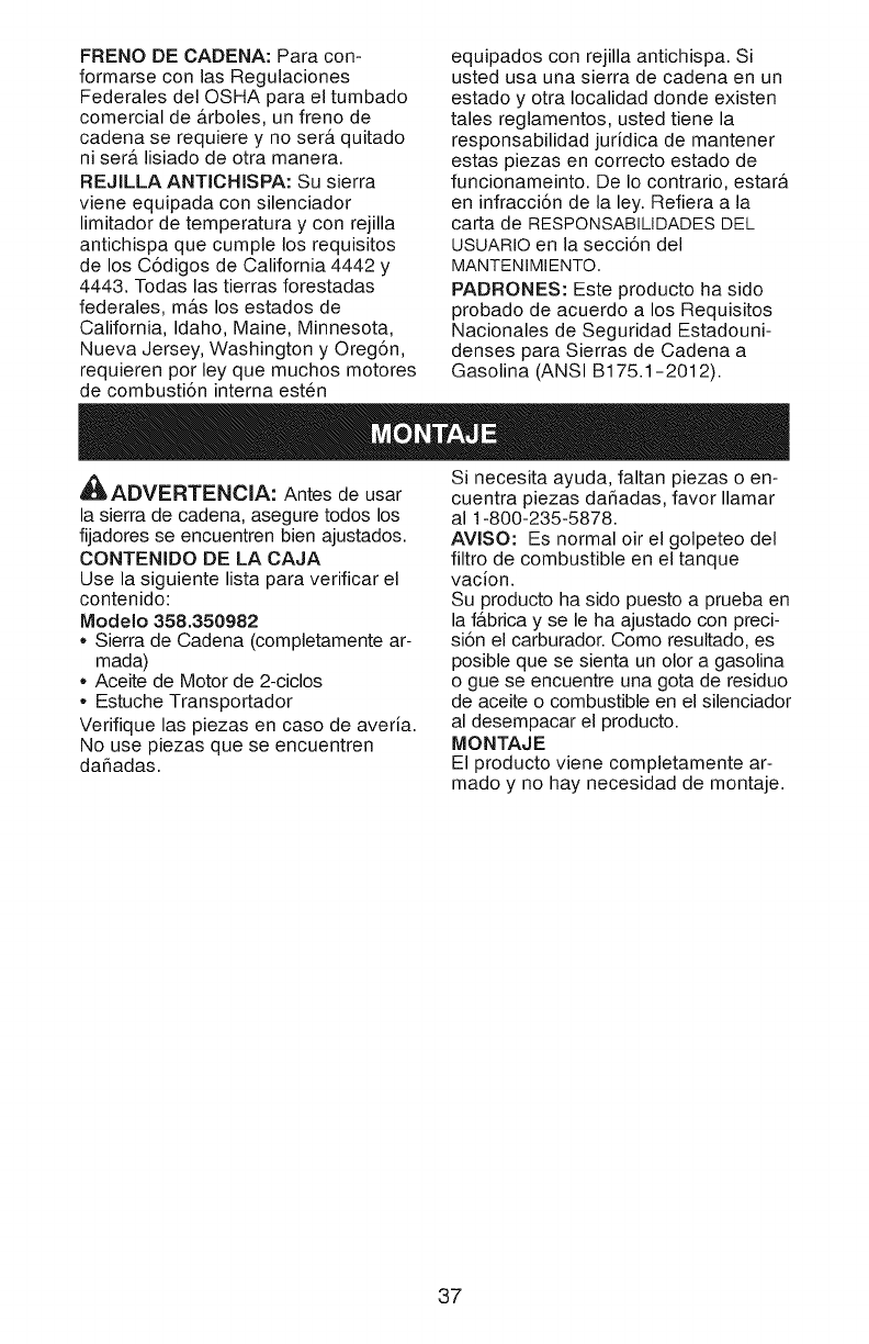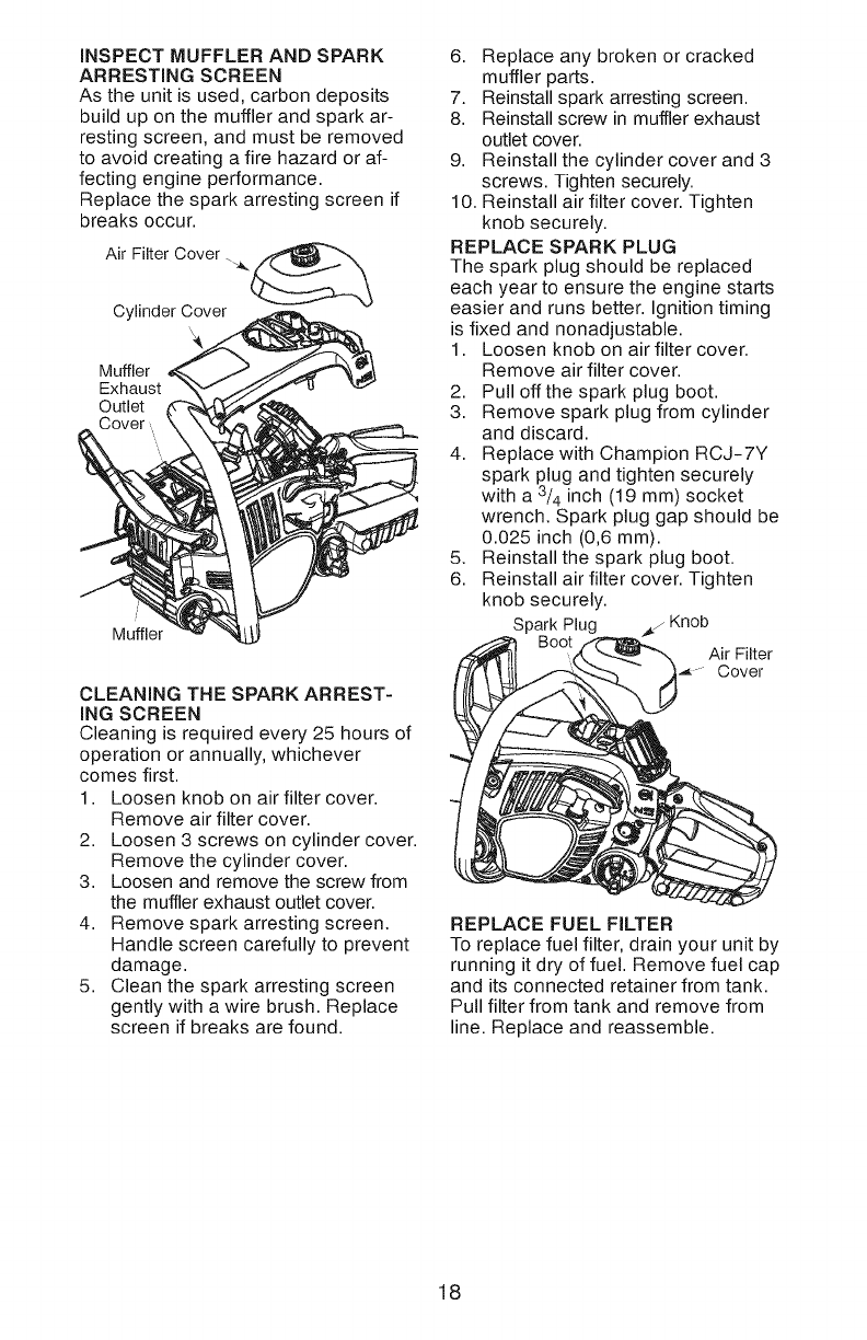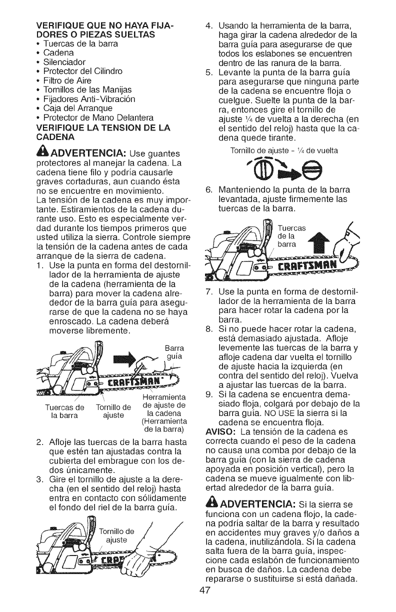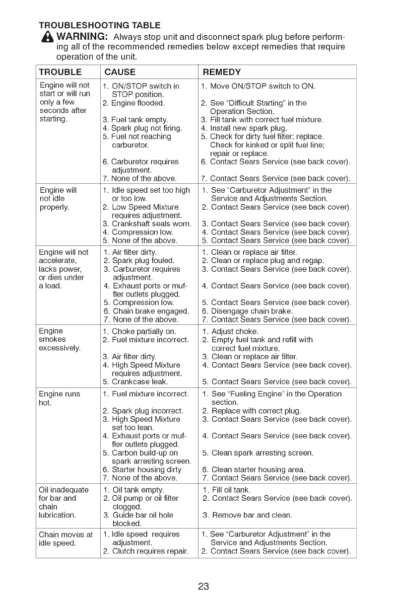 User Manual: Craftsman 358350982 358350982 CRAFTSMAN CHAIN SAW - Manuals and Guides View the owners manual for your CRAFTSMAN CHAIN SAW #358350982. Home:Lawn & Garden Parts:Craftsman Parts:Craftsman CHAIN SAW Manual