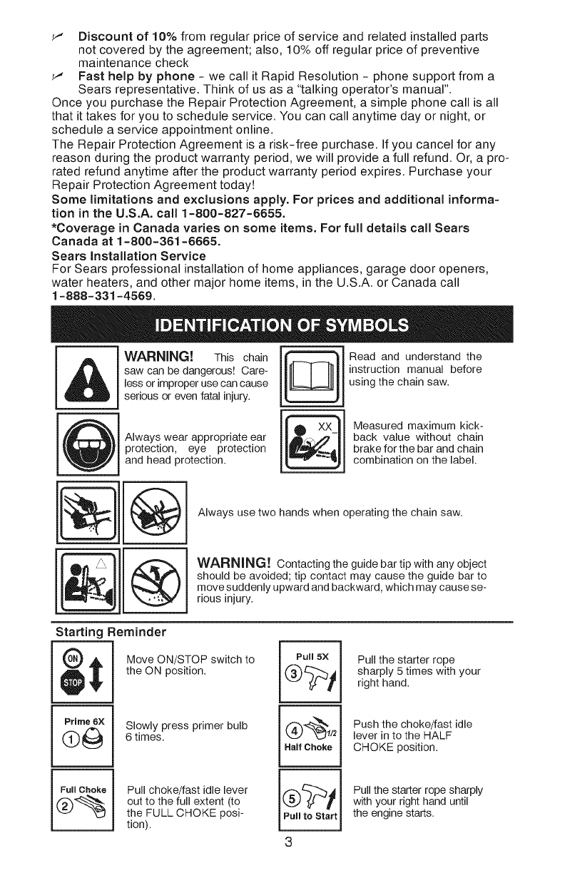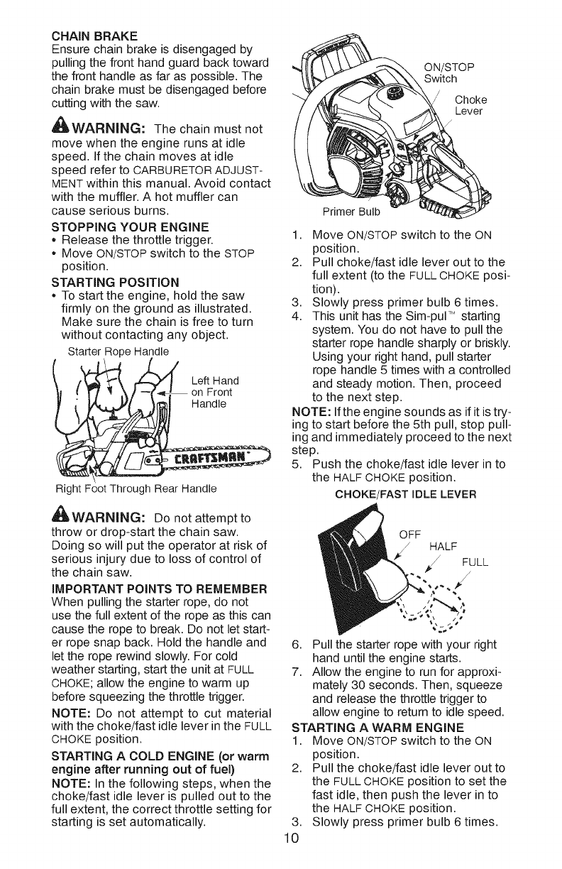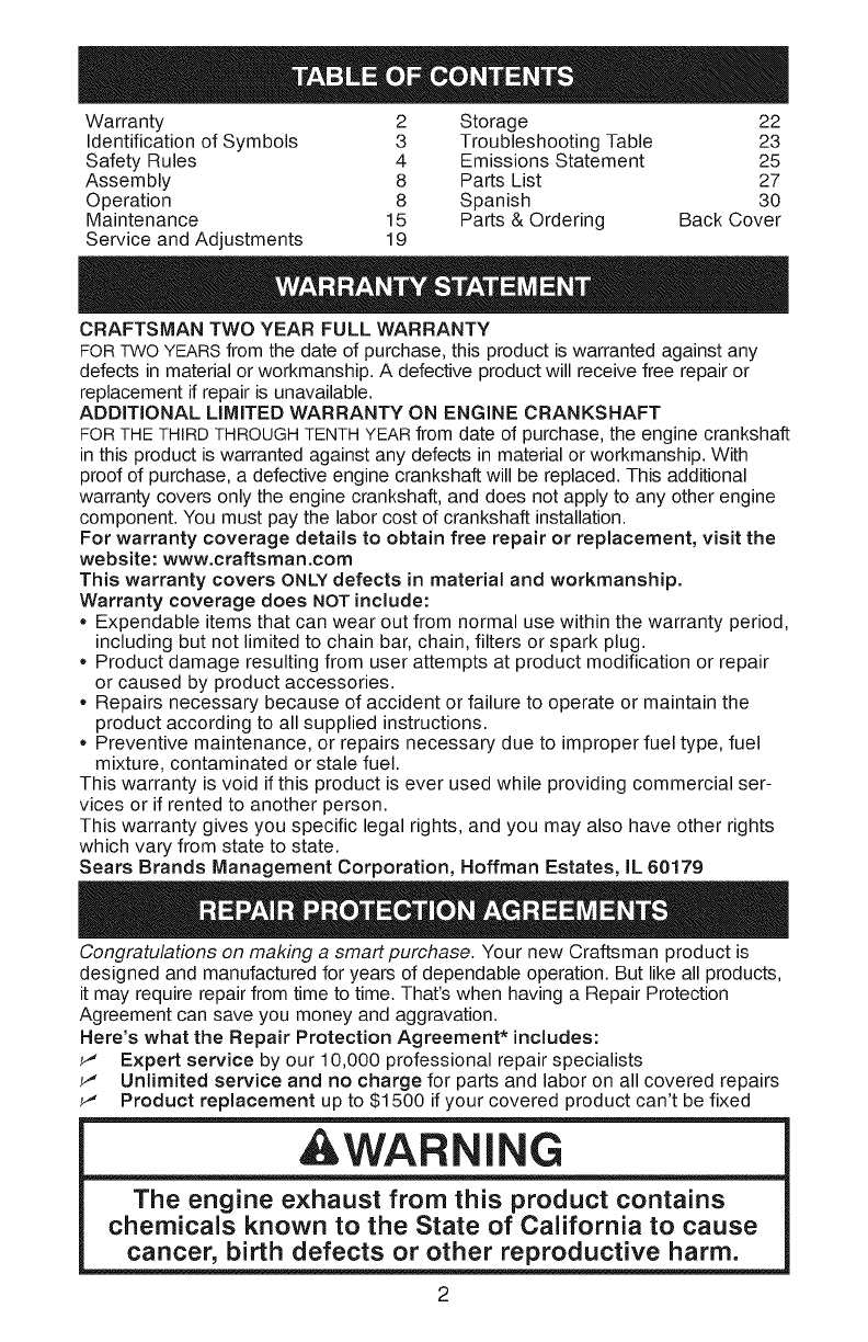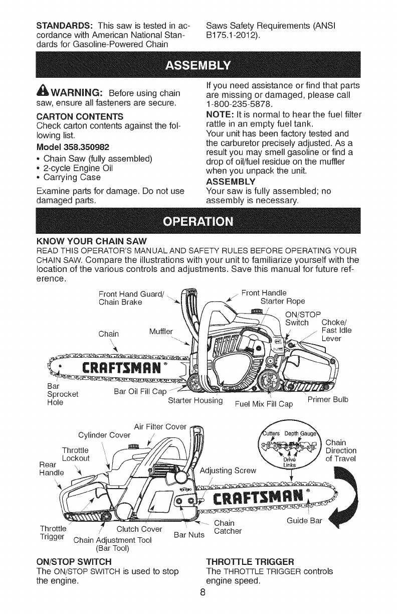 Craftsman 358350982 1606722L User Manual CHAIN SAW Manuals And Guides