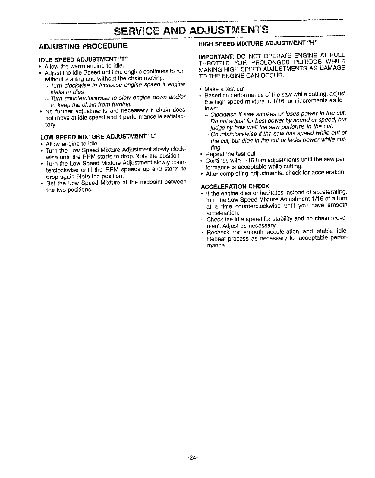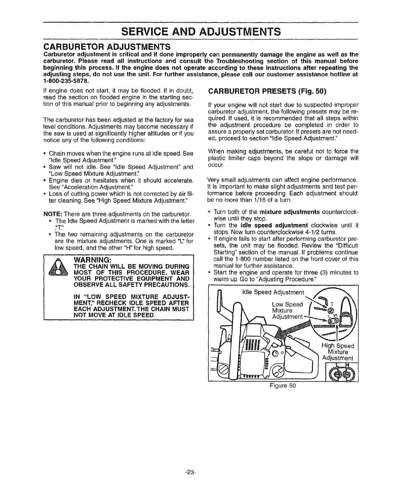 MAKING REPAIRS EXCEPT CARBURETOR ADJUSTMENTS.