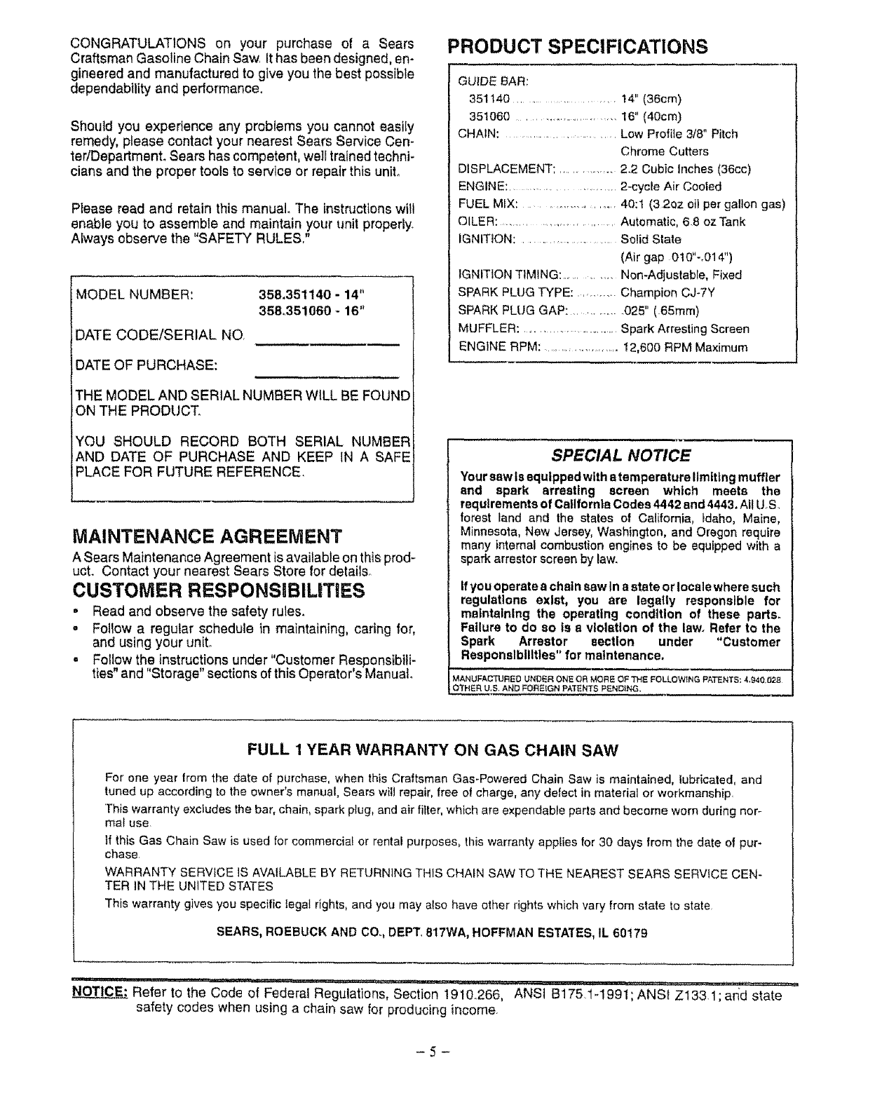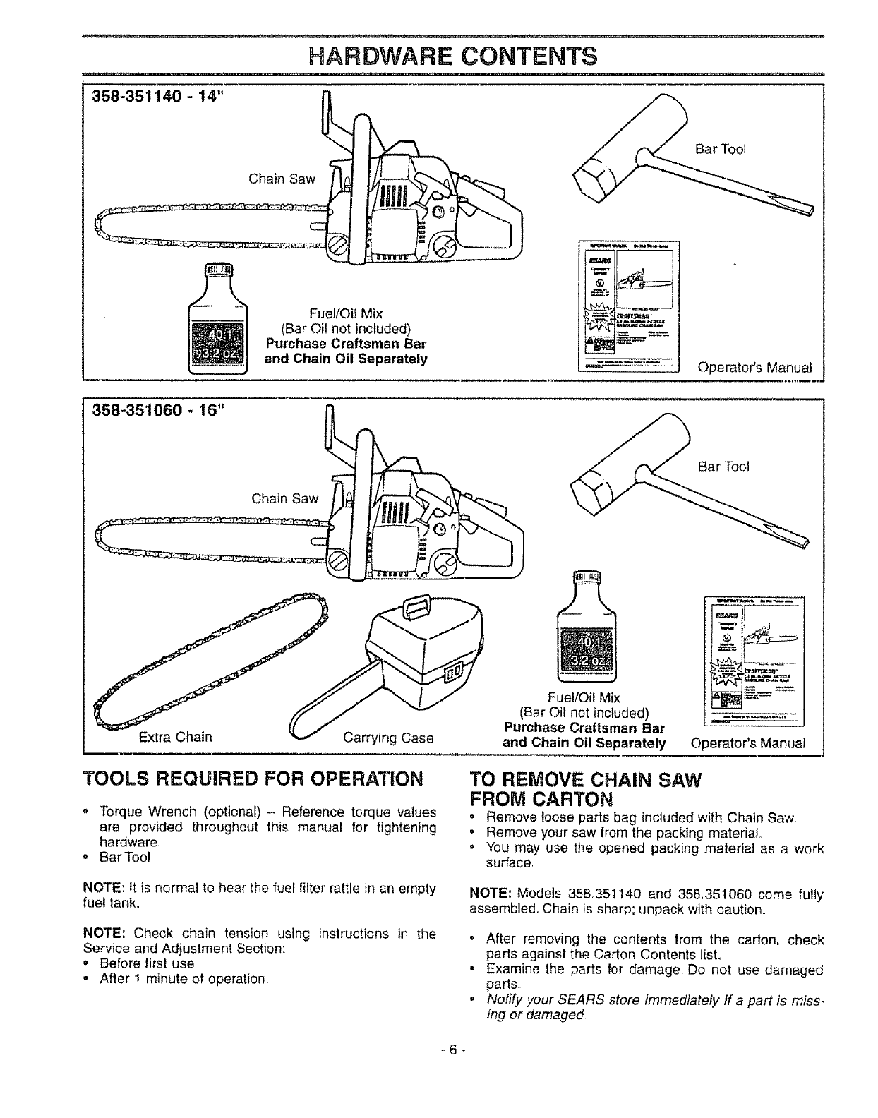 Craftsman 358351060 User Manual CHAIN SAW Manuals And Guides L0706371