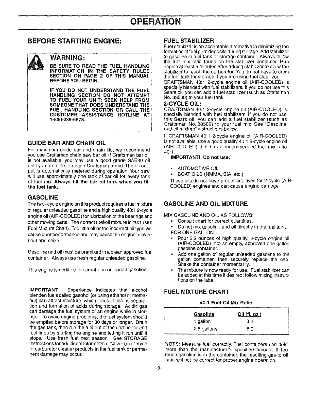 CRAFTSMAN Chainsaw, Gas Manual L0706371 CRAFTSMAN Chainsaw, Gas Owner's Manual, CRAFTSMAN Chainsaw, Gas installation guides