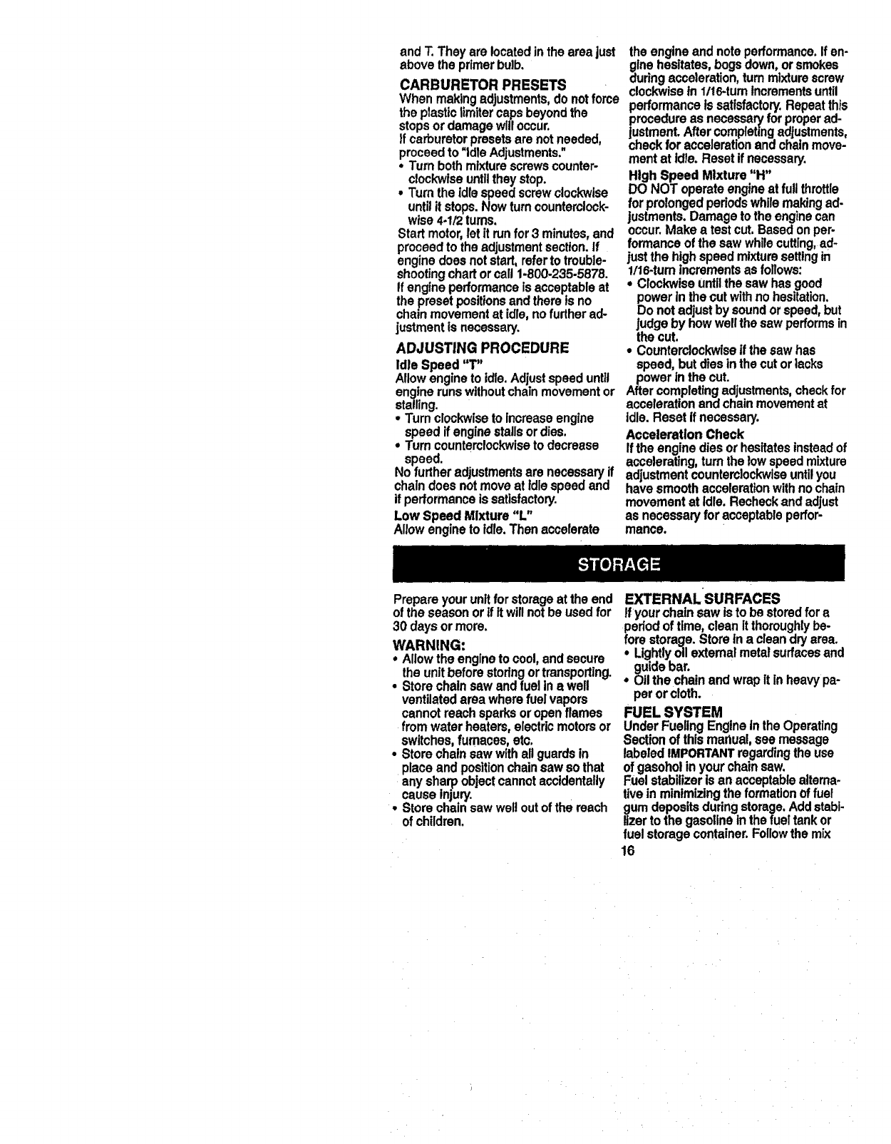 • See"CarburetorAdjustments."