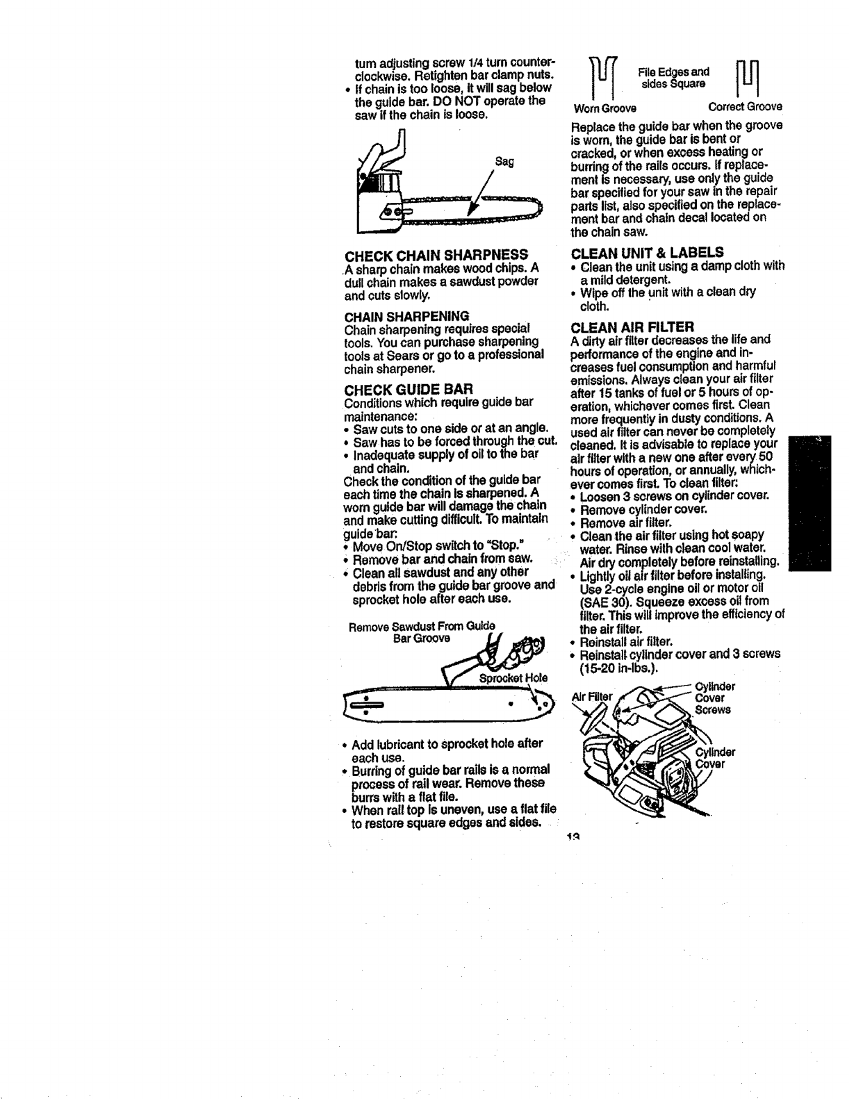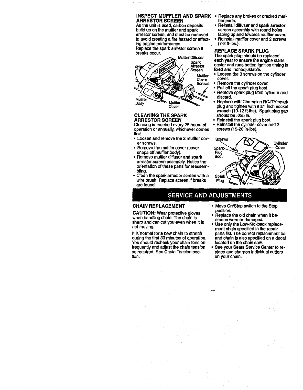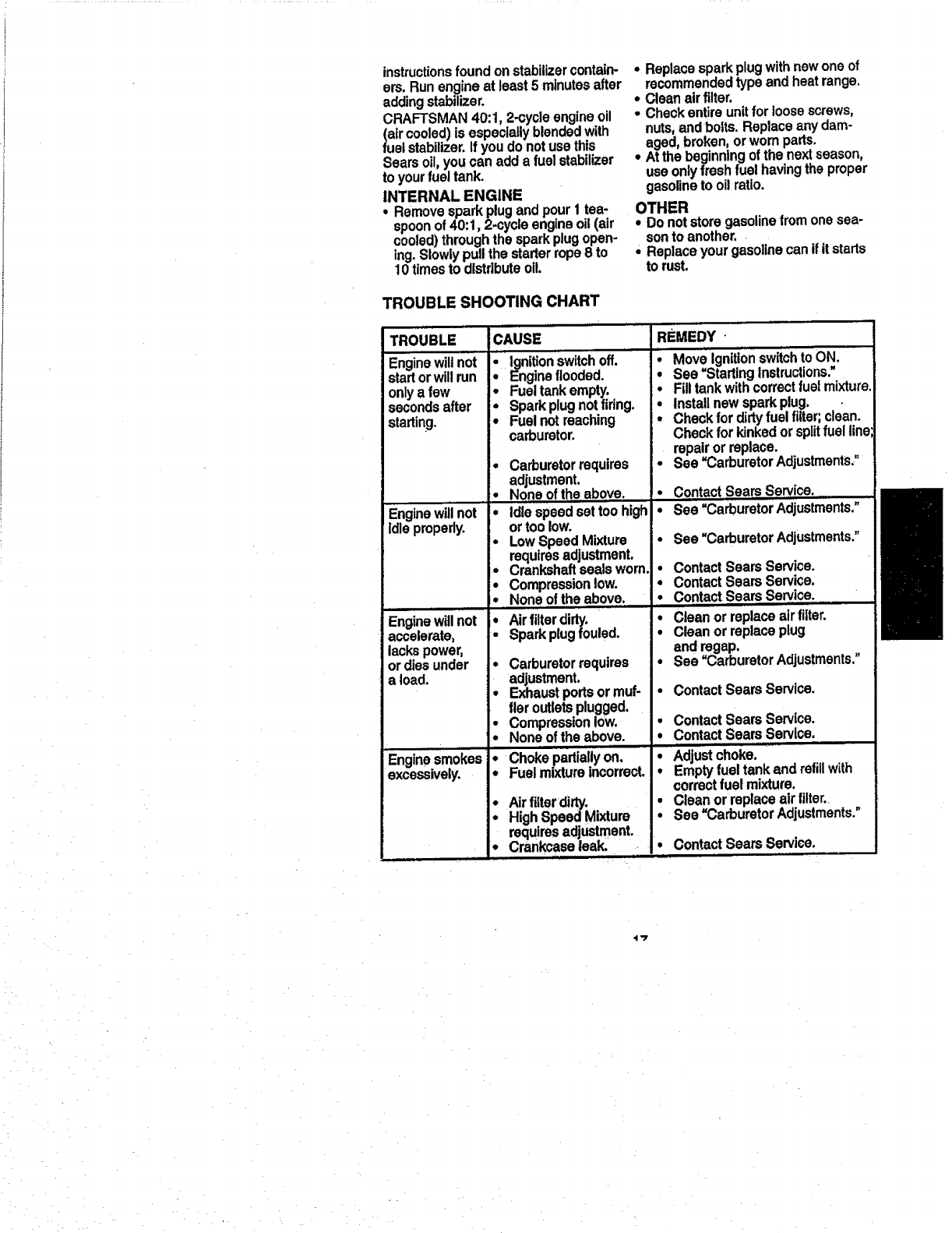 maintained,lubricatedandtuned-upaccordingto the owners manual,Sears will
