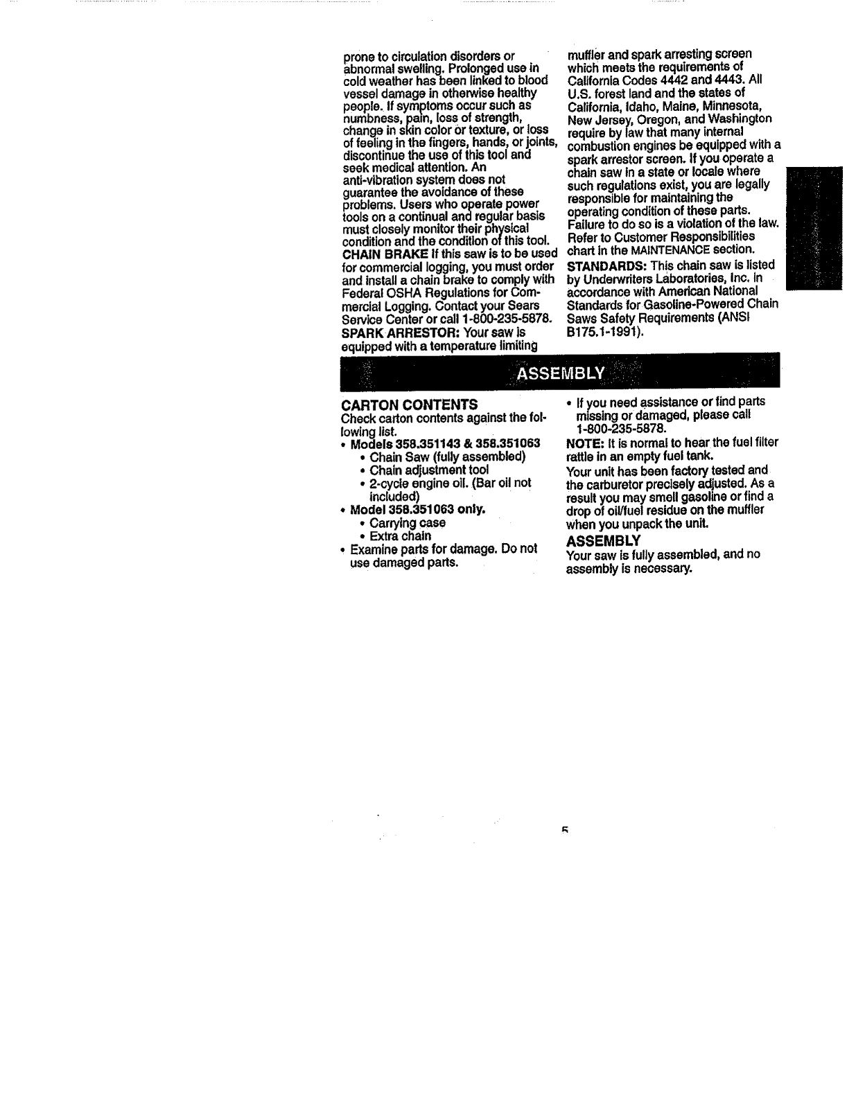 Craftsman 358351063 User Manual CHAIN SAW Manuals And Guides L0809024