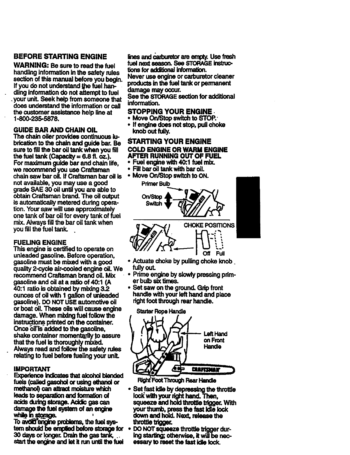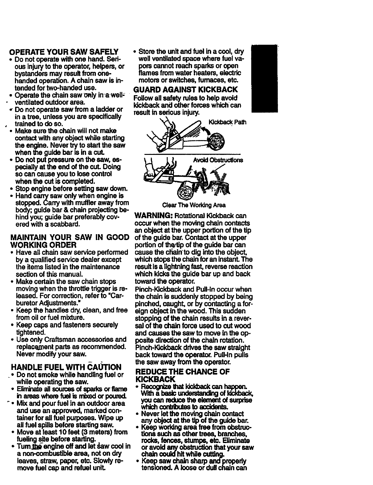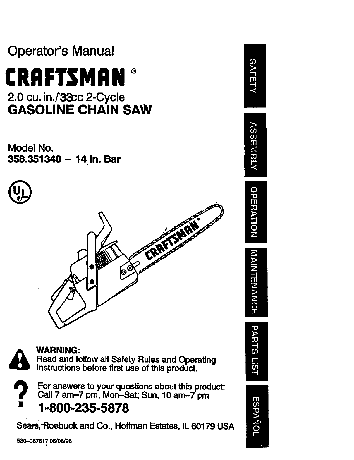 Craftsman 358351340 User Manual GAS CHAINSAW Manuals And Guides 98110059