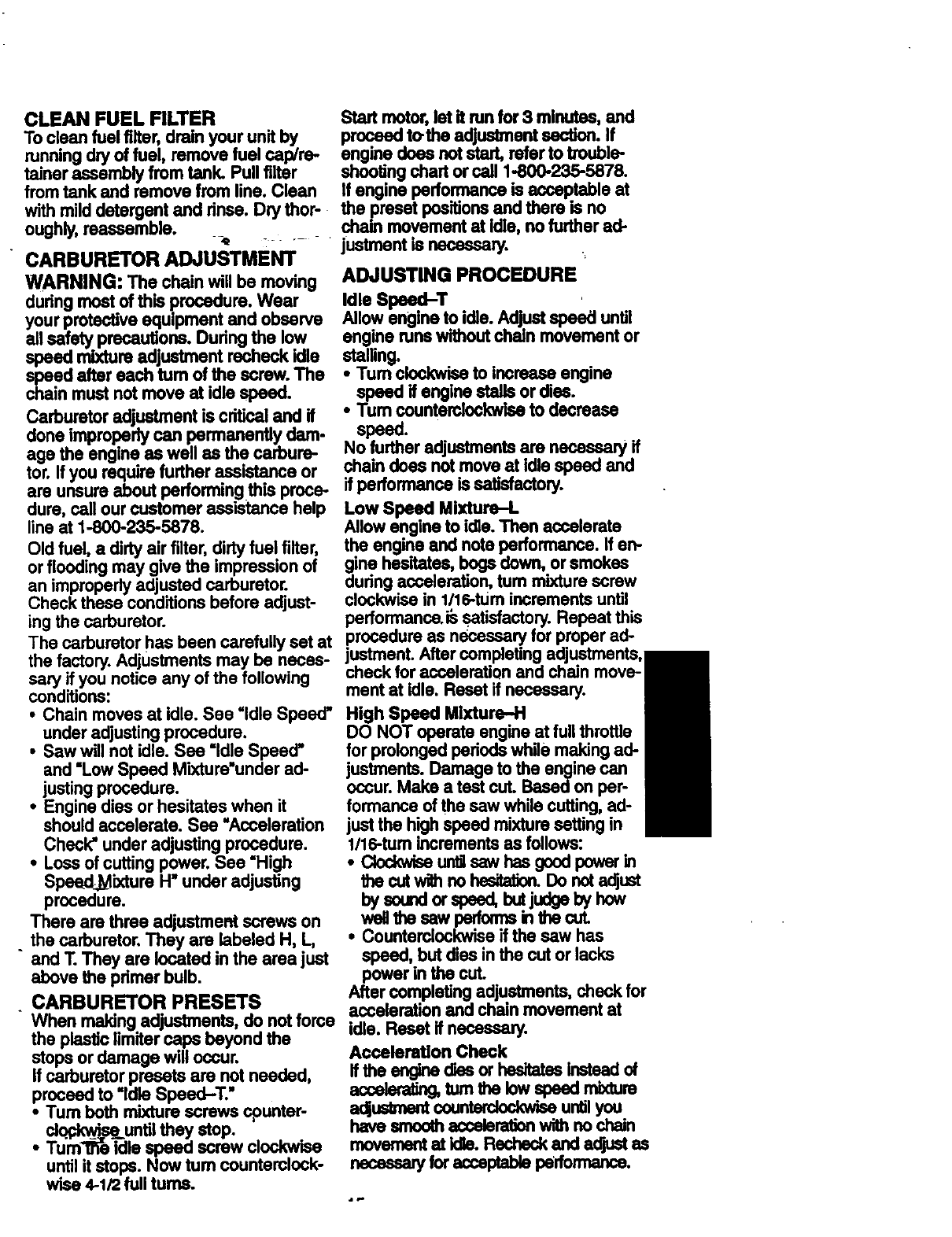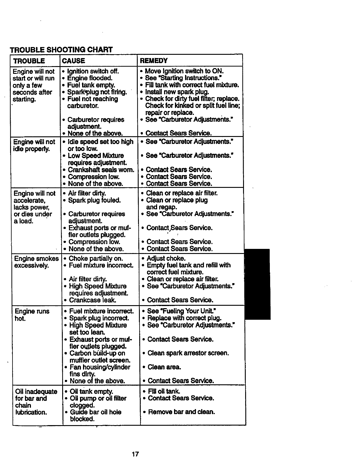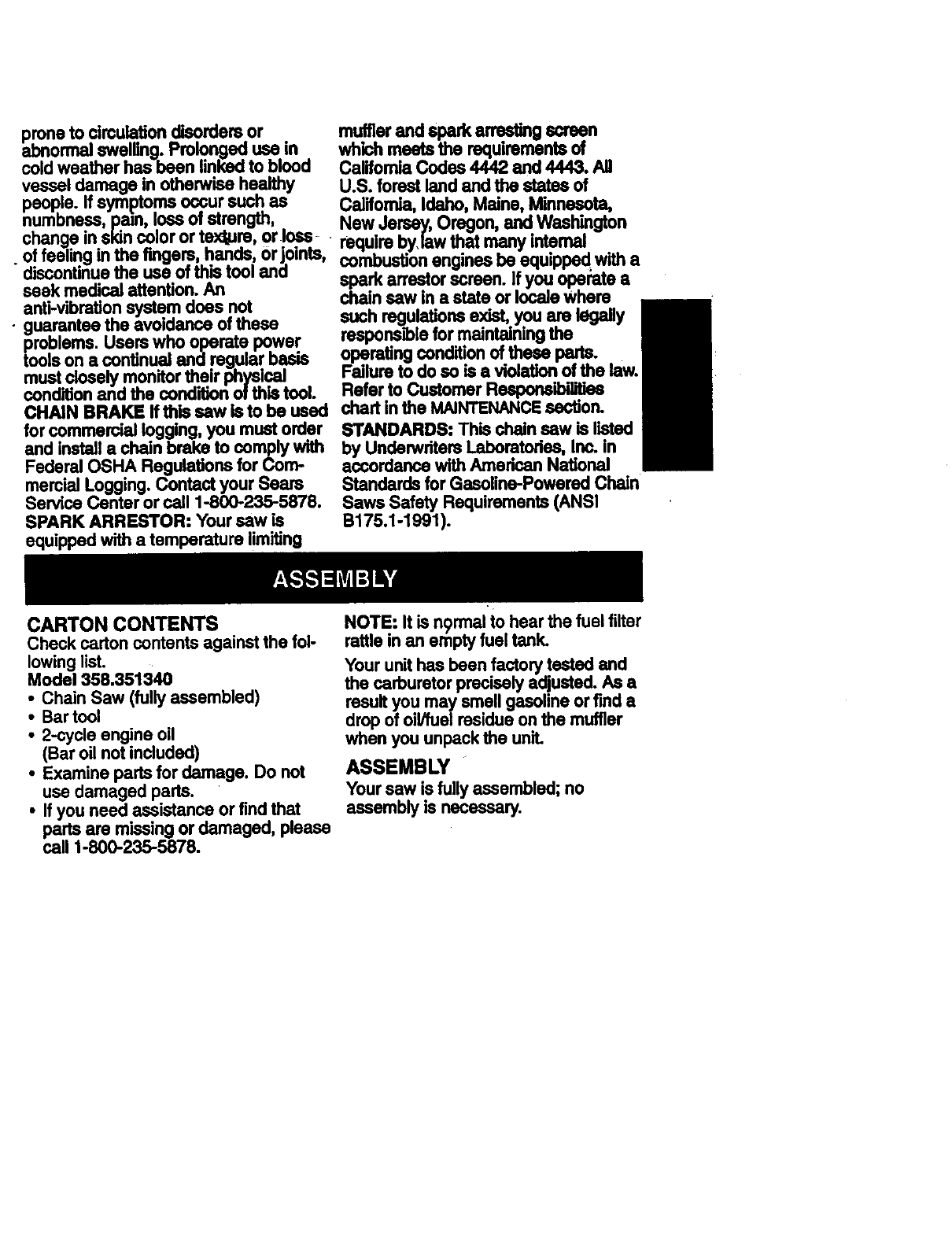 Craftsman 358351340 User Manual GAS CHAINSAW Manuals And Guides 98110059