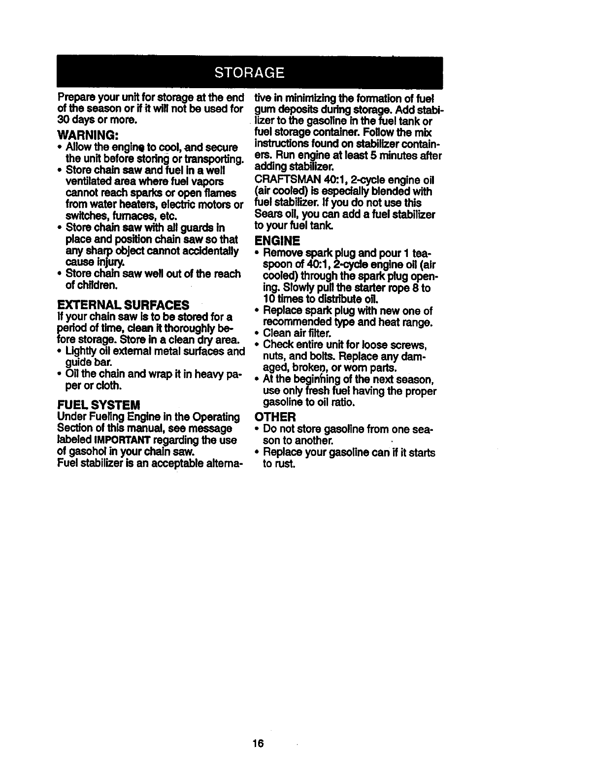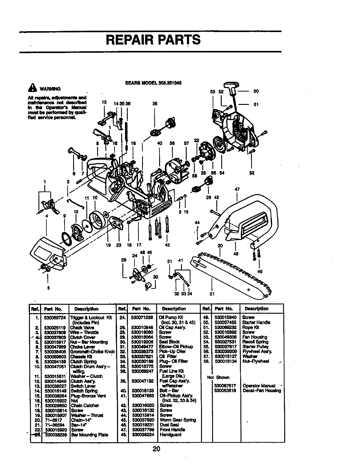 User Manual: Craftsman 358351340 358351340 CRAFTSMAN GAS CHAINSAW - Manuals and Guides View the owners manual for your CRAFTSMAN GAS CHAINSAW #358351340. Home:Lawn & Garden Parts:Craftsman Parts:Craftsman GAS CHAINSAW Manual