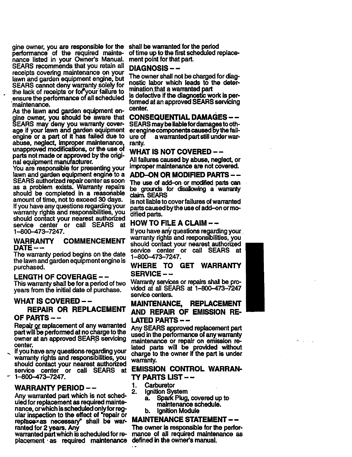 mamteined, I,ul_.dcatedlanditur_dup accoro_,ng to the owner's manual, Sears will
