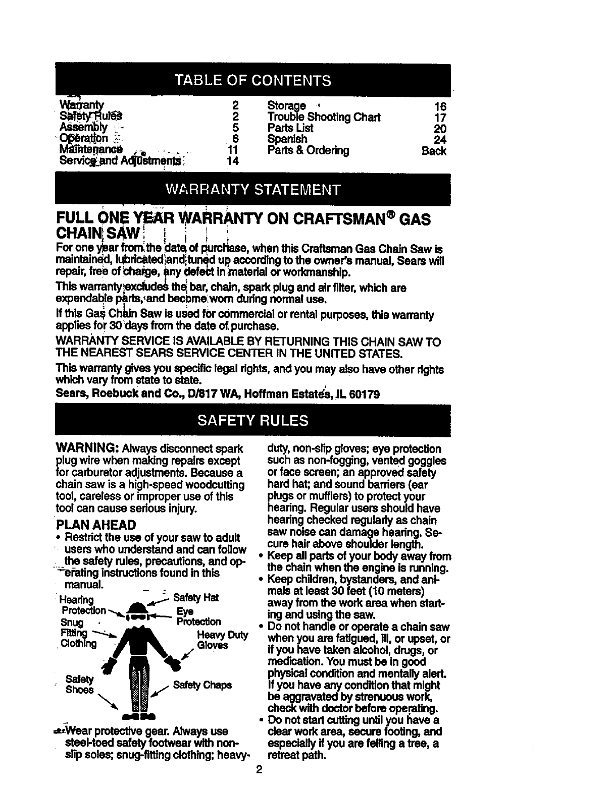CRAFTSMAN Chainsaw, Gas Manual 98110059 CRAFTSMAN Chainsaw, Gas Owner's Manual, CRAFTSMAN Chainsaw, Gas installation guides