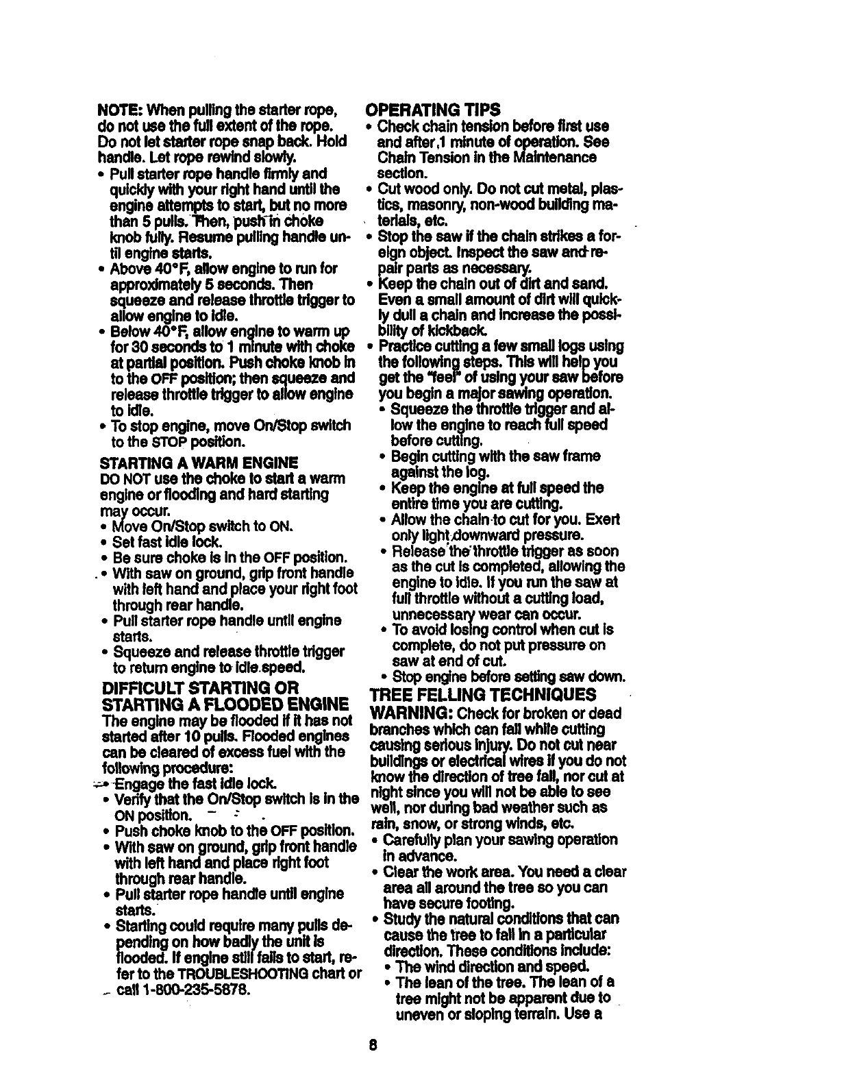 •Do not handle or operate a chain saw