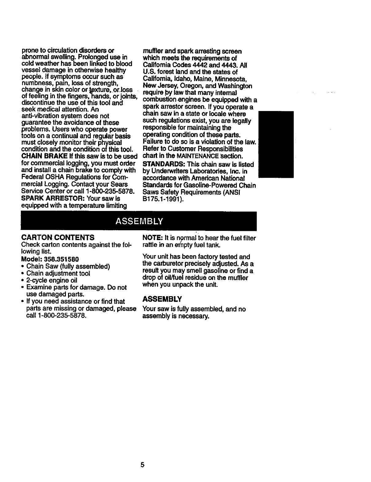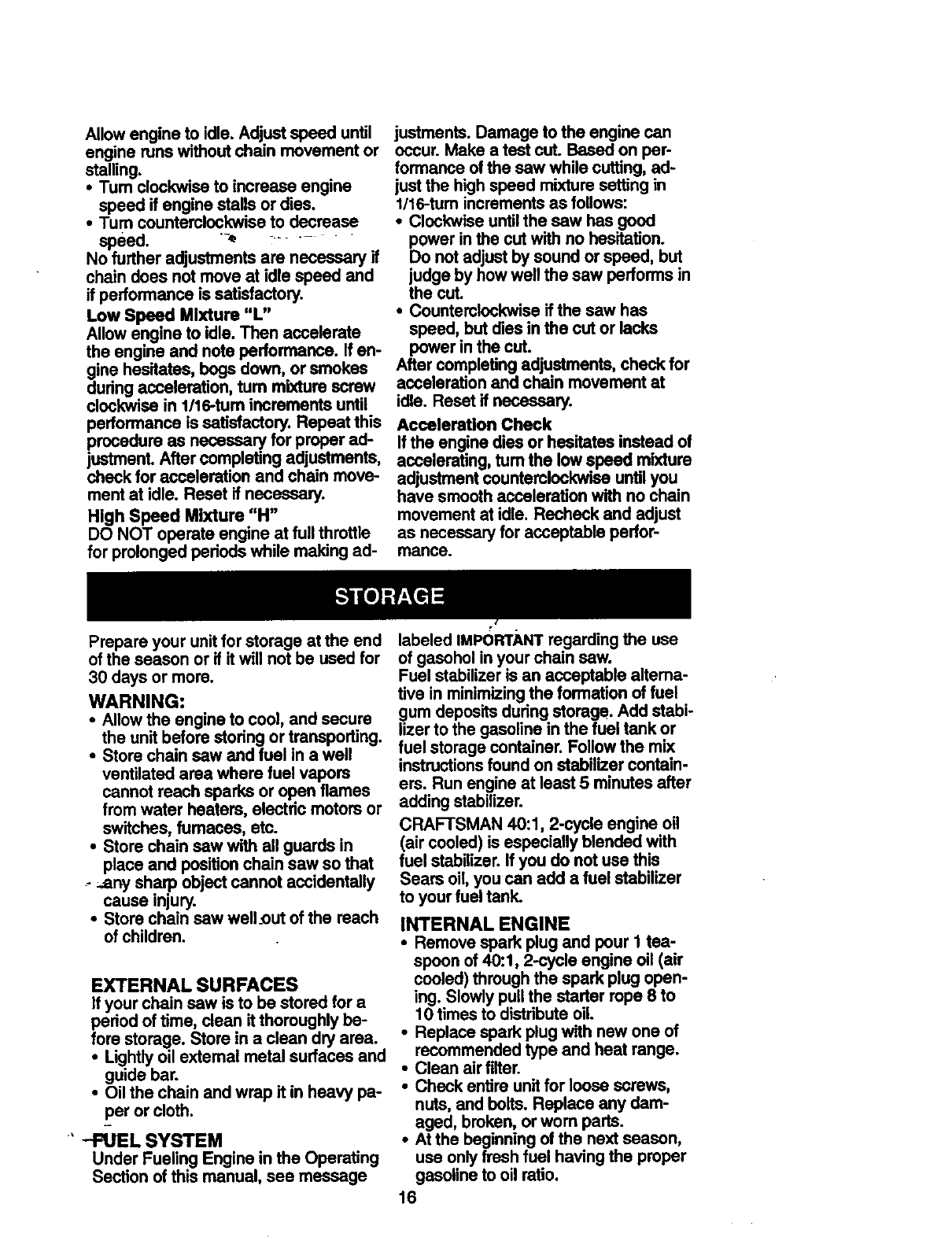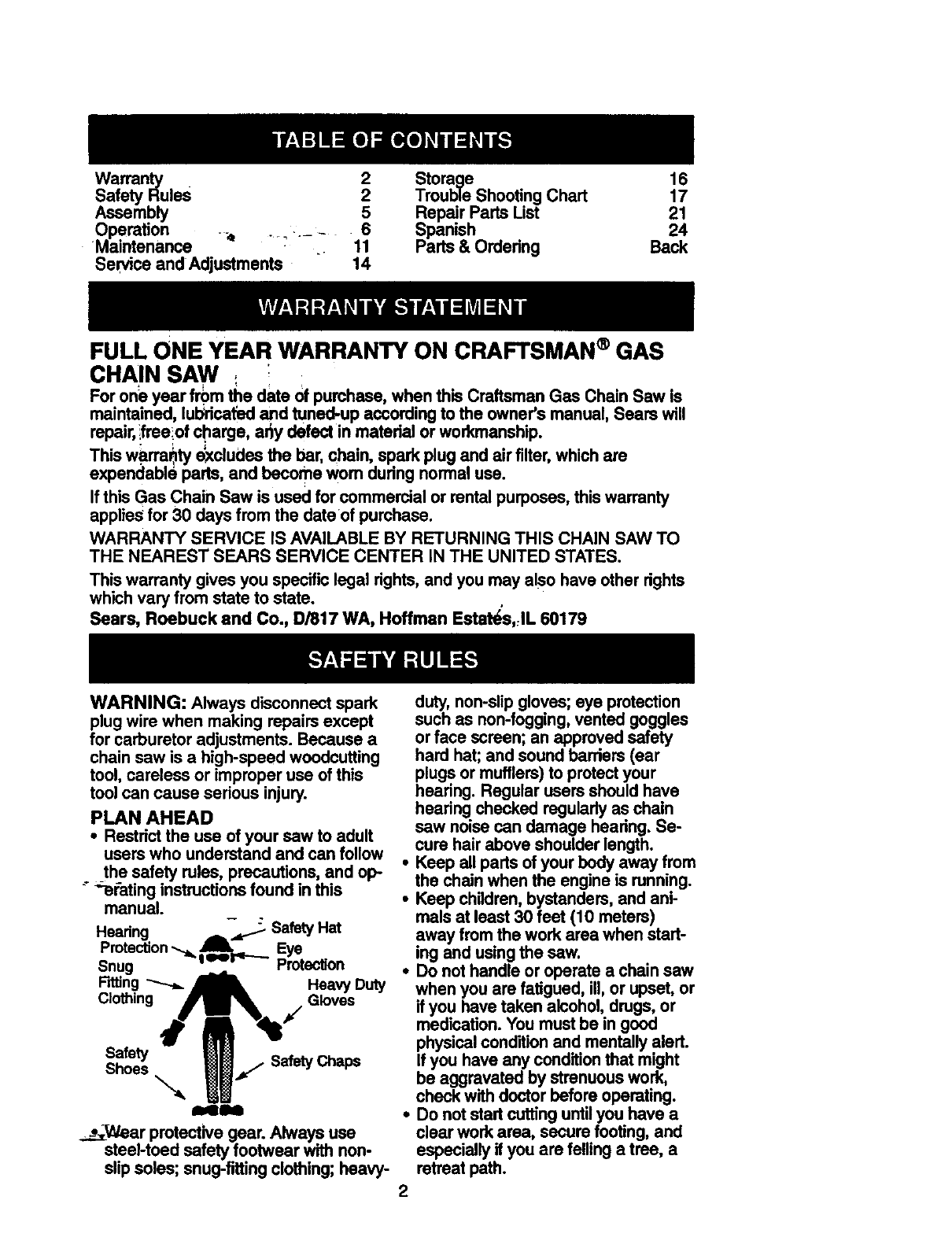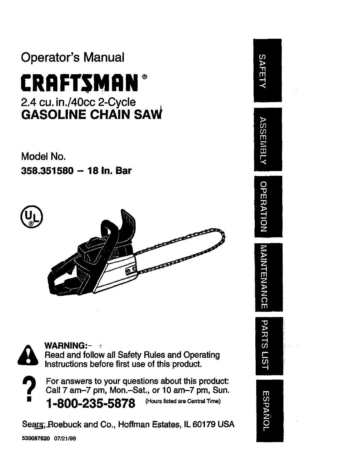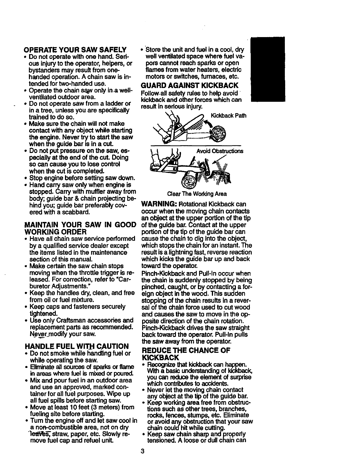 Craftsman 358351580 User Manual GAS CHAINSAW Manuals And Guides 98110063