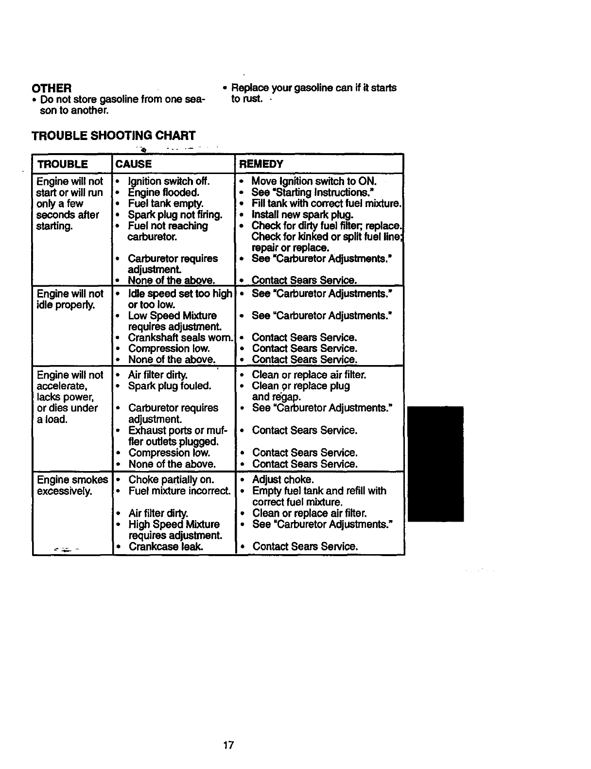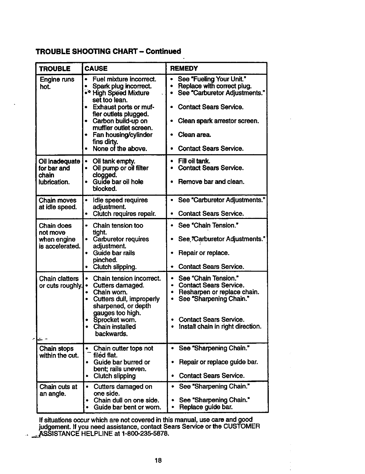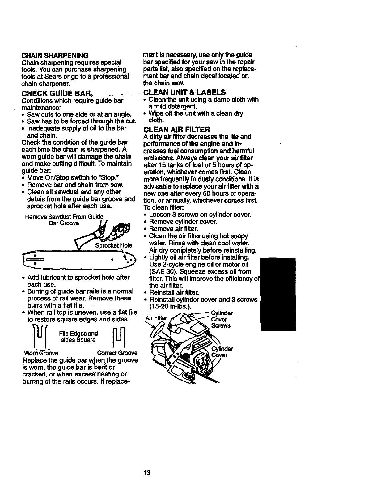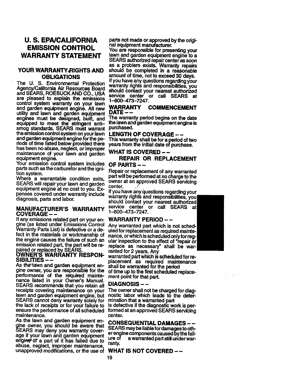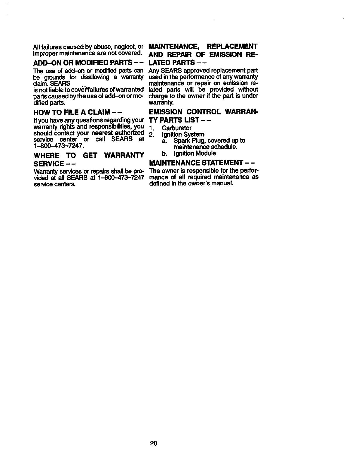 maintained, lubdcated and tuned-up accordingto the owner's manual, Sears will