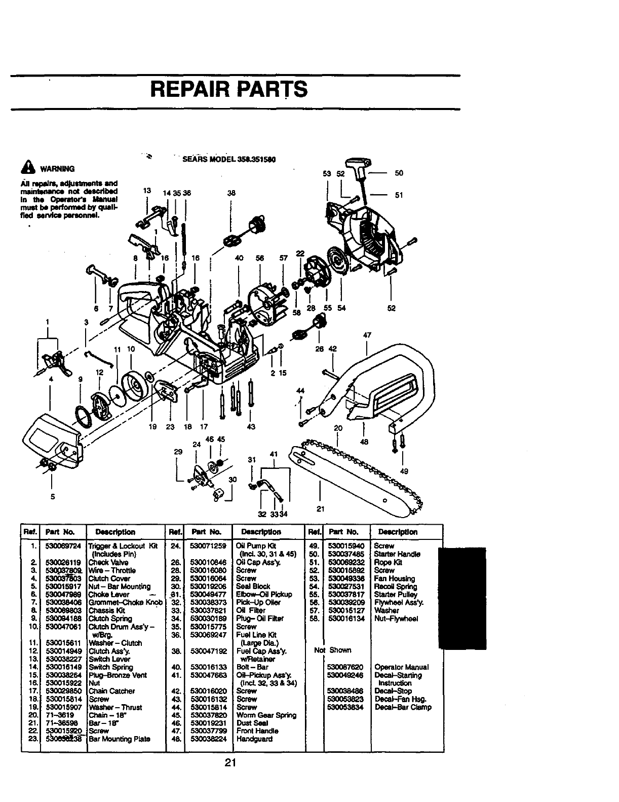 User Manual: Craftsman 358351580 358351580 CRAFTSMAN GAS CHAINSAW - Manuals and Guides View the owners manual for your CRAFTSMAN GAS CHAINSAW #358351580. Home:Lawn & Garden Parts:Craftsman Parts:Craftsman GAS CHAINSAW Manual
