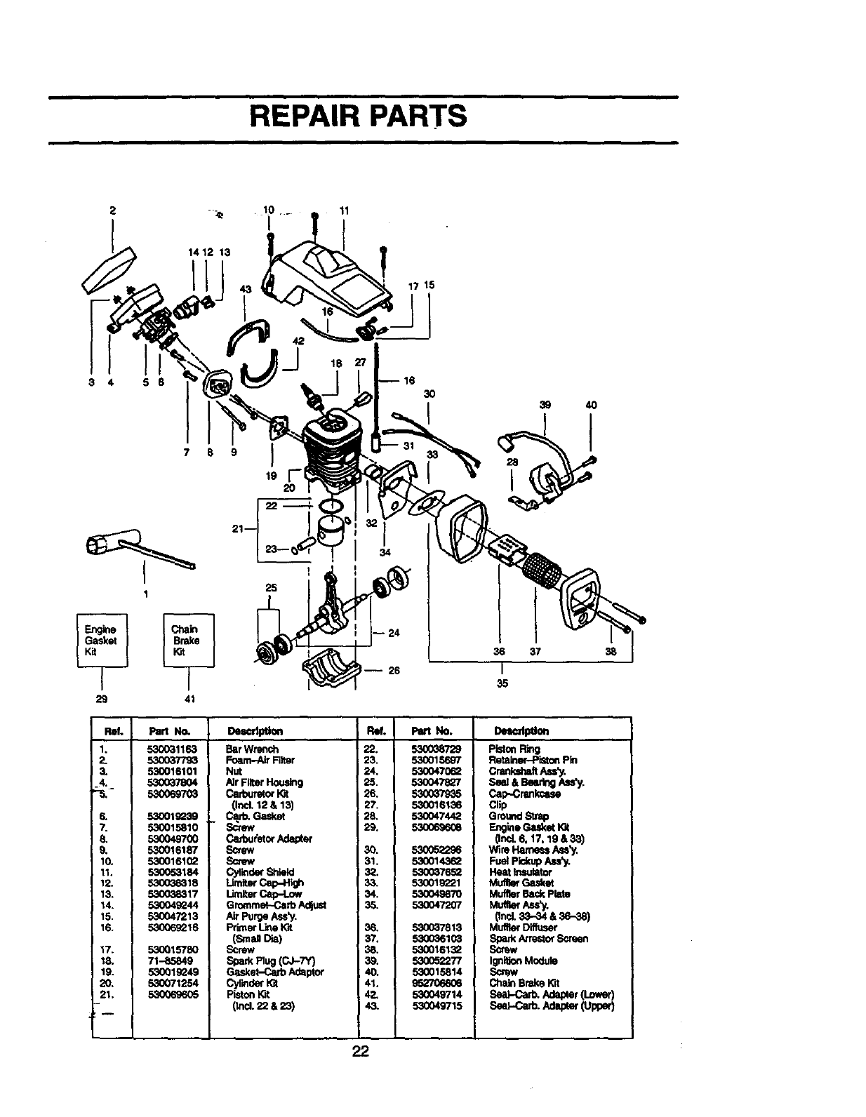 This warranty dxcludes the bar, chain, spark plug and air filter,which are