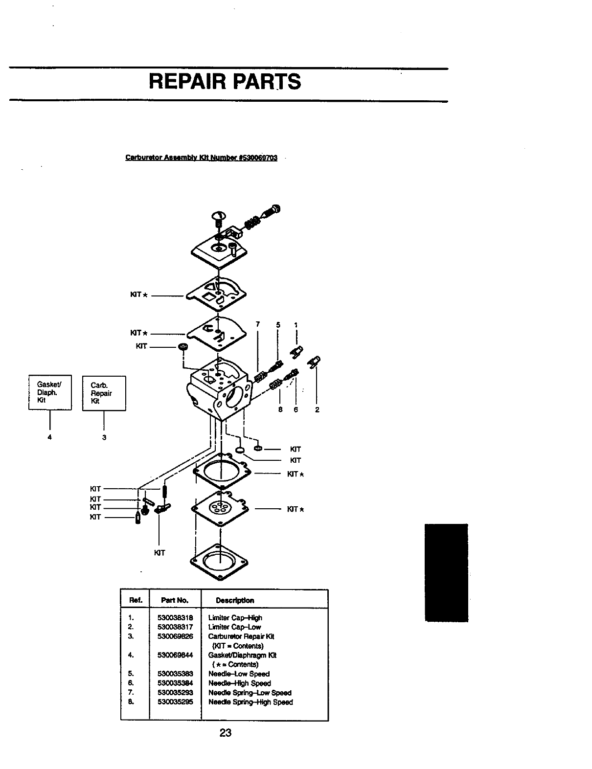 Carburetor Asmmblv Kit Number #S,30069"/_J .