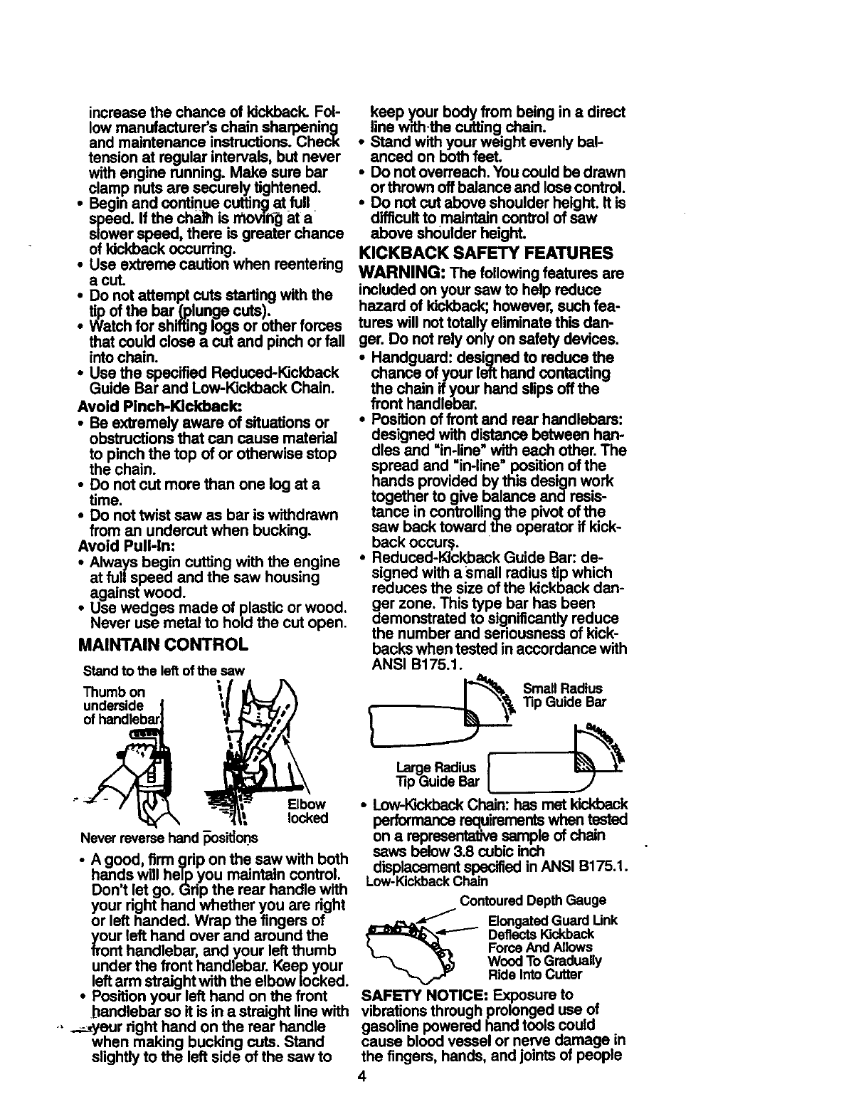 handed operation. A chain saw is in-