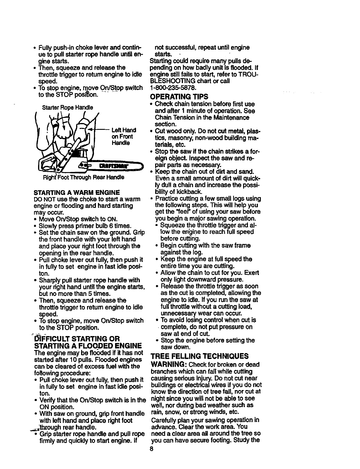 •Do not handle or operate a chain saw