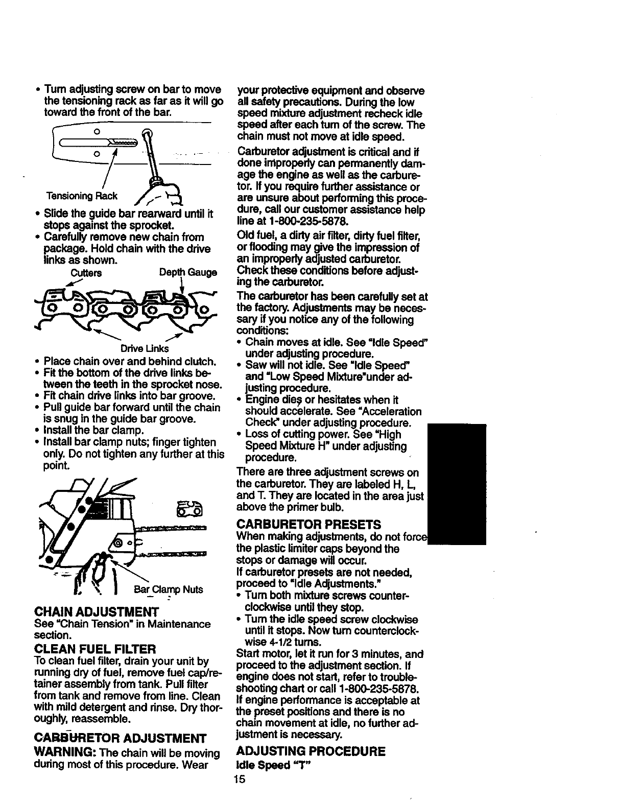 WARRANTY SERVICE iS AVAILABLE BY RETURNING THIS CHAIN SAW TO