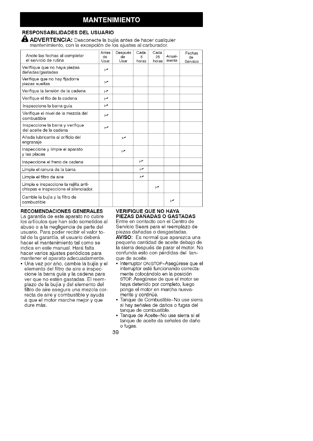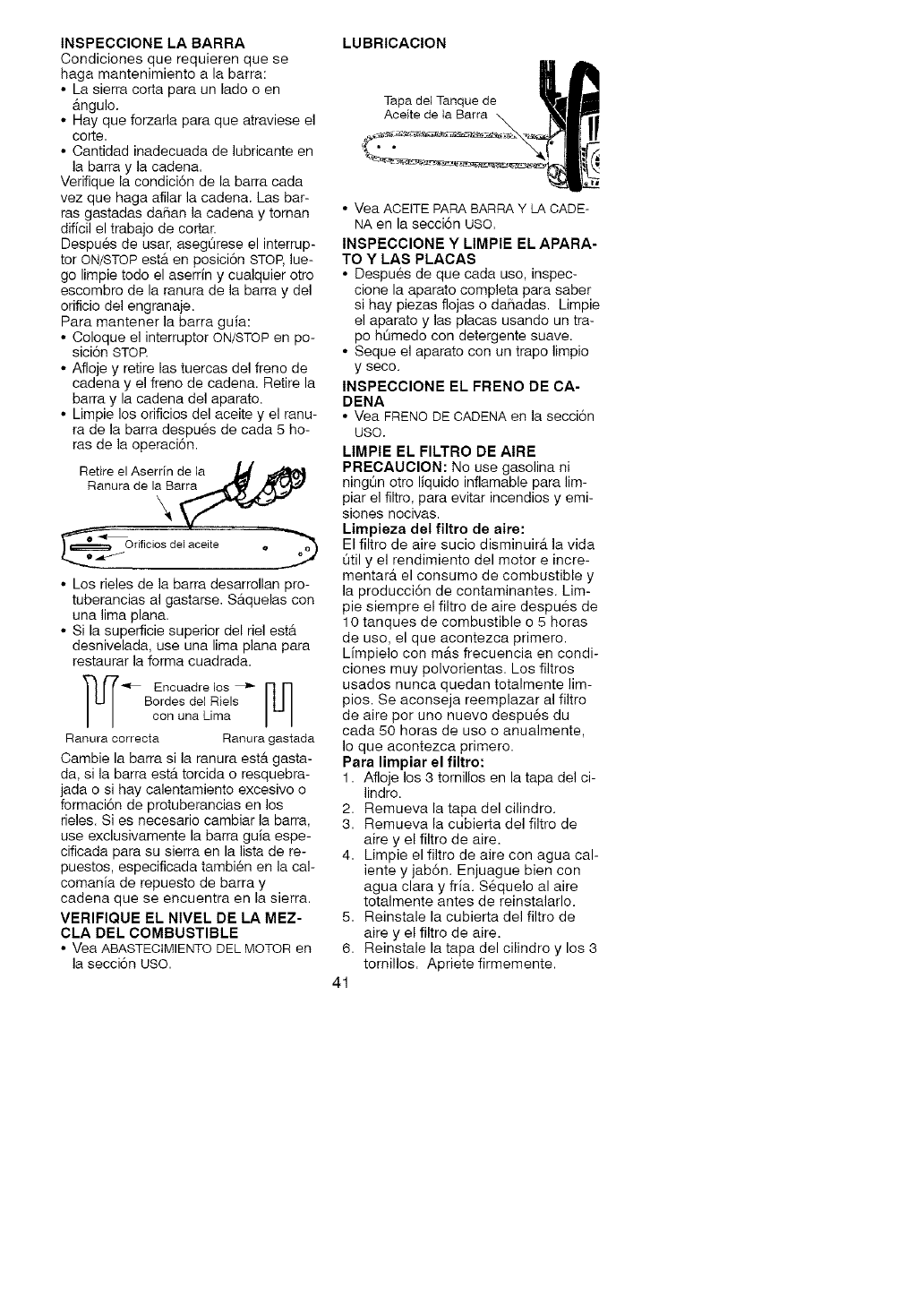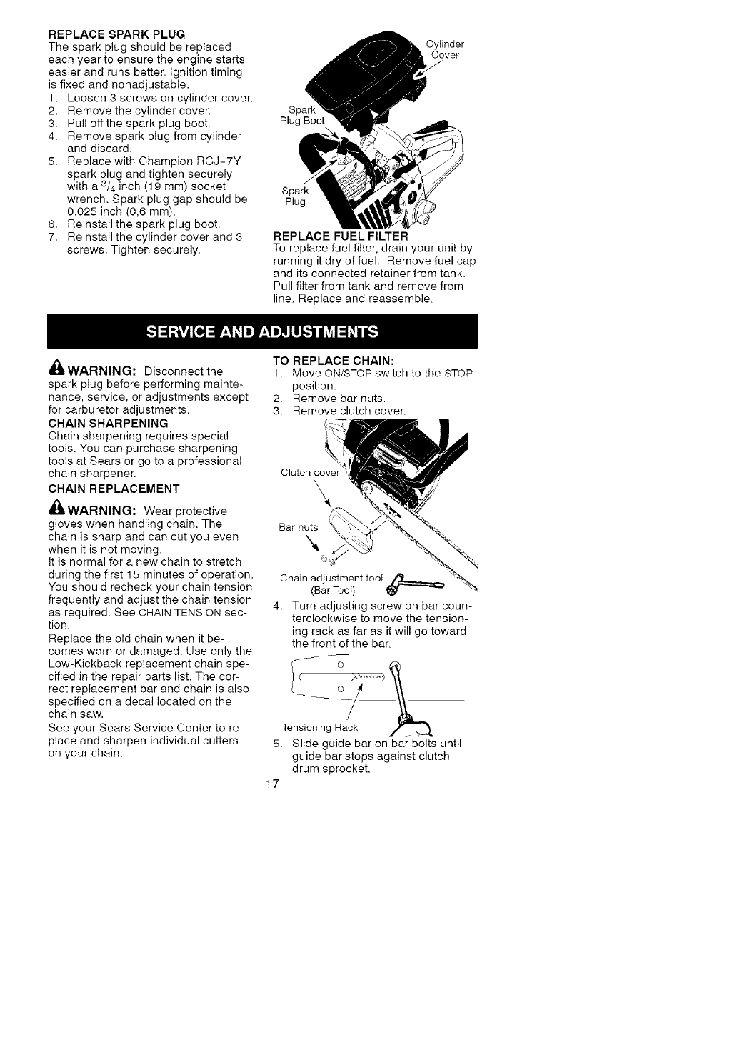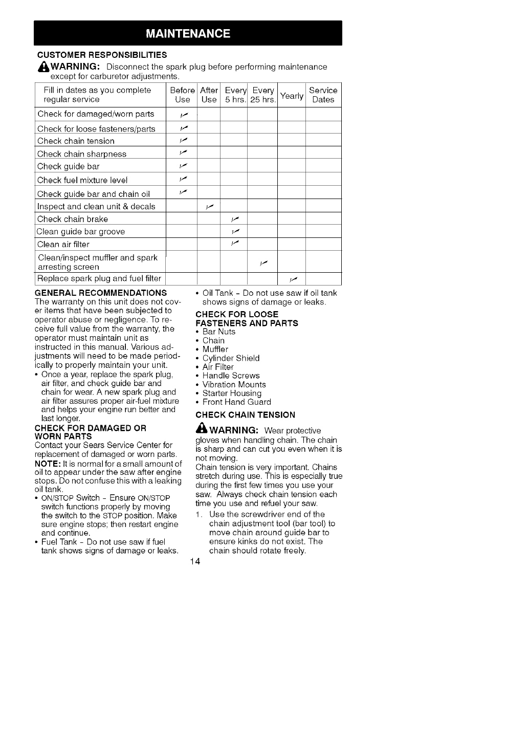 This warranty excludes the bar, chain, spark plug and air filter, which are expend-