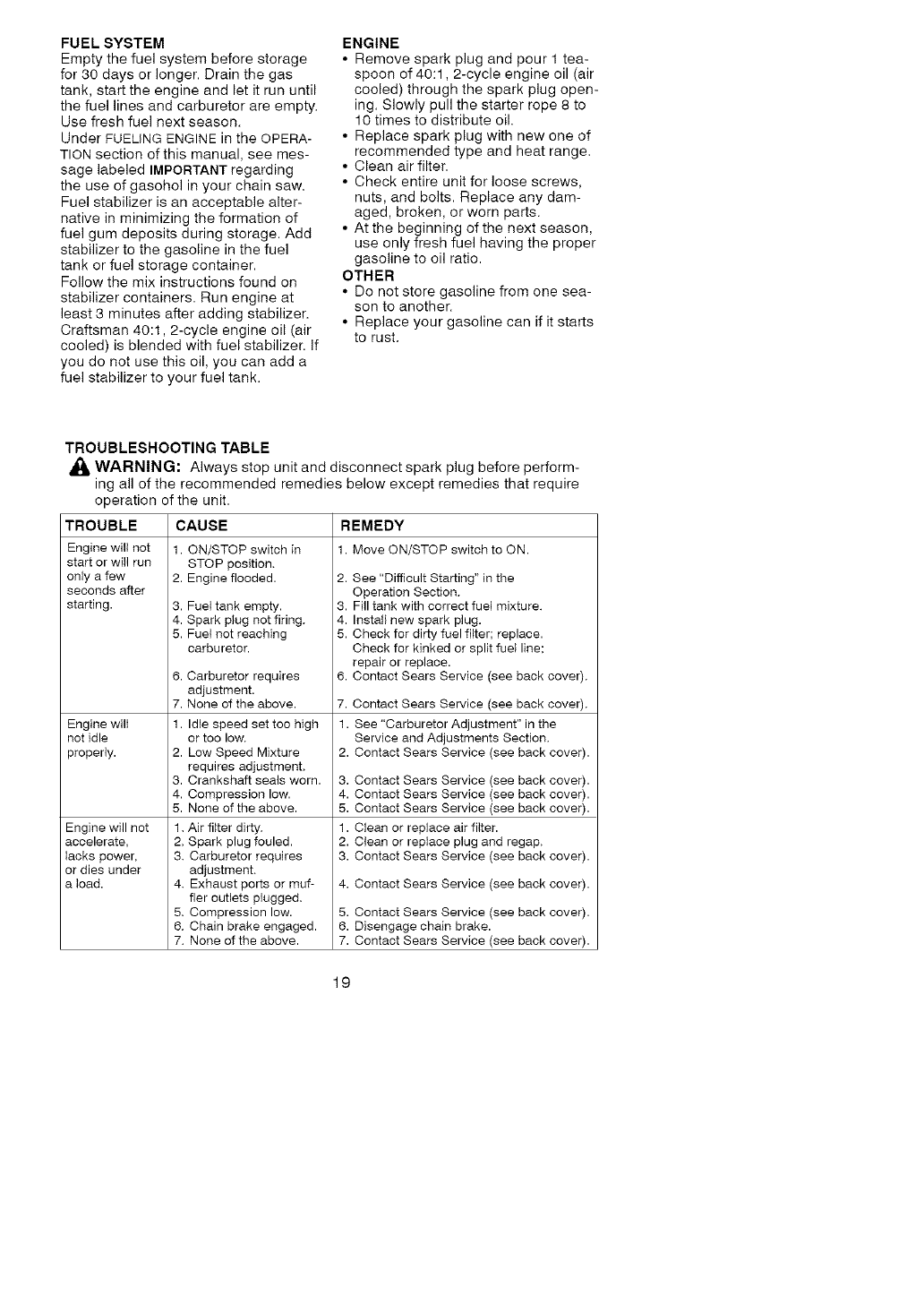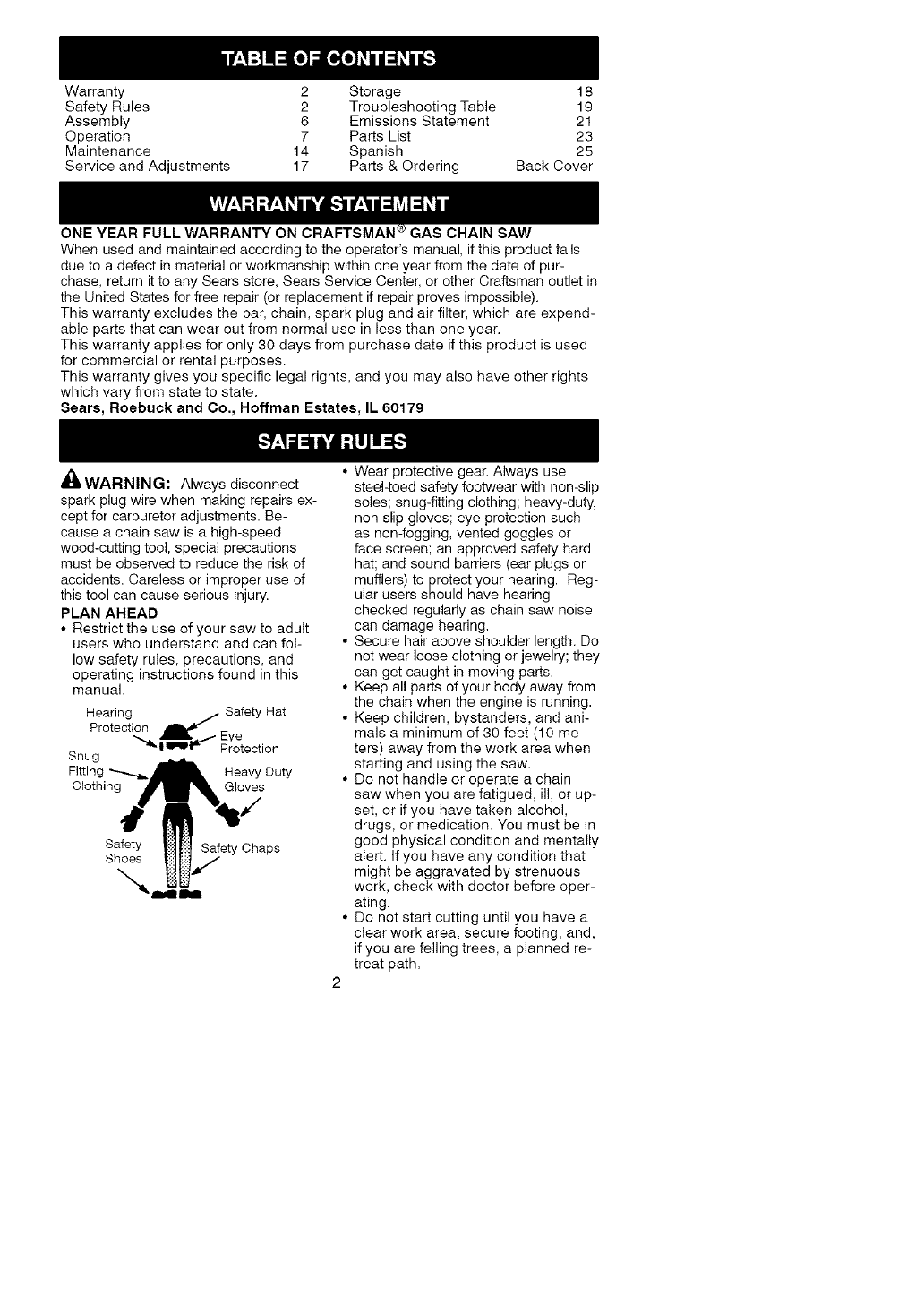 Craftsman 358351800 User Manual CHAIN SAW Manuals And Guides L0706462